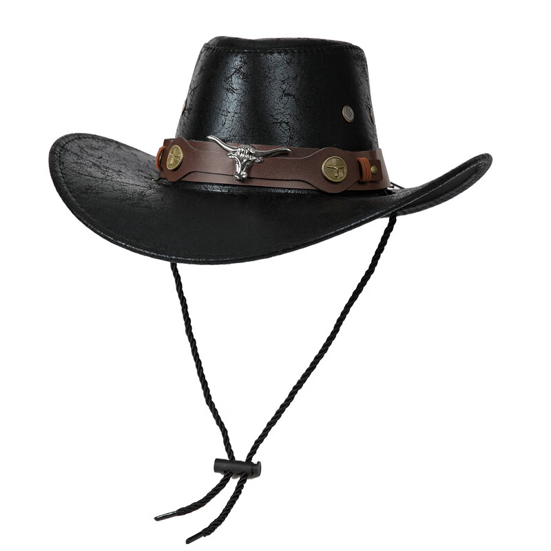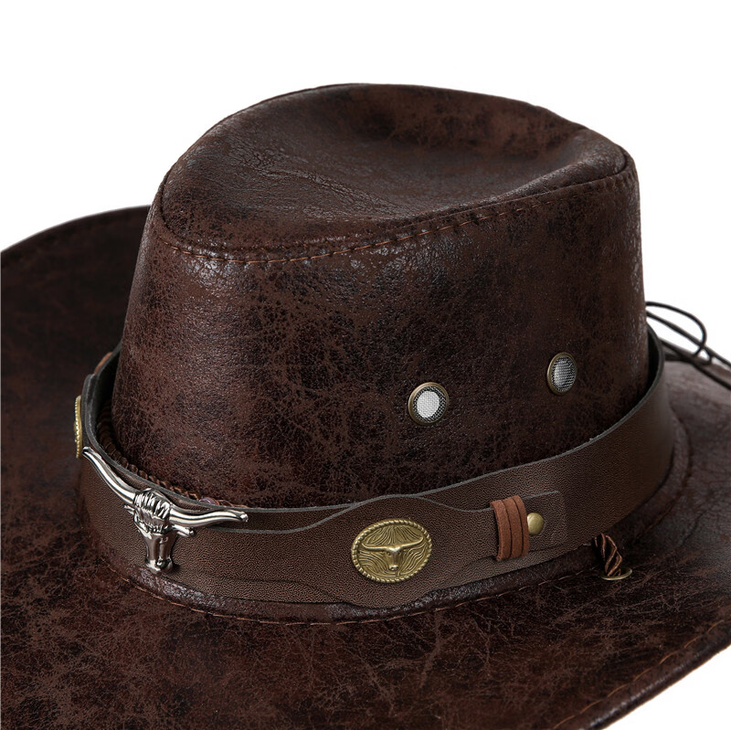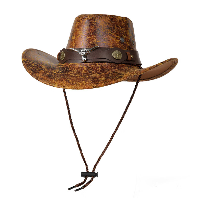 Cowboy hat cow head belt rivet jazz hat men and women spring, summer and autumn outdoor travel visor big brim Tibetan western camel M (56-58cm)