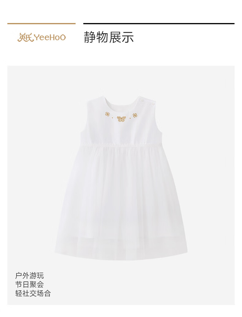 YEEHOO Haute Couture Series Children's Dress Girls Summer Thin Tank Top White Gauze Princess Dress White 80 cm