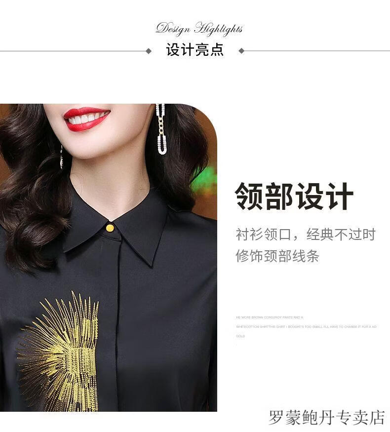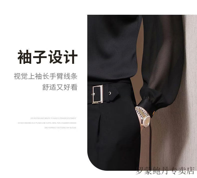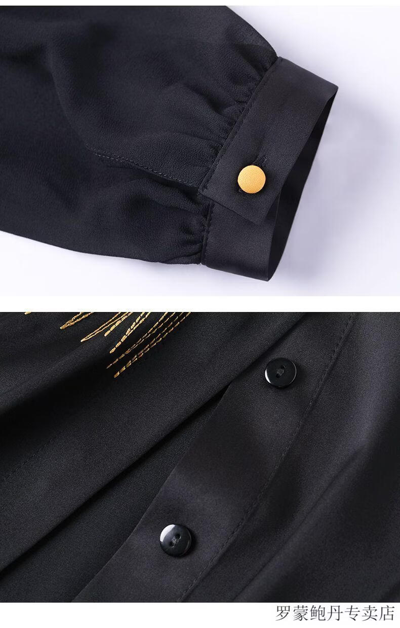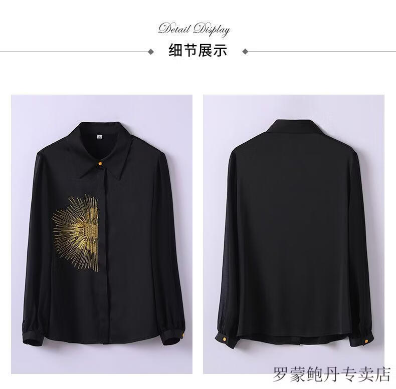 ROMON high-end shirt for women spring and summer new 2026 chiffon satin slim shirt fashionable professional temperament autumn thin black long sleeve S recommended 95Jin Jin is equal to within 0.5kg