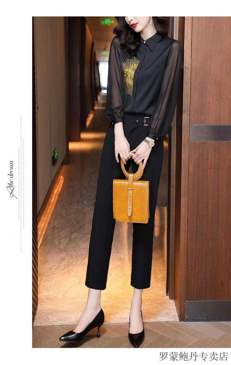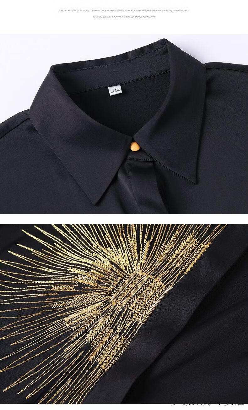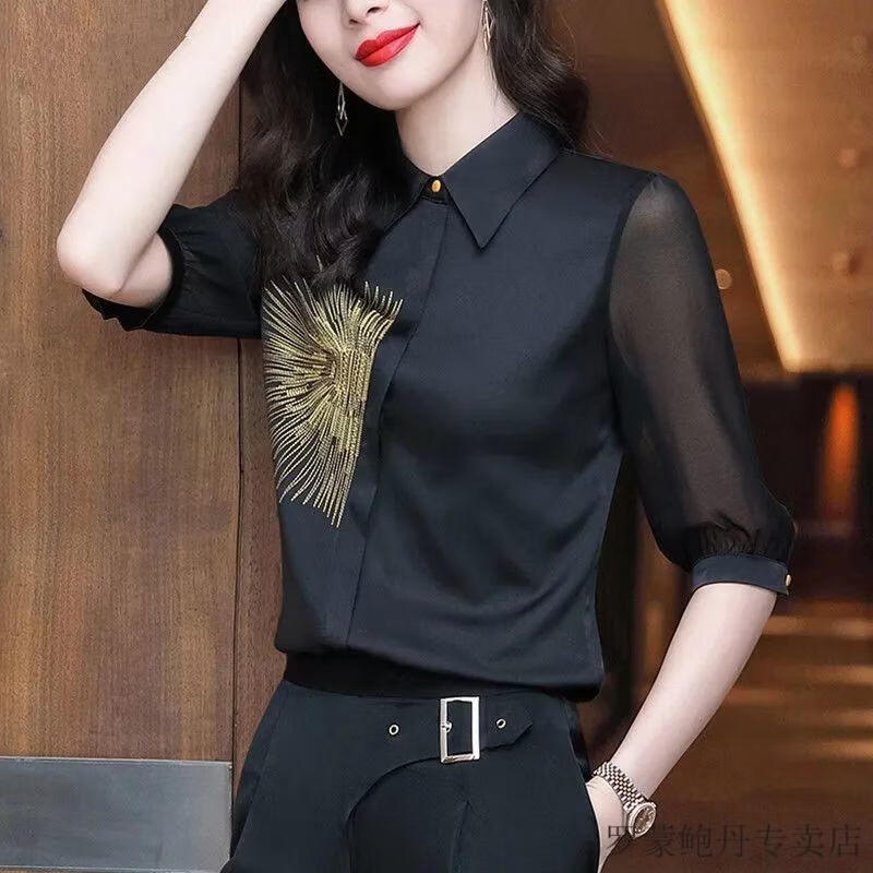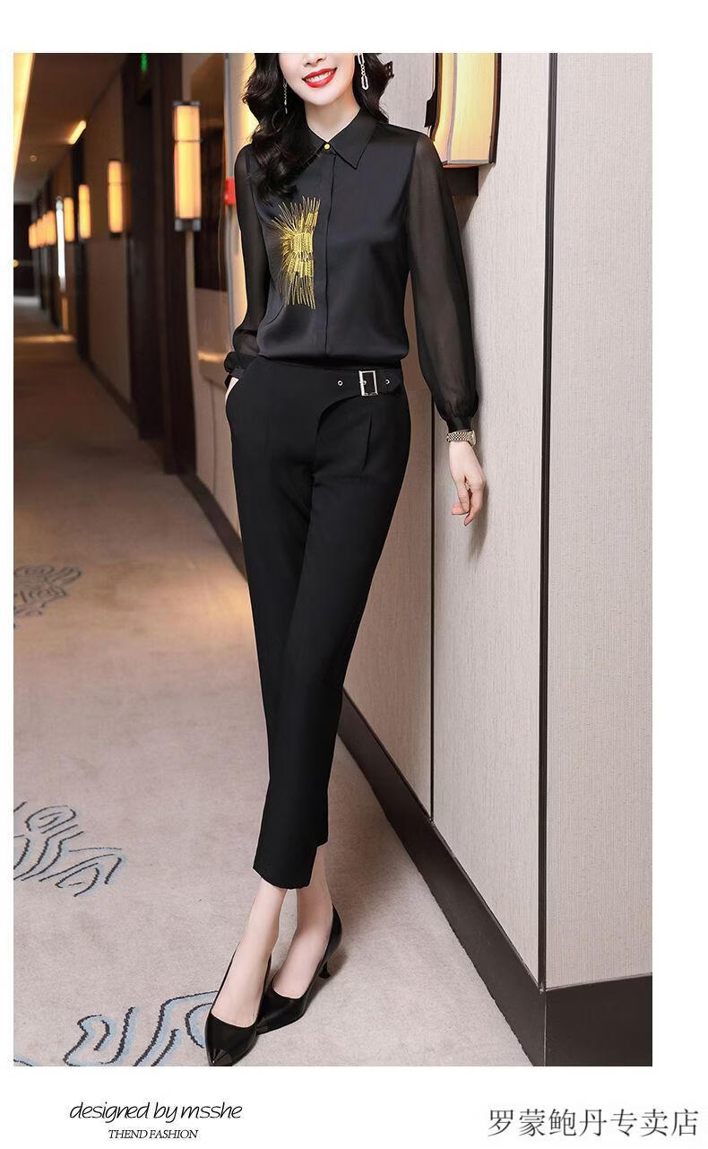 ROMON high-end shirt for women spring and summer new 2026 chiffon satin slim shirt fashionable professional temperament autumn thin black long sleeve S recommended 95Jin Jin is equal to within 0.5kg