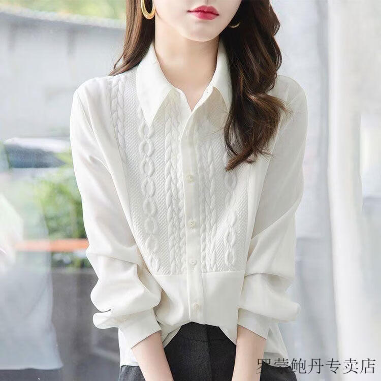 ROMON shirt women's long-sleeved 2026 new spring and autumn high-end white shirt design niche versatile bottoming shirt top white standard size available in stock S recommended 80-90 Jin Jin equals 0.5 kg to wear