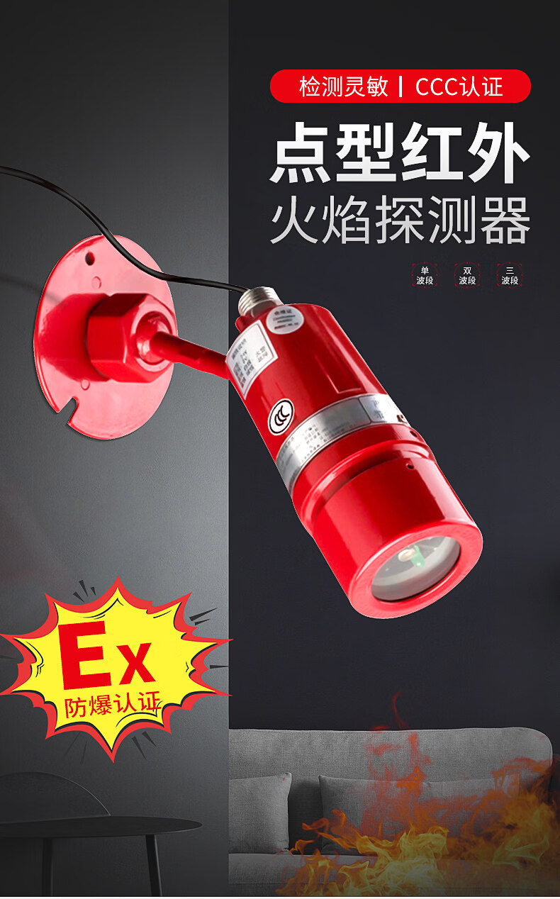Point type infrared flame detector JLH101EX open flame detector 3C certification explosion-proof, dust-proof and corrosion-resistant three-band infrared flame detector