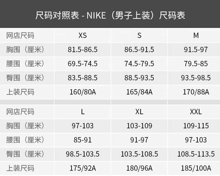 China (cm) 160-165/84-86 165-170 / 88-90 167-172 / 92-96 168-173 / 98-102 170-176 / 106-110