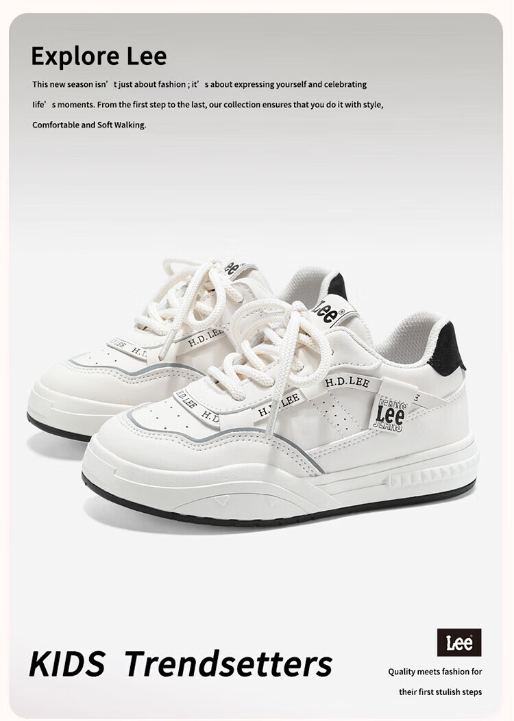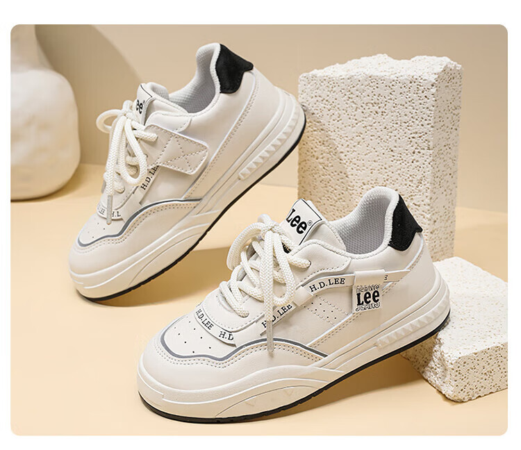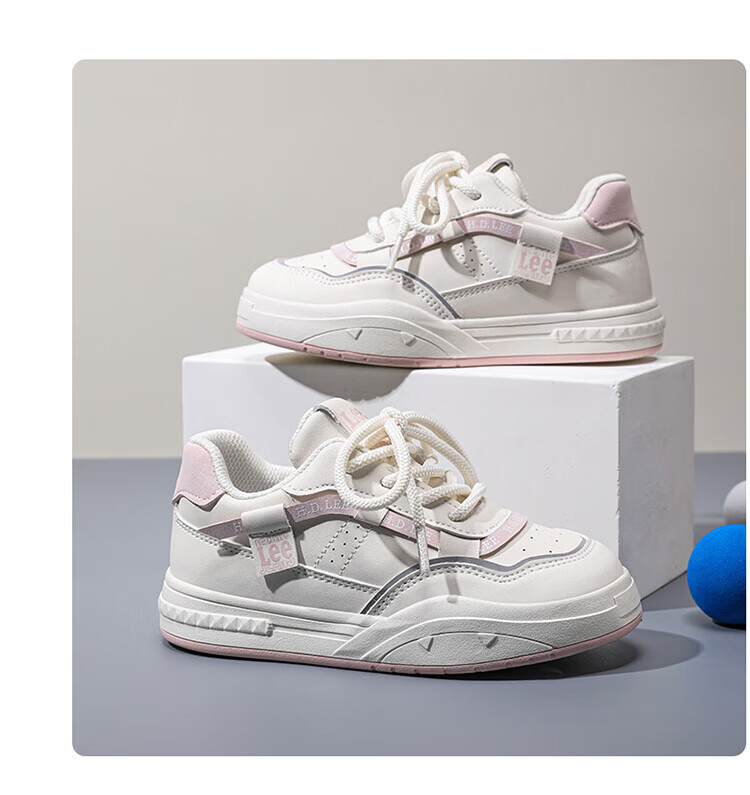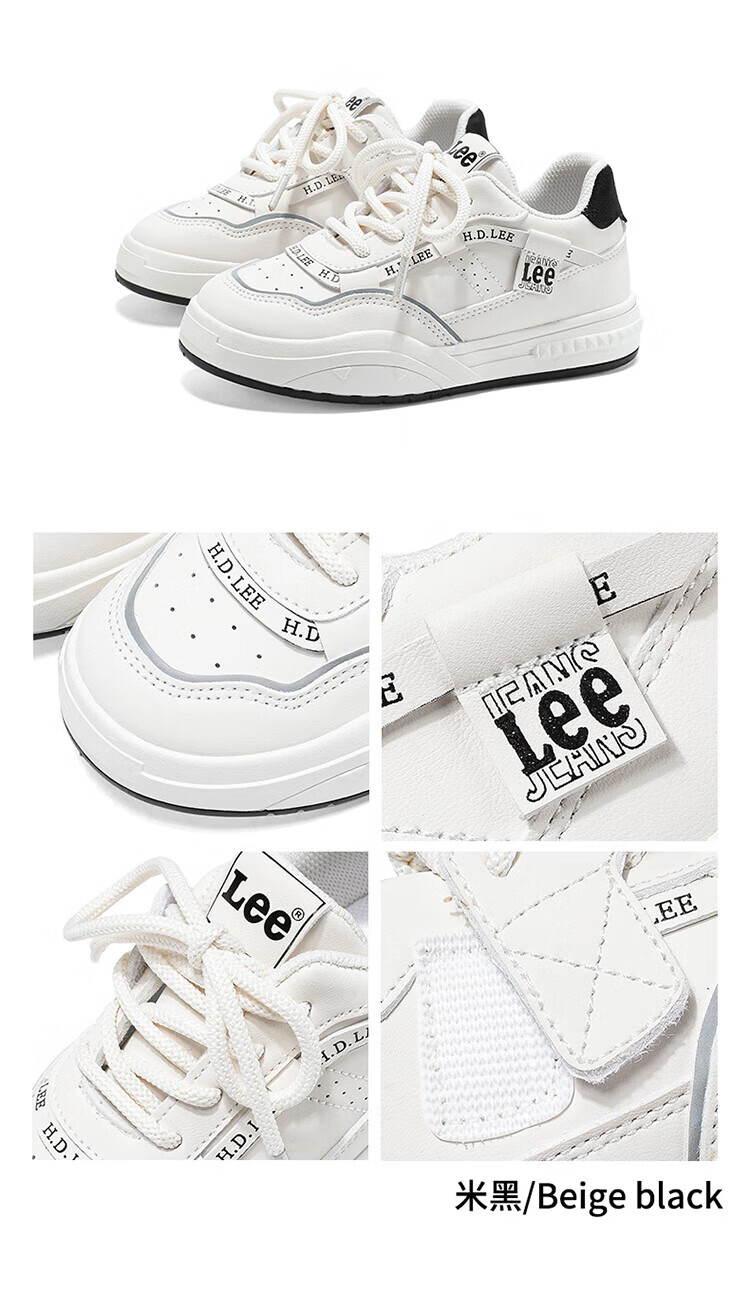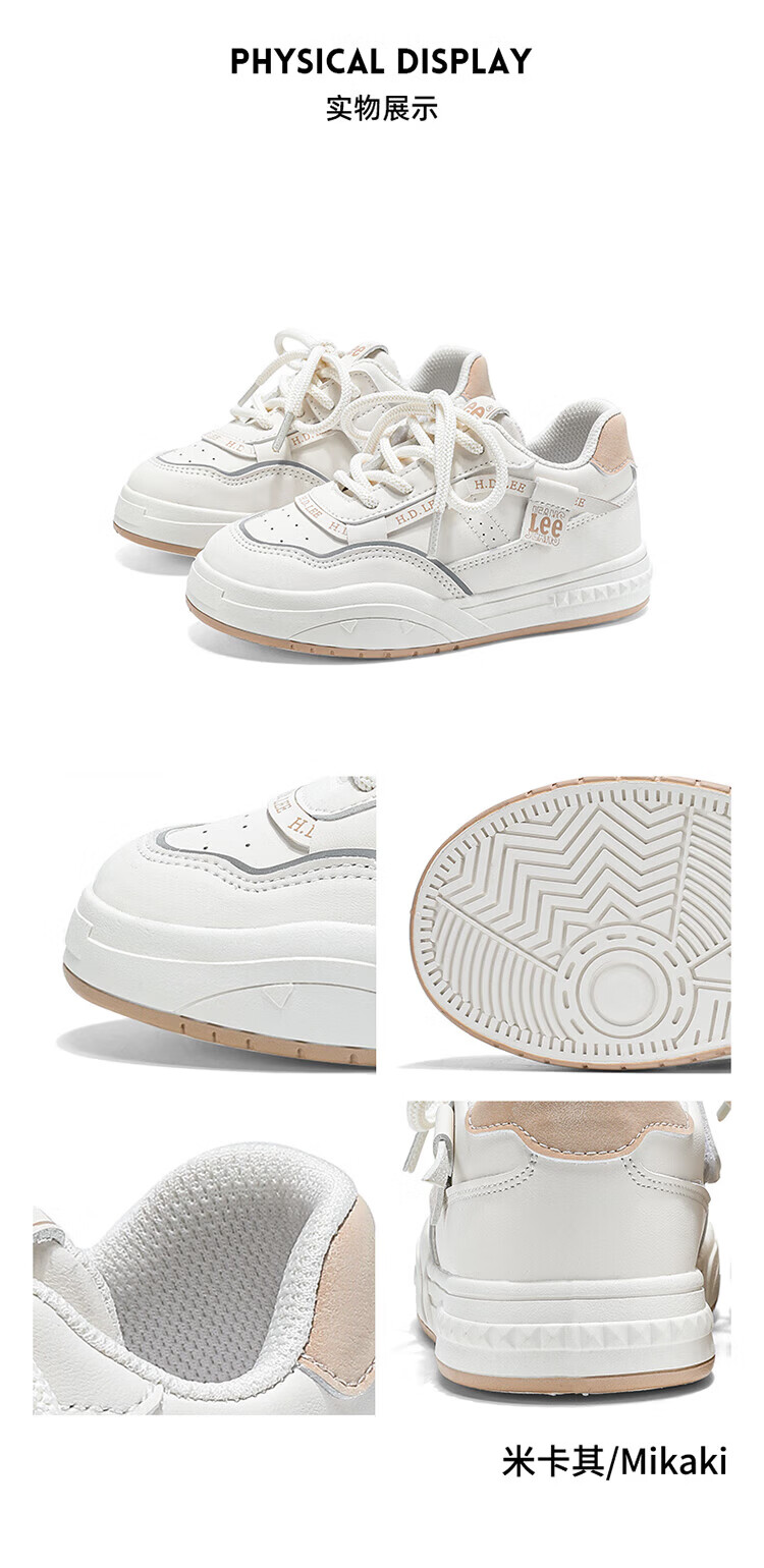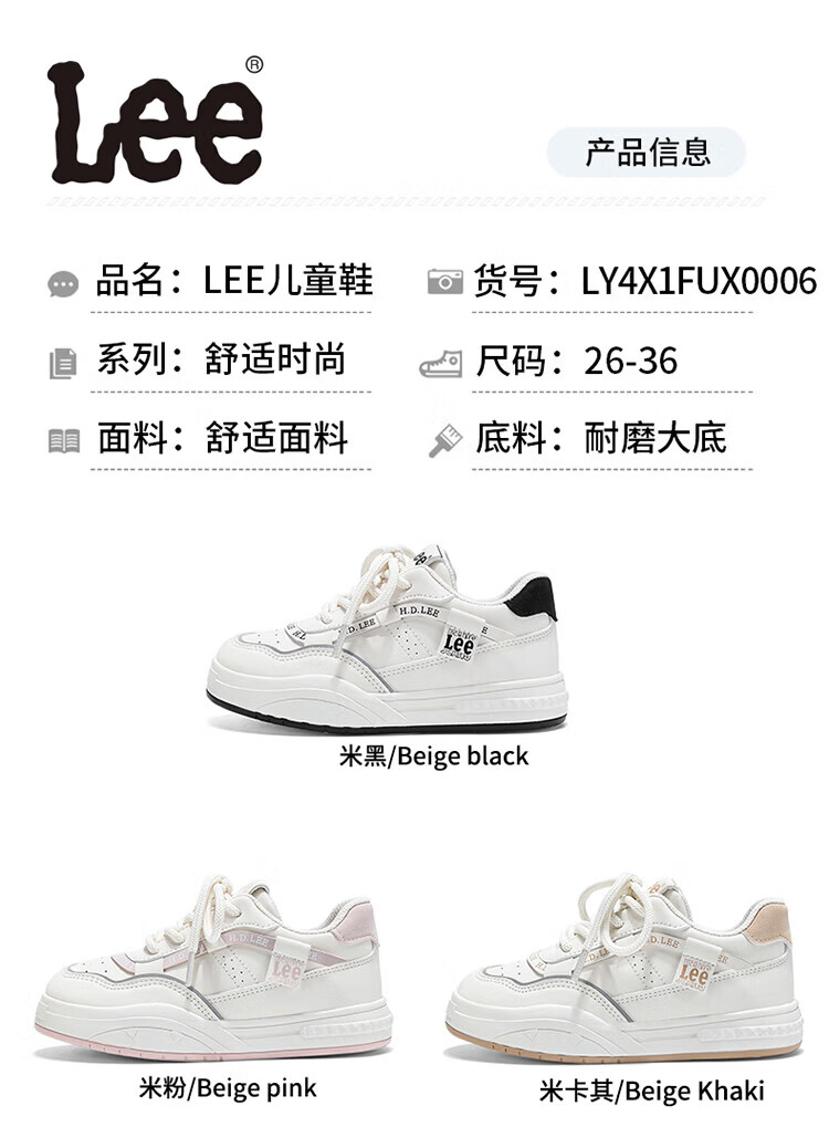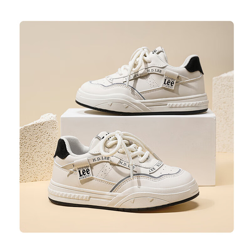 Lee children's shoes, spring children's white shoes, versatile casual shoes, girls' sneakers, boys' moral training running shoes, beige 26, recommended foot length 165mm