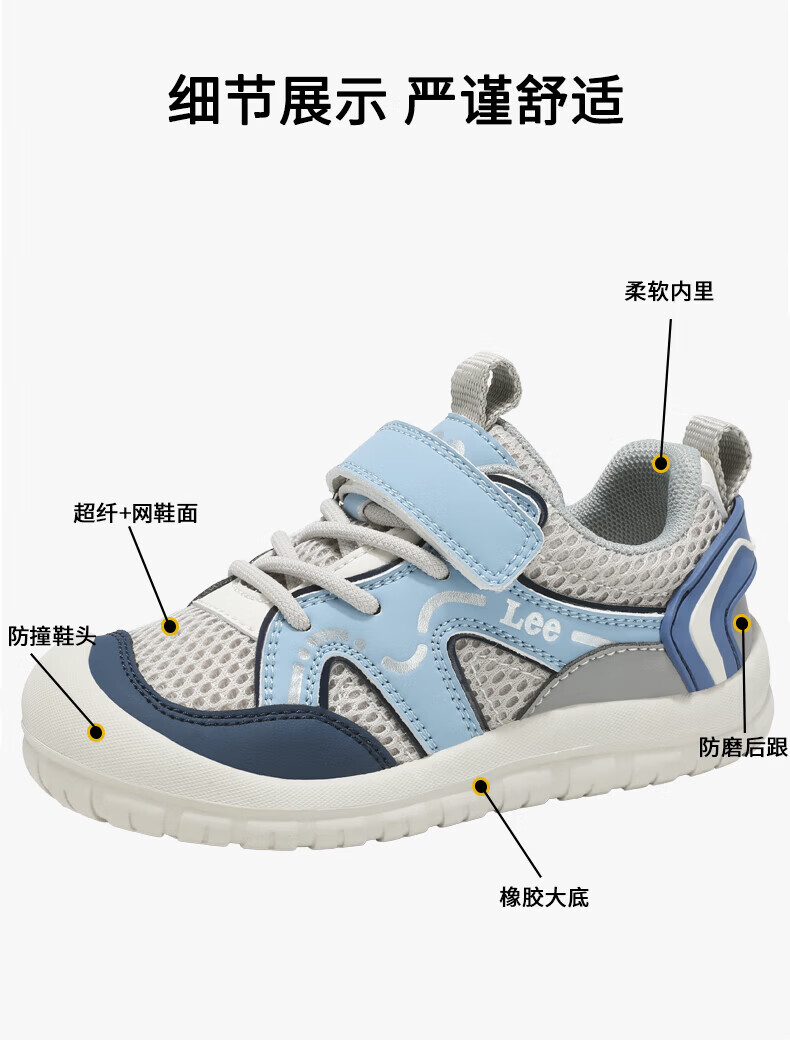 Lee children's sports shoes summer new casual running shoes Velcro for boys and girls shoes anti-collision toe outdoor shoes pink 29 recommended foot length 177mm
