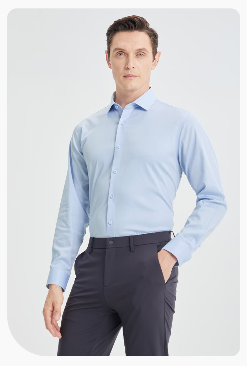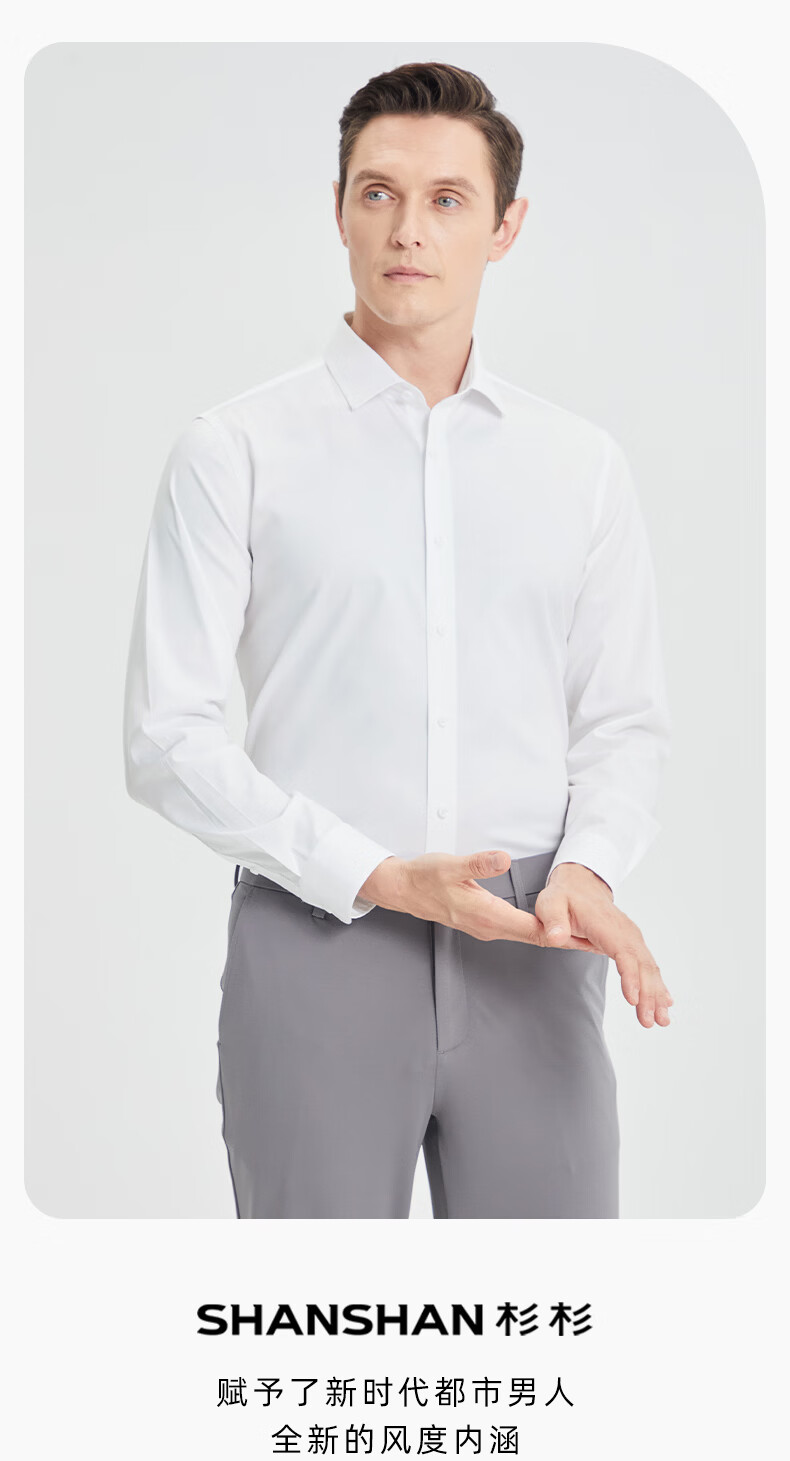 Shanshan official business casual high-end brand shirt men's shirt long sleeve 2026 spring and autumn new anti-wrinkle shirt for men 02 blue 38 (165/84A)