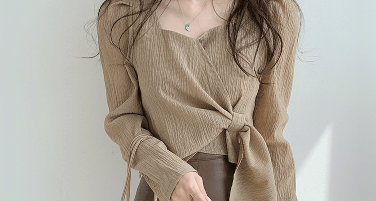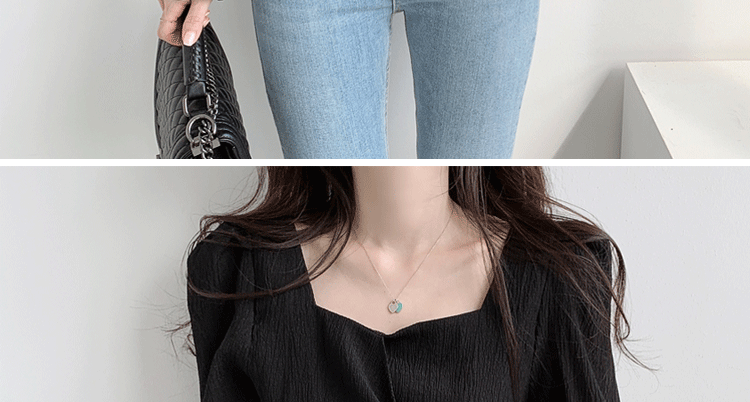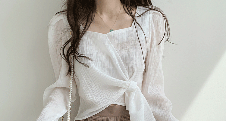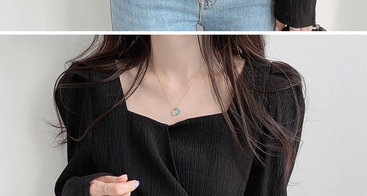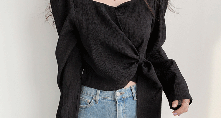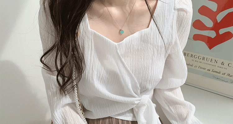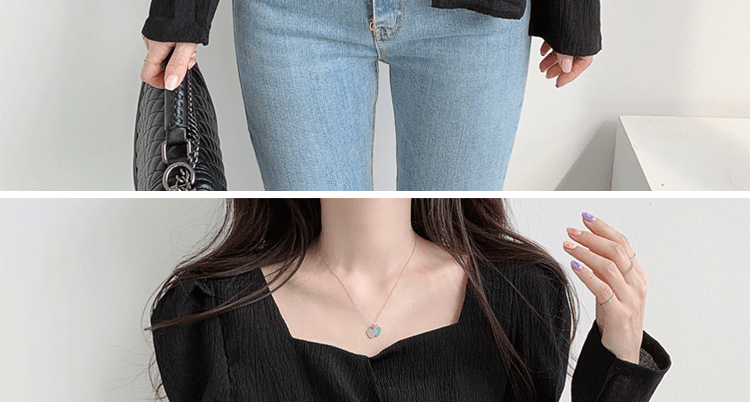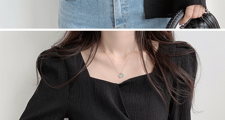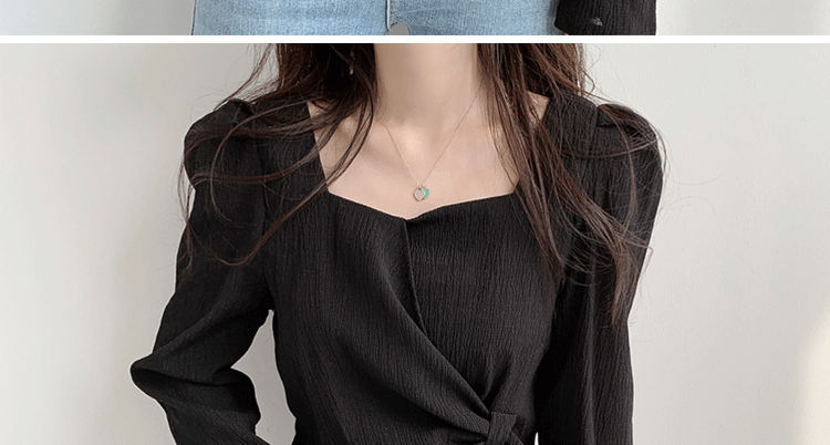 ROMON Hong Kong Style Slim Square Collar Shirt Women's Design Irregular Lace Top Long Sleeve Fashion Short Chic Shirt Black S