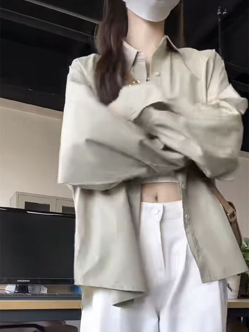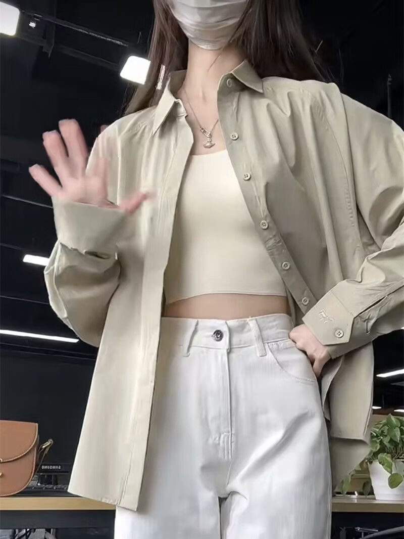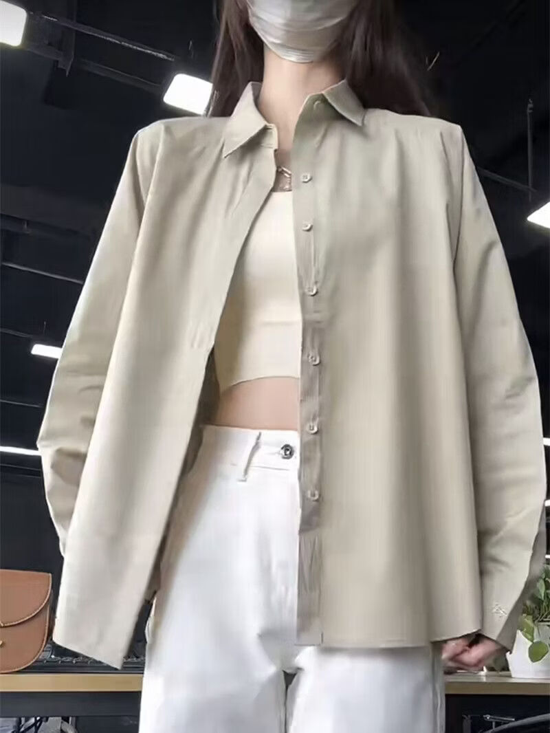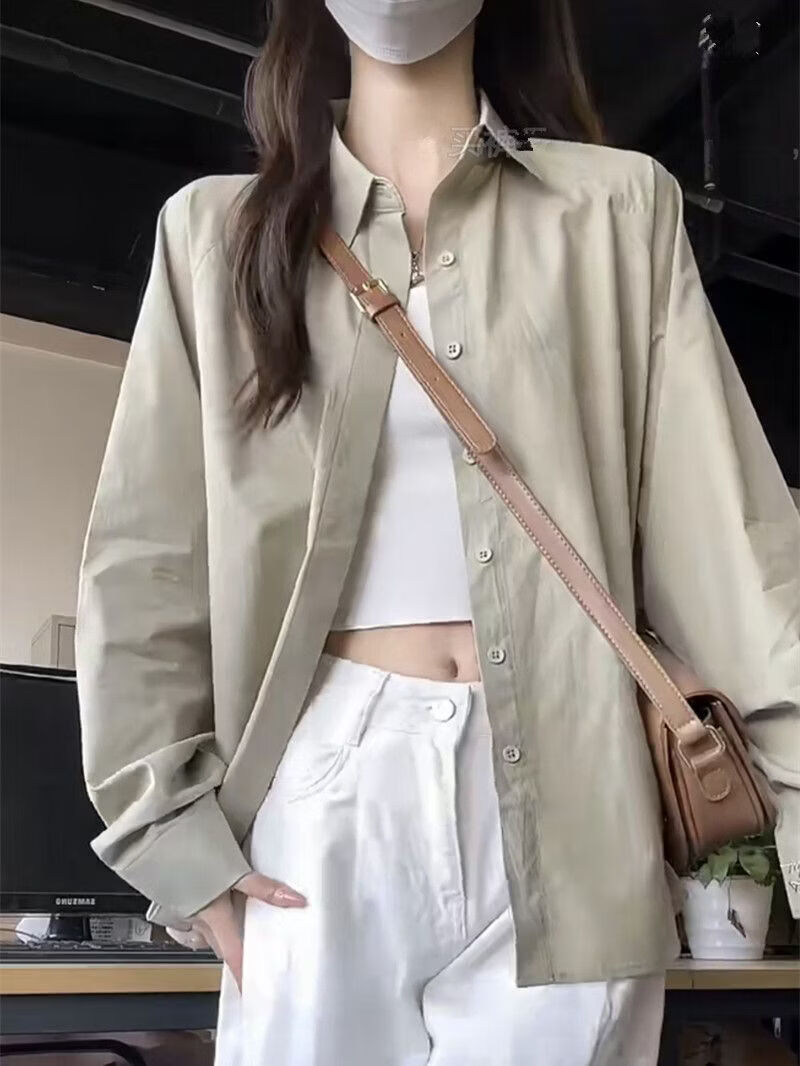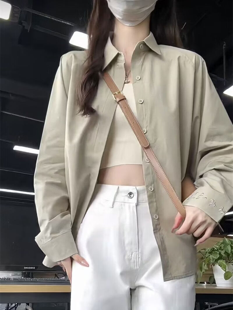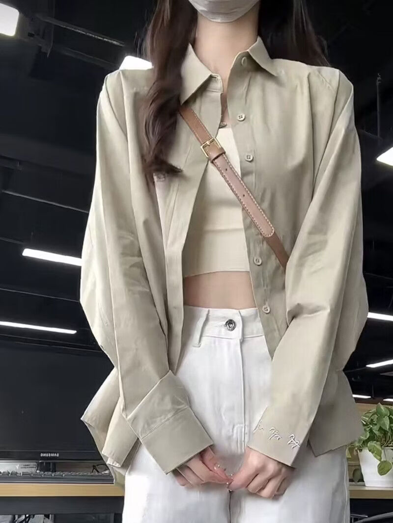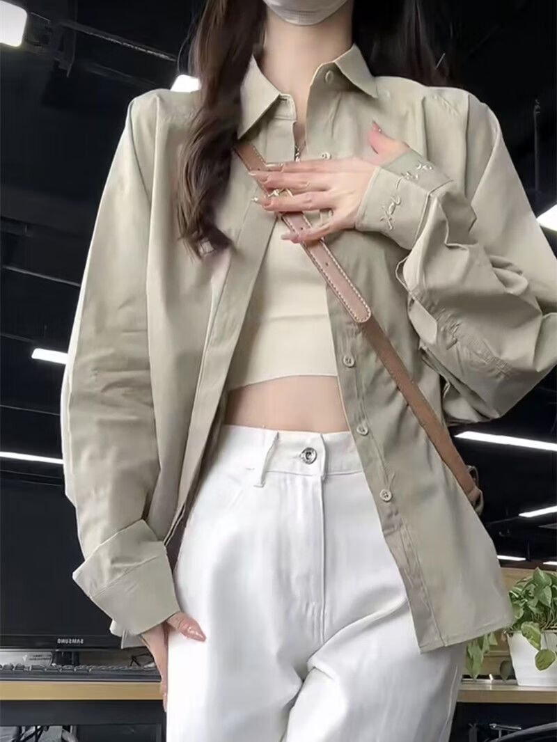 Woodpecker (TUCANO) design niche shirt jacket for women 2026 spring and summer new embroidered retro casual loose long-sleeved sun protection shirt green gray S recommended 80-95Jin Jin equals 0.5 kg