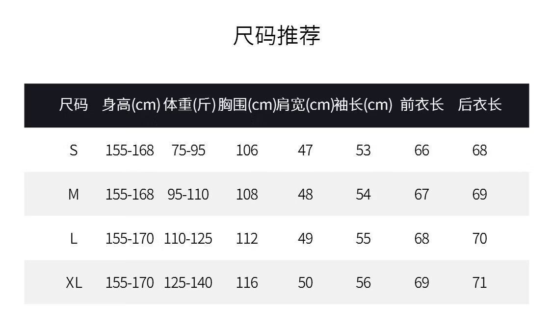 China (cm) 160-165/84-86 165-170 / 88-90 167-172 / 92-96 168-173 / 98-102 170-176 / 106-110