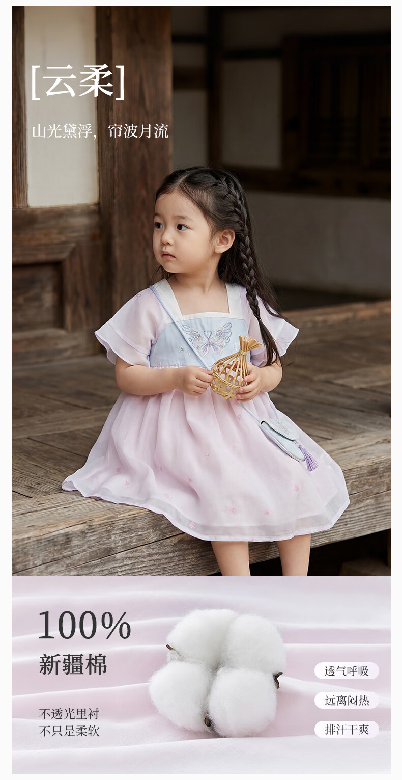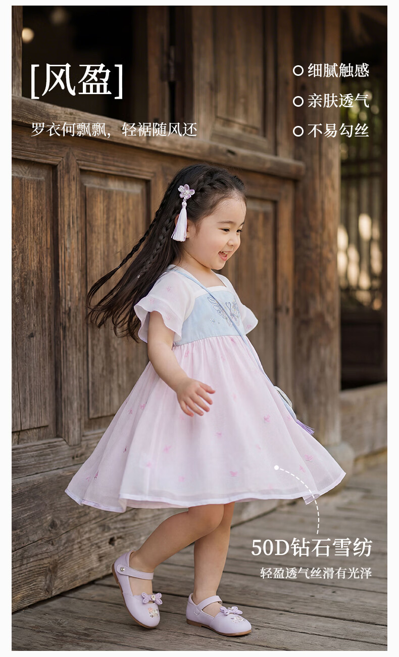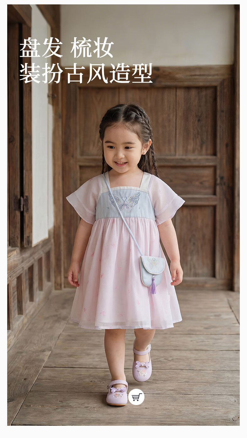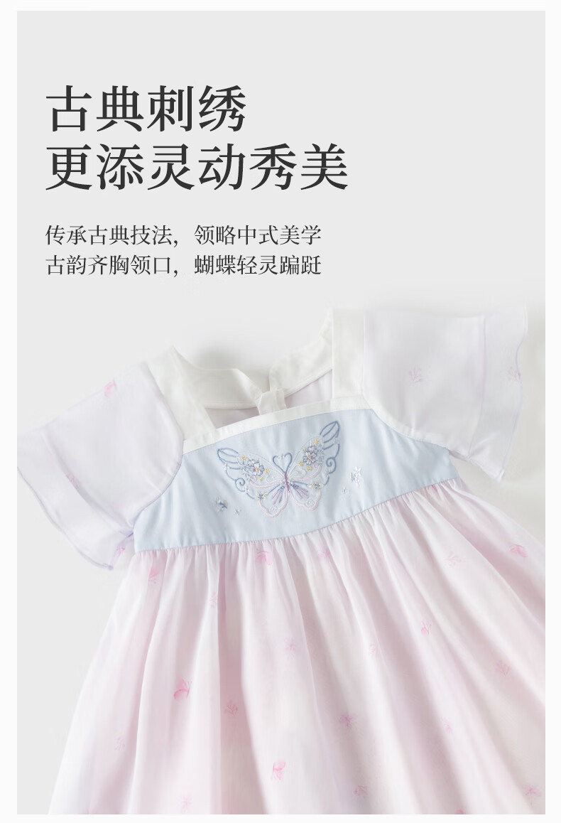 DAVE&BELLA children's skirt children's dress 2026 summer new Chinese style girls Hanfu baby girl mesh skirt children's skirt butterfly print ready stock 120 cm (recommended height 110-120cm)