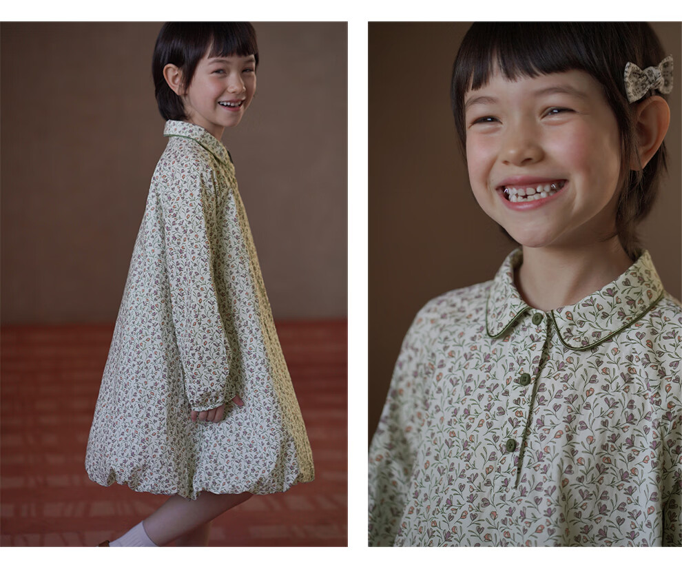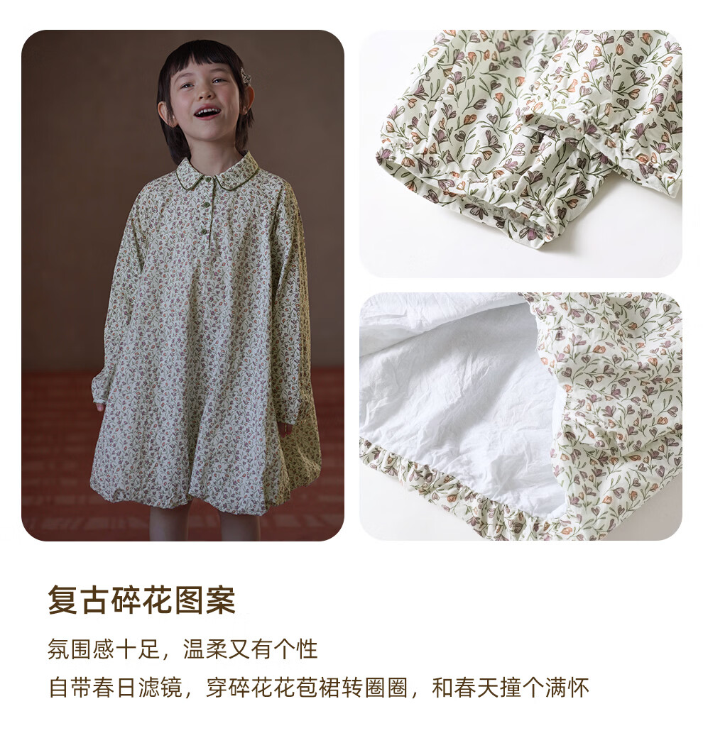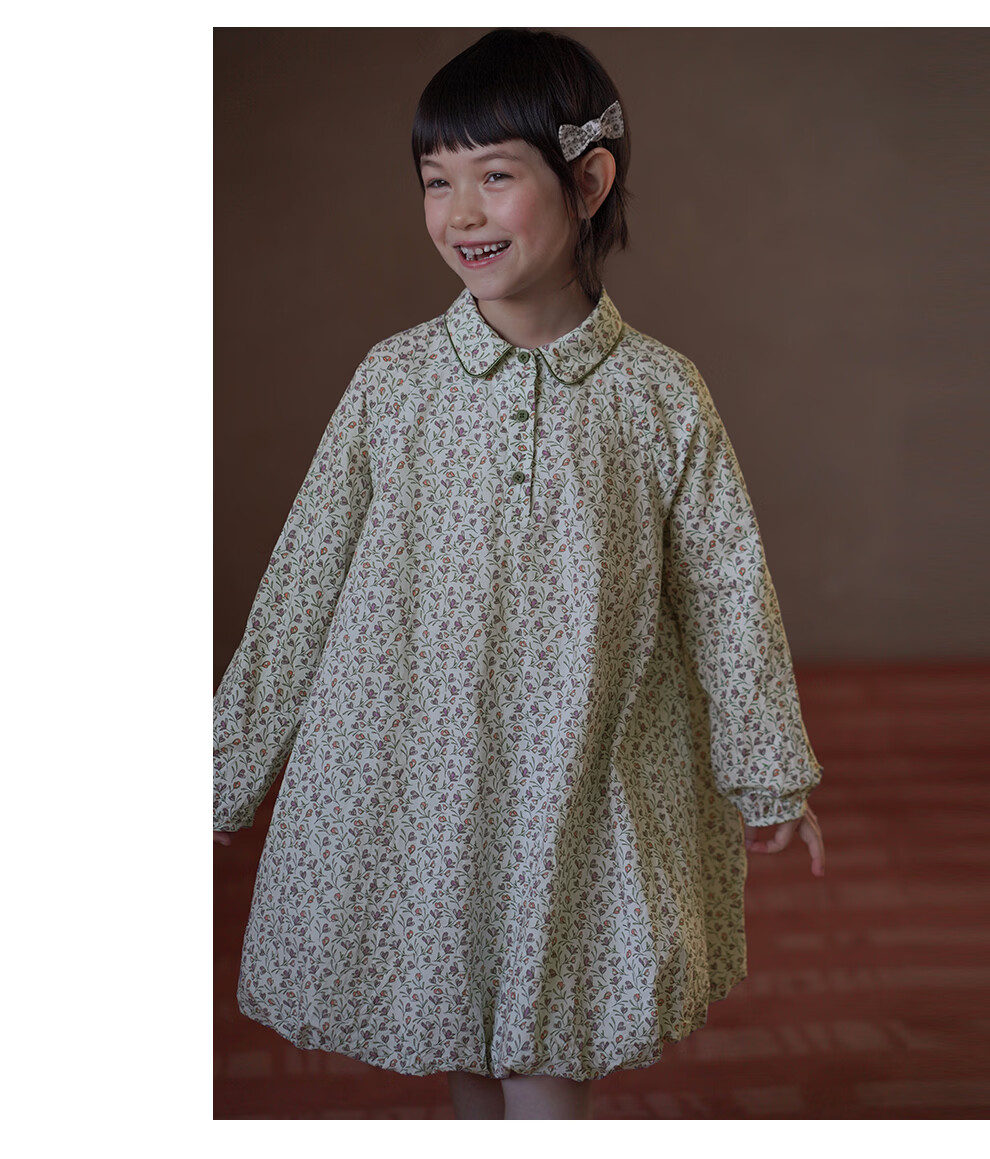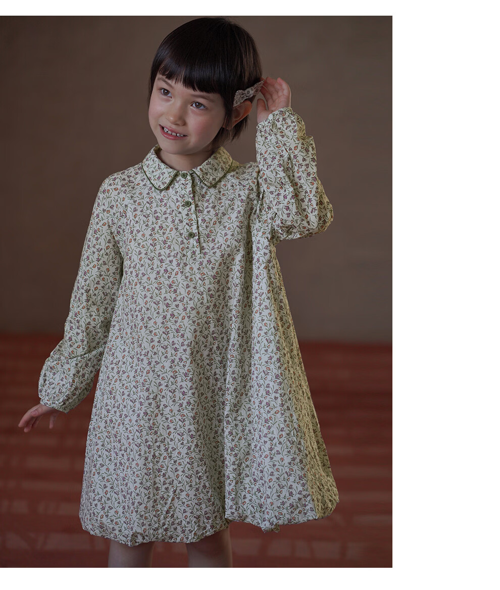 Haqi children's clothing children's skirt pastoral floral long-sleeved dress girls mid-length skirt baby flower bud skirt 2026 new style floral 110