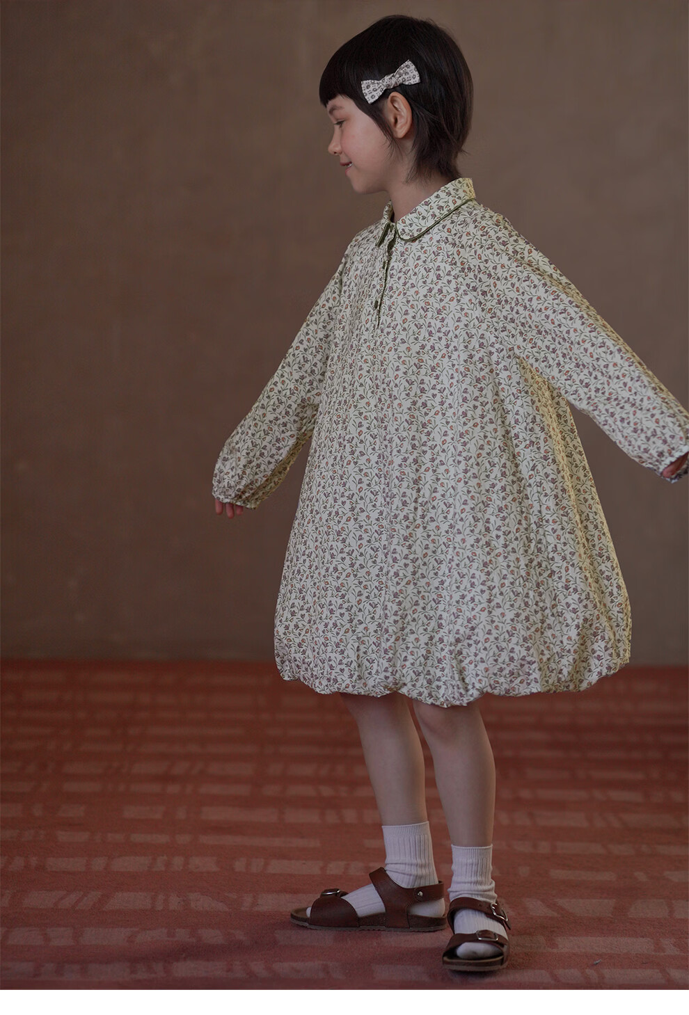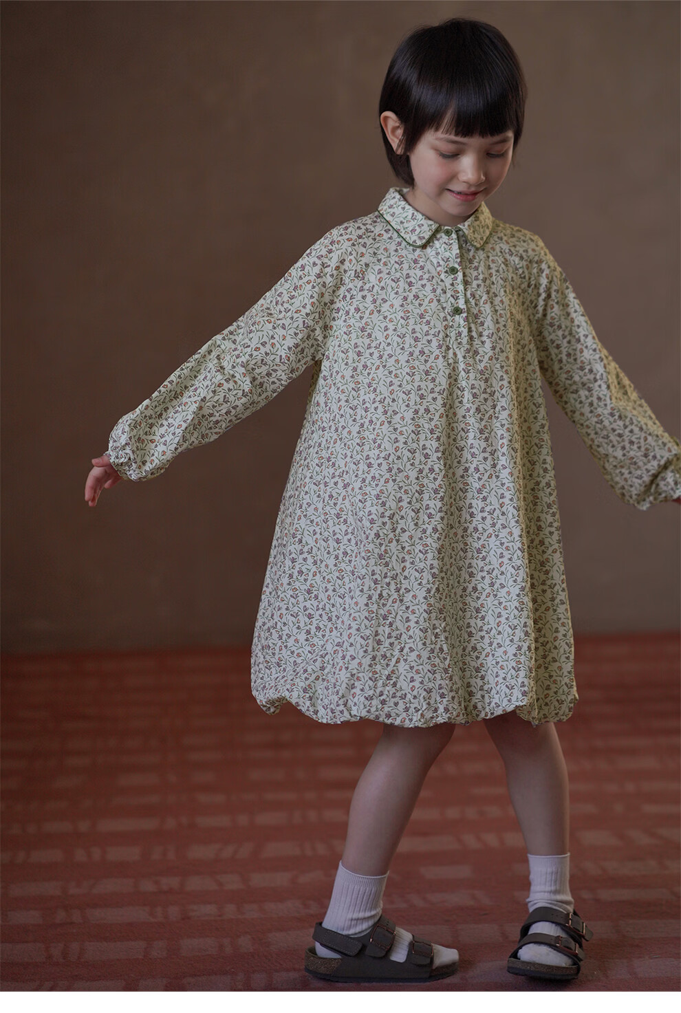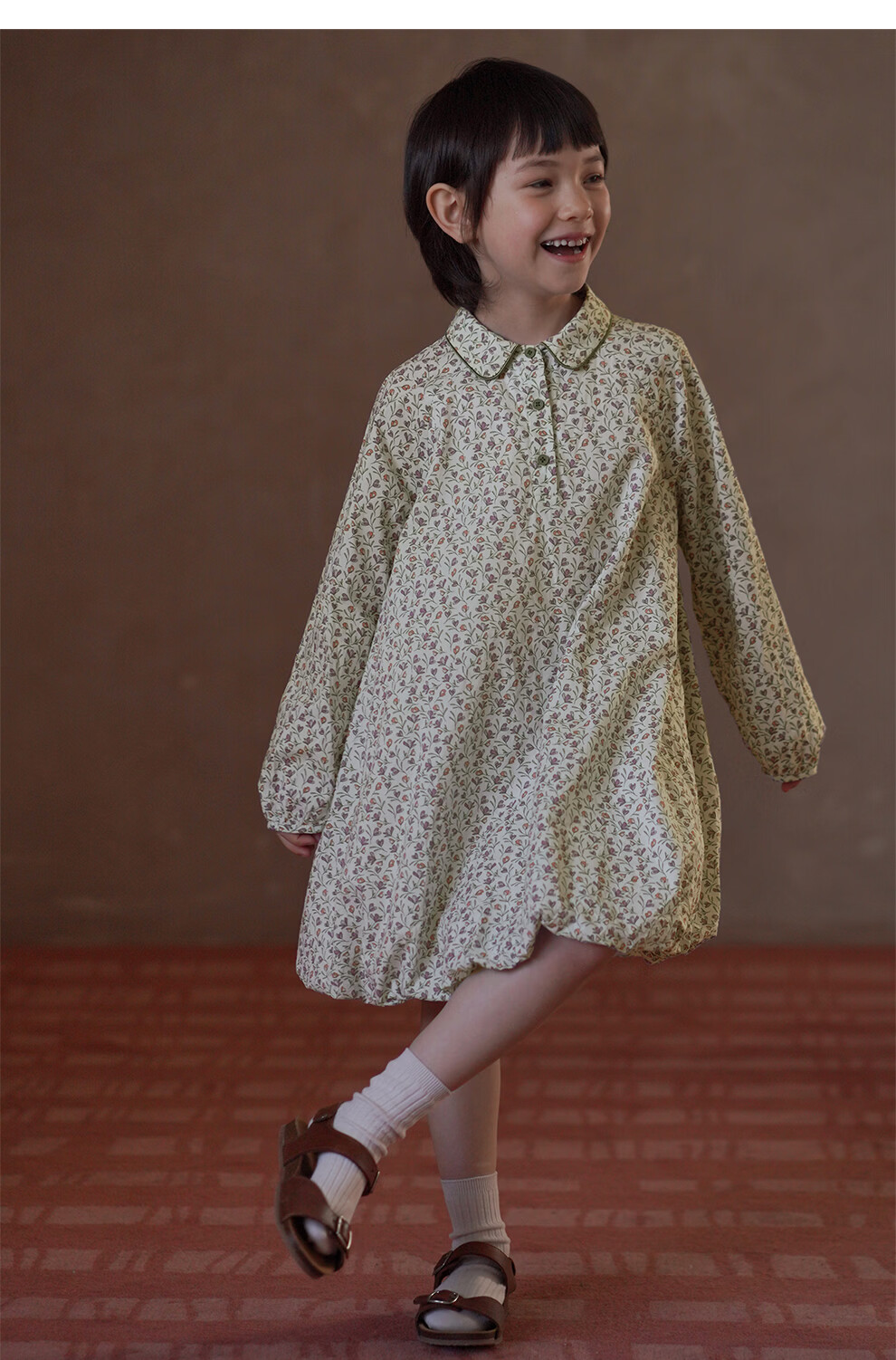 Haqi children's clothing children's skirt pastoral floral long-sleeved dress girls mid-length skirt baby flower bud skirt 2026 new style floral 110