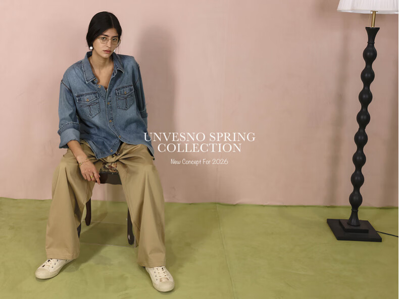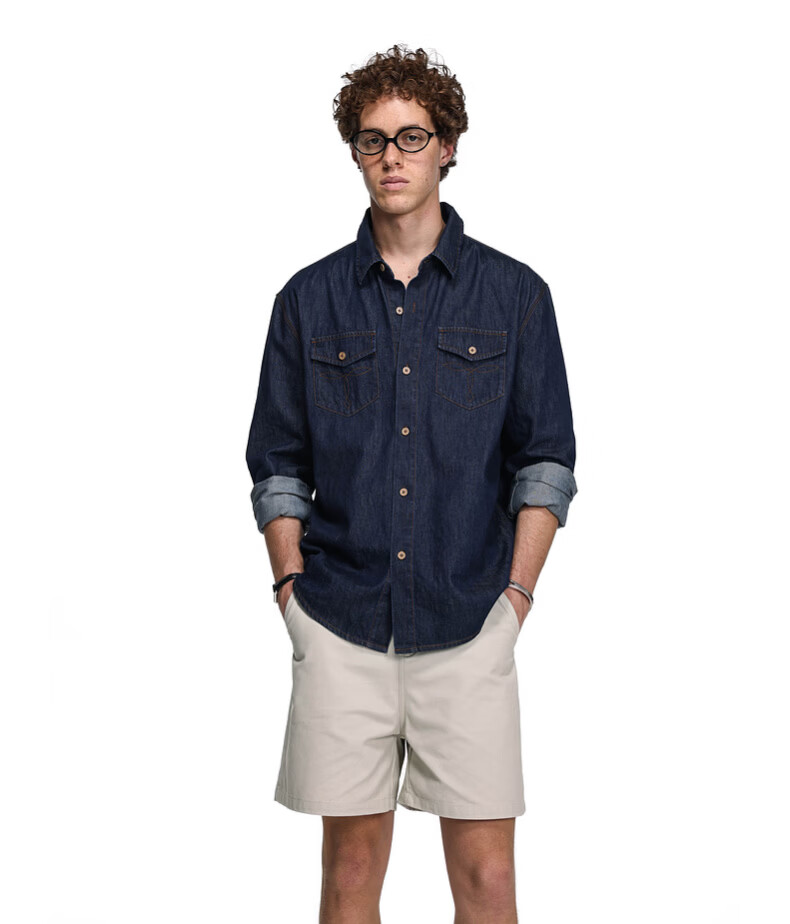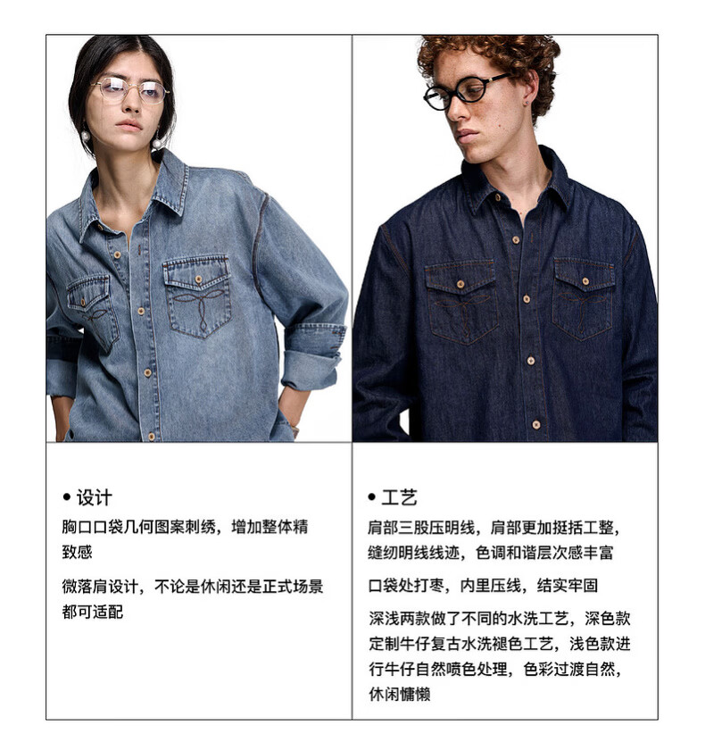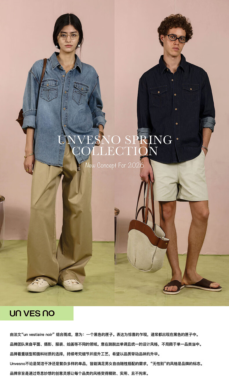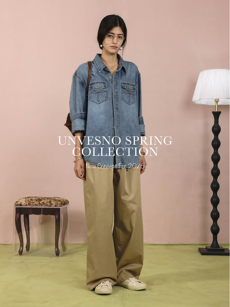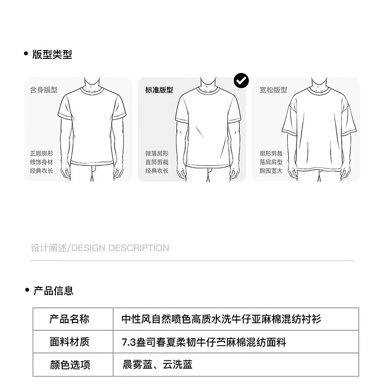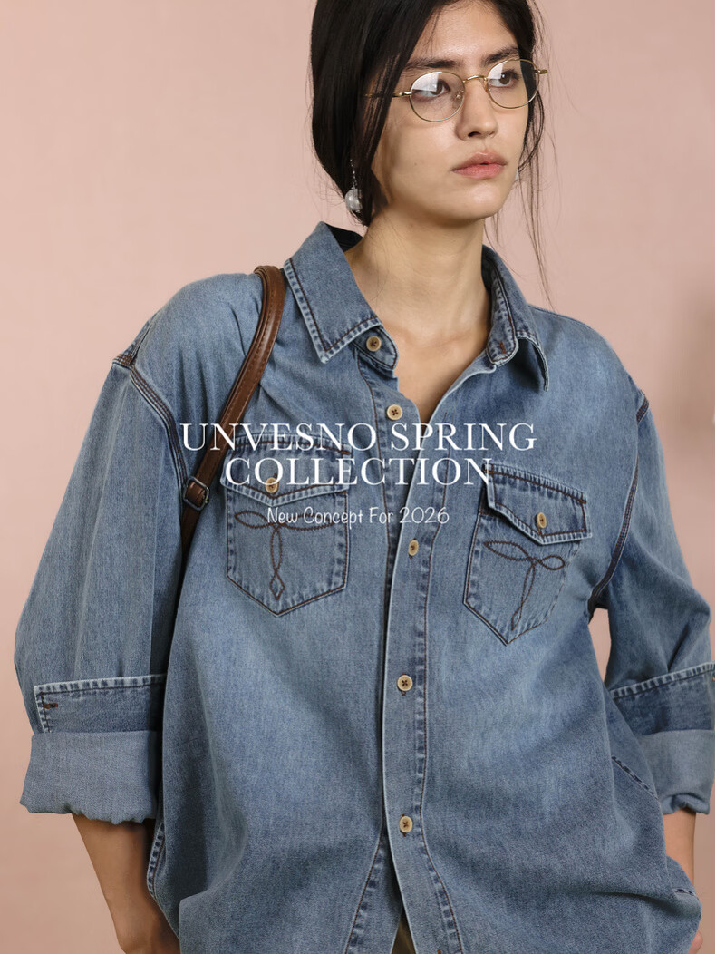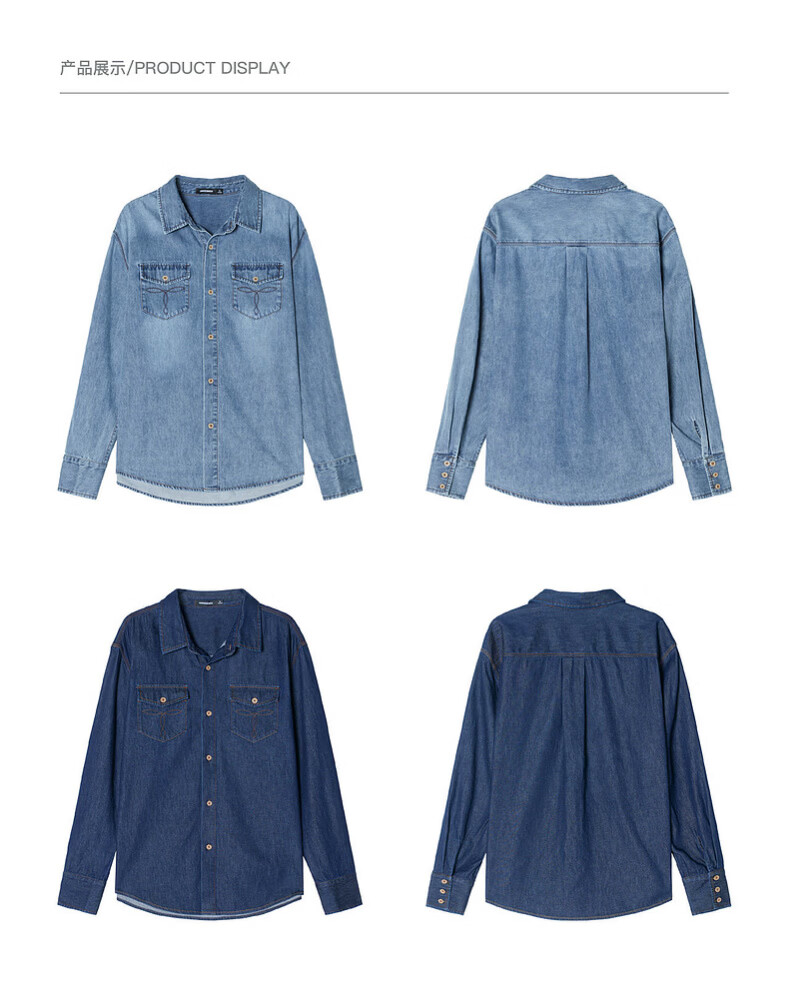 UNVESNO (UN) neutral style natural spray color high quality washed denim linen cotton blend shirt morning mist blue S