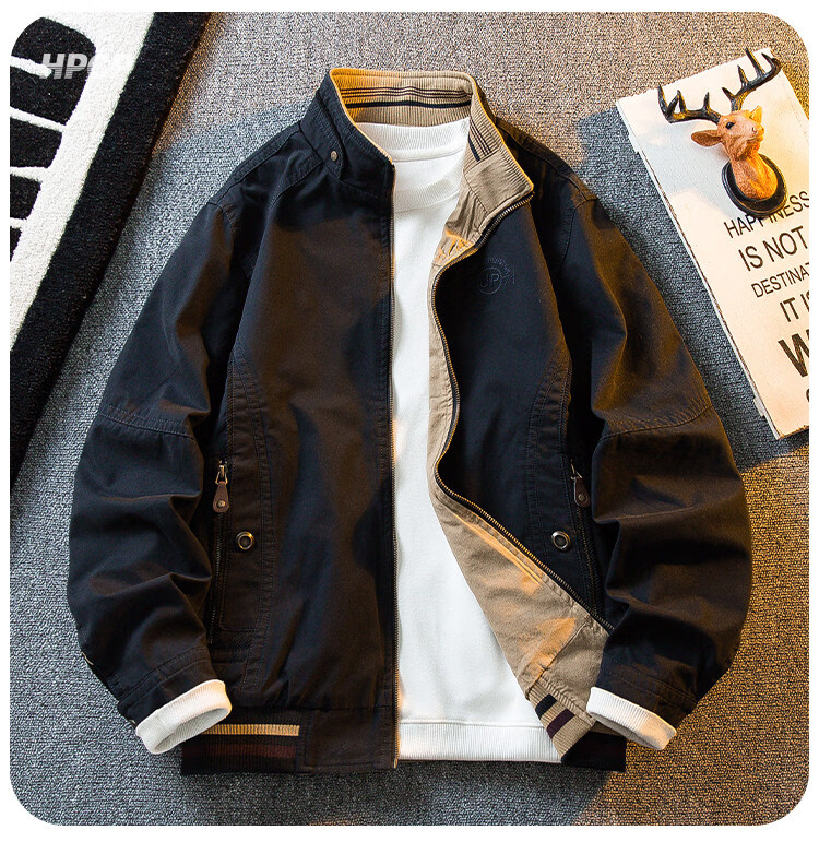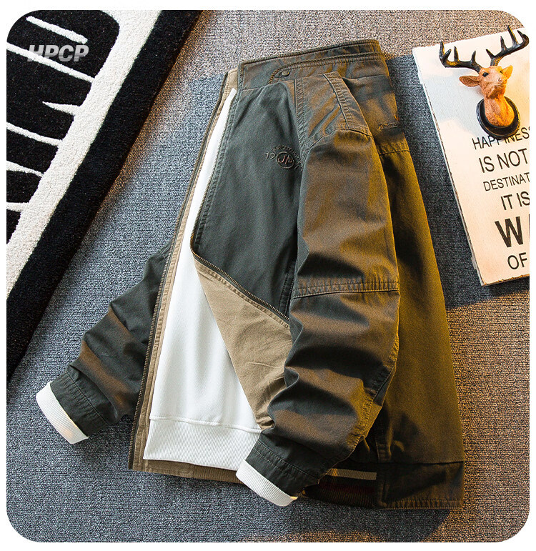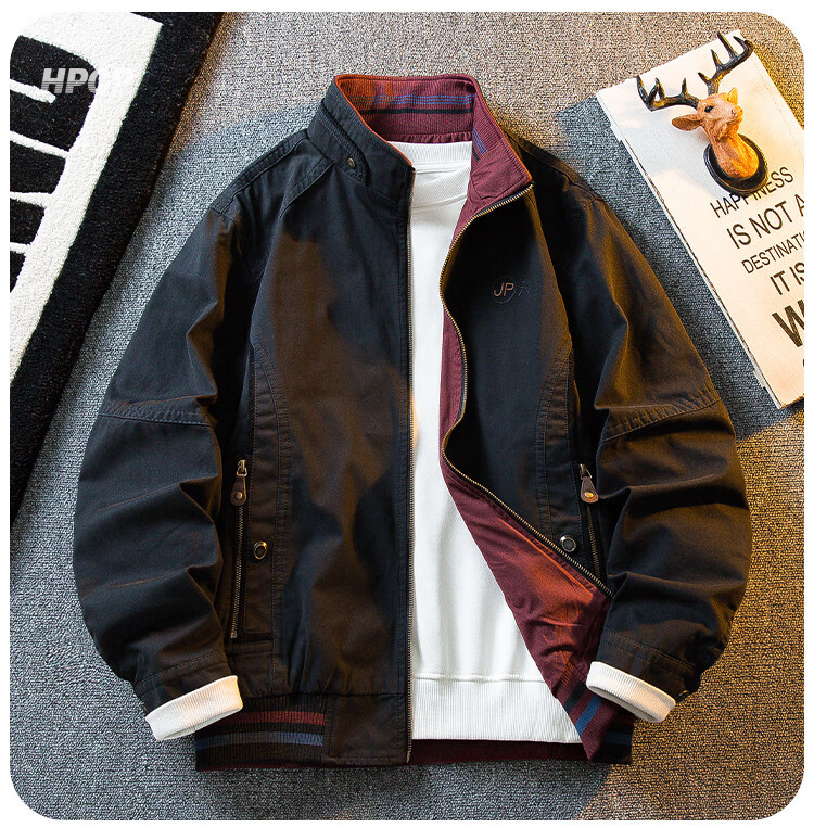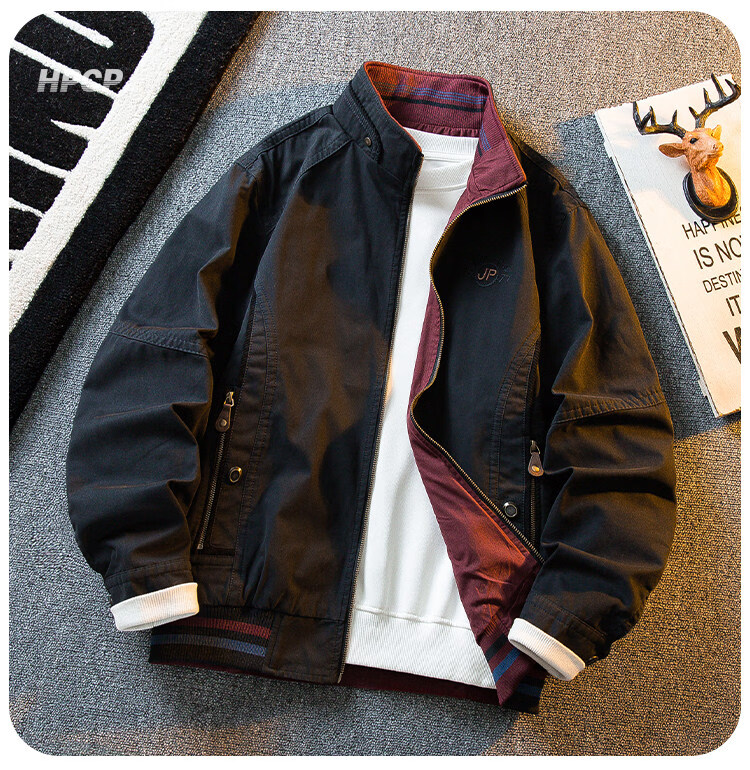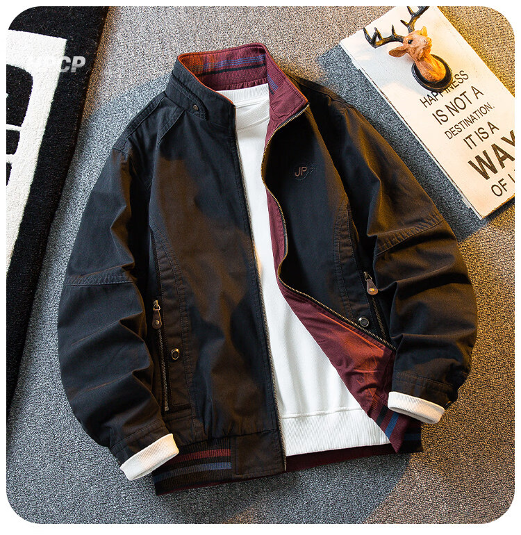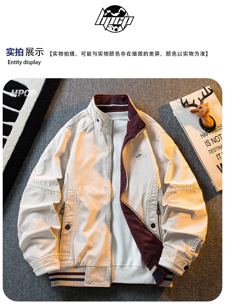 花花公子复古立领猎装夹克男春秋款潮流男士休闲双面穿外套男秋装 军绿/卡其 2XL