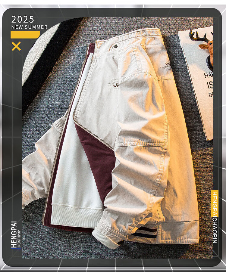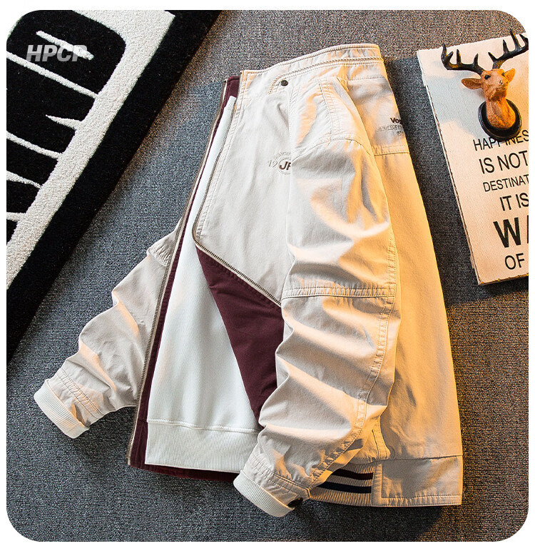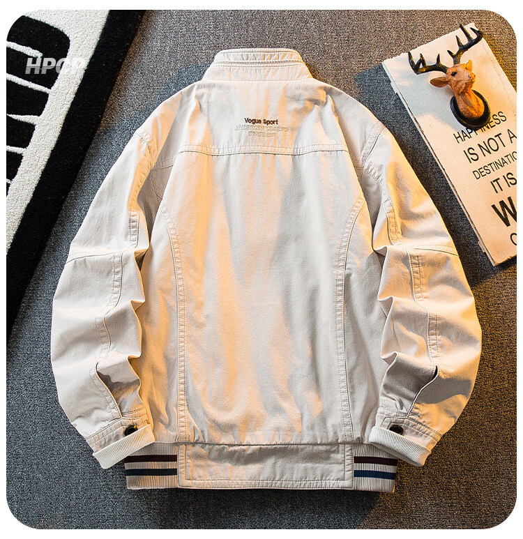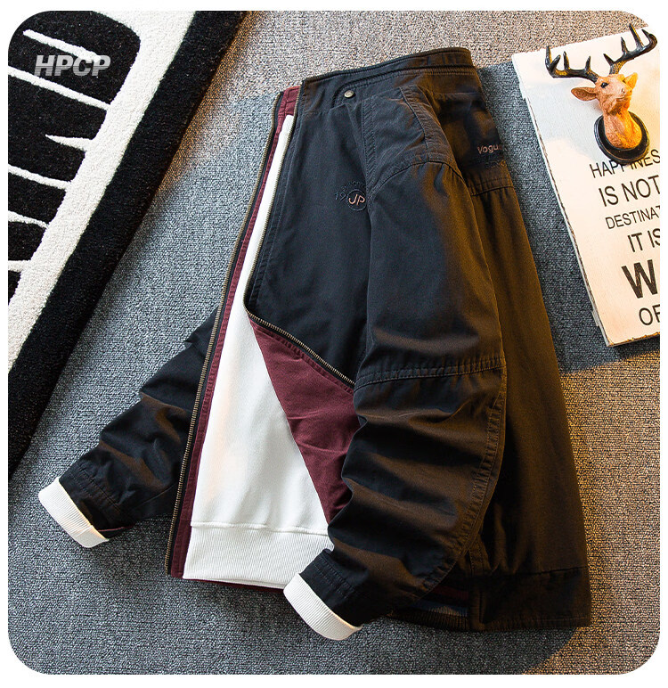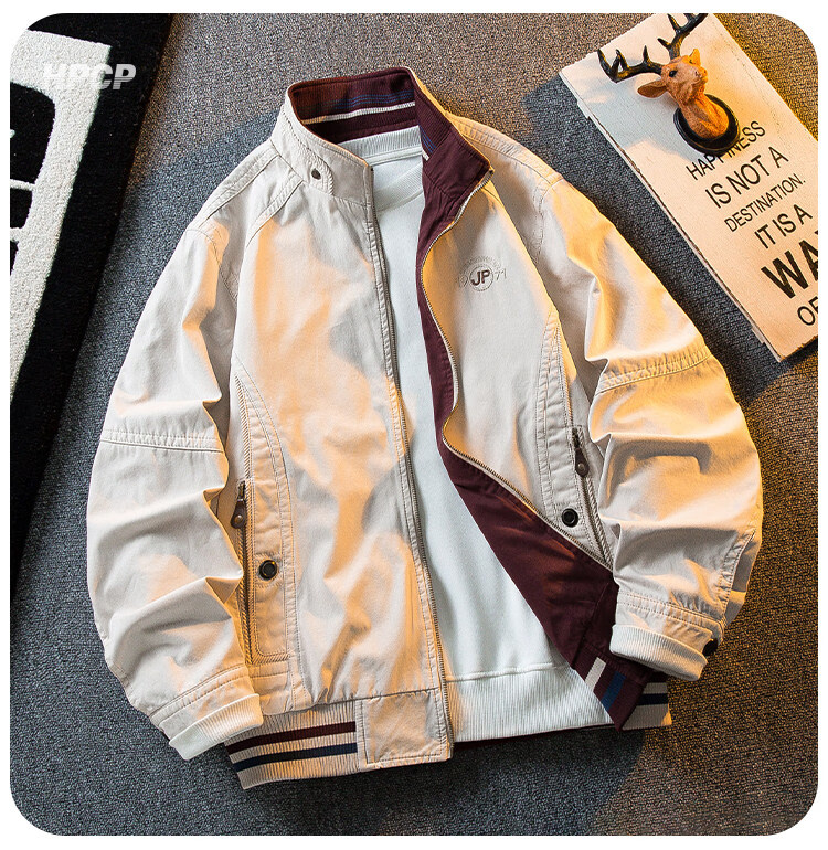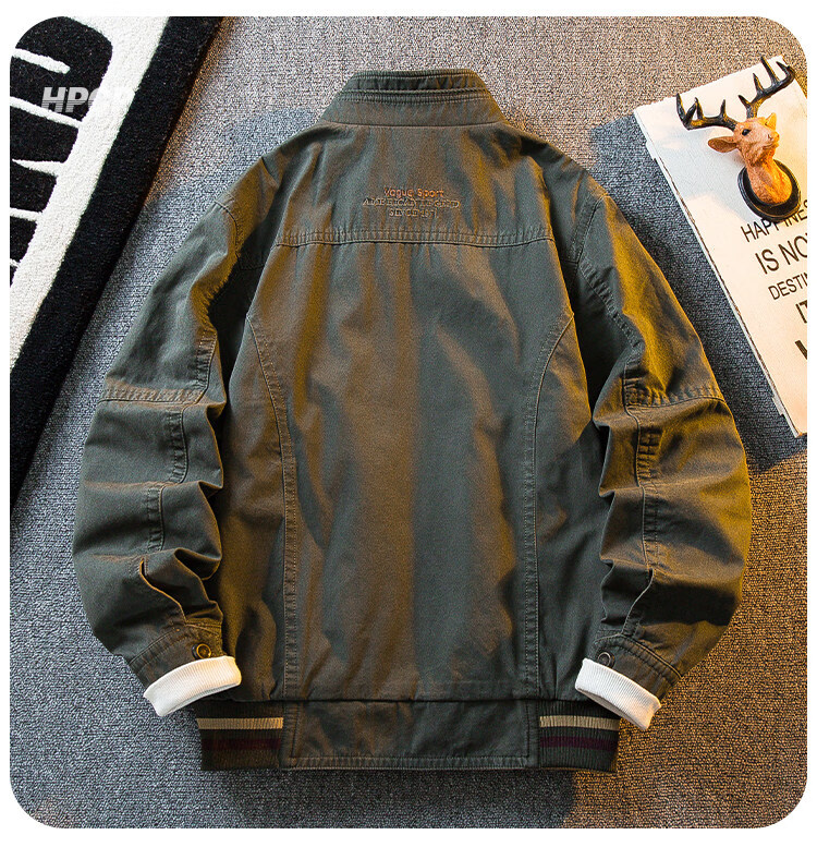 花花公子复古立领猎装夹克男春秋款潮流男士休闲双面穿外套男秋装 军绿/卡其 2XL
