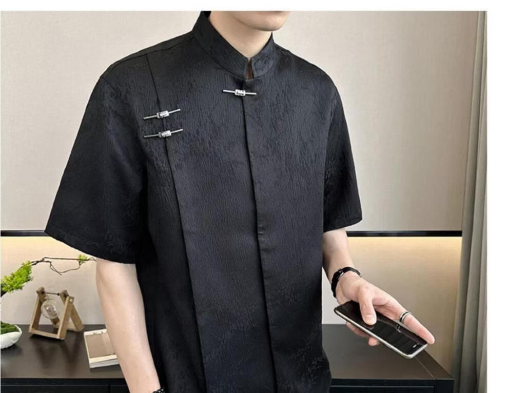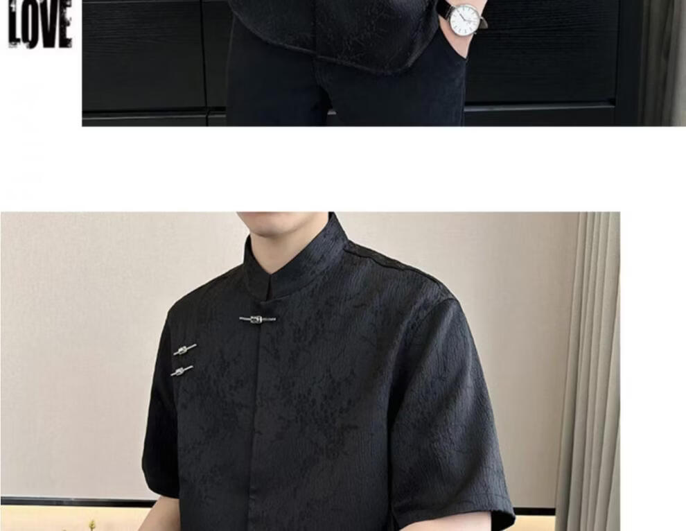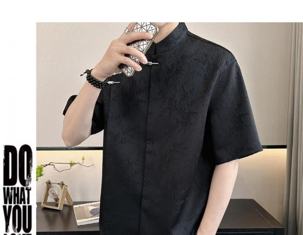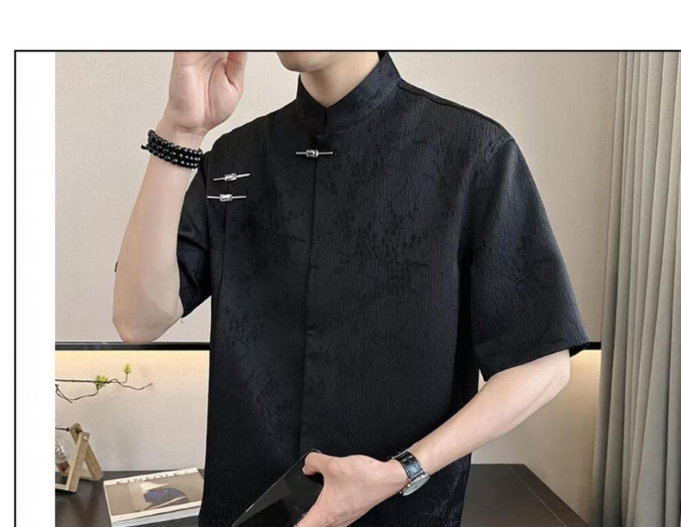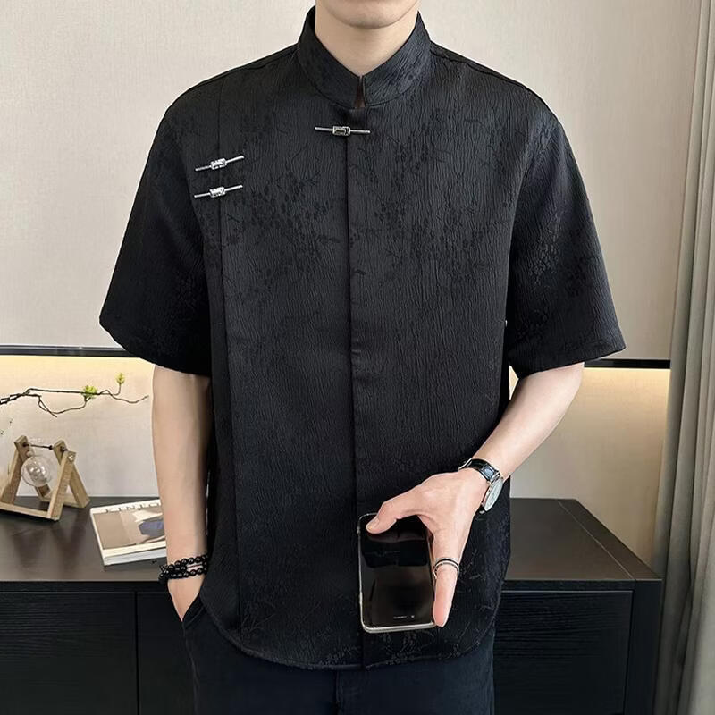 Playboy (PLAYBOY) New Chinese style short-sleeved shirt for men, summer ice silk cool half-sleeved men's national trend mountain collar satin shirt C278 black M (about 100-115Jin Jin is equal to 0.5kg can be worn