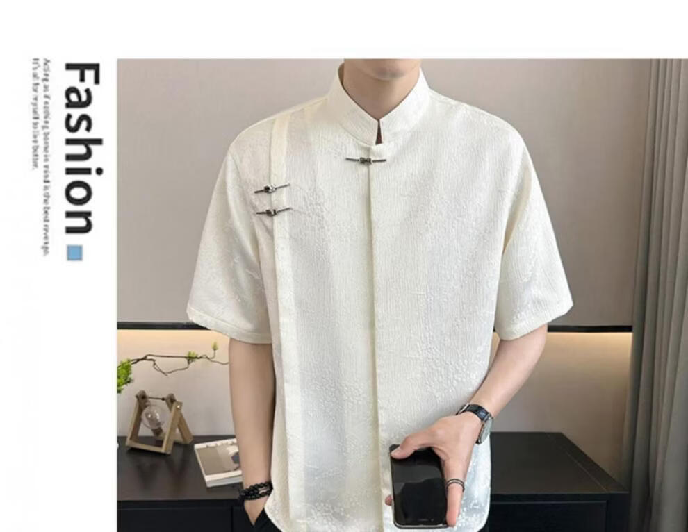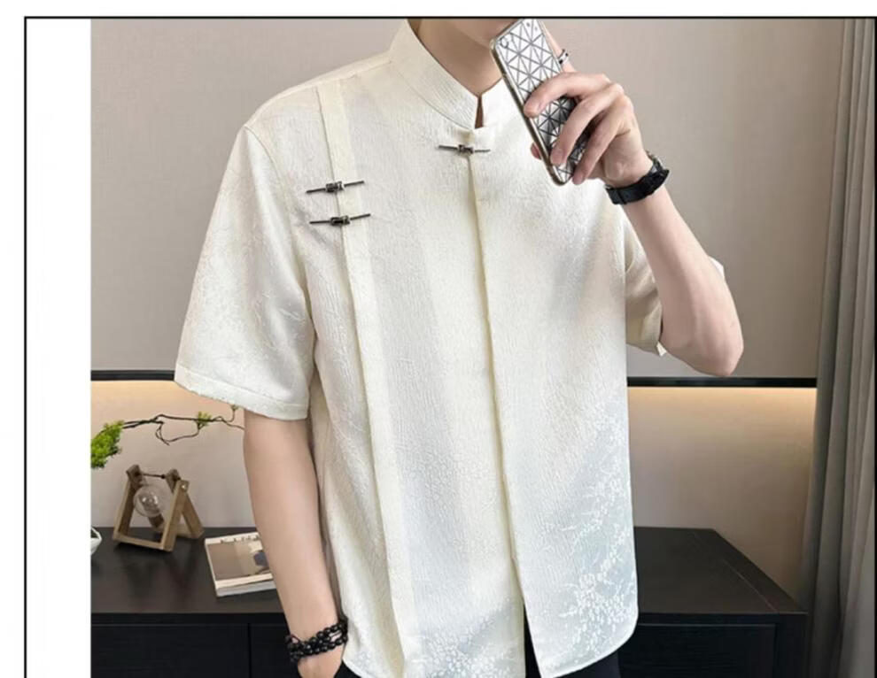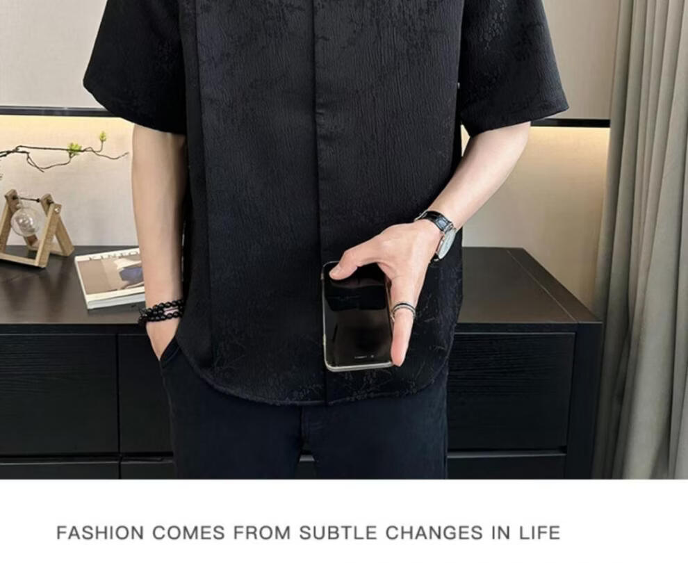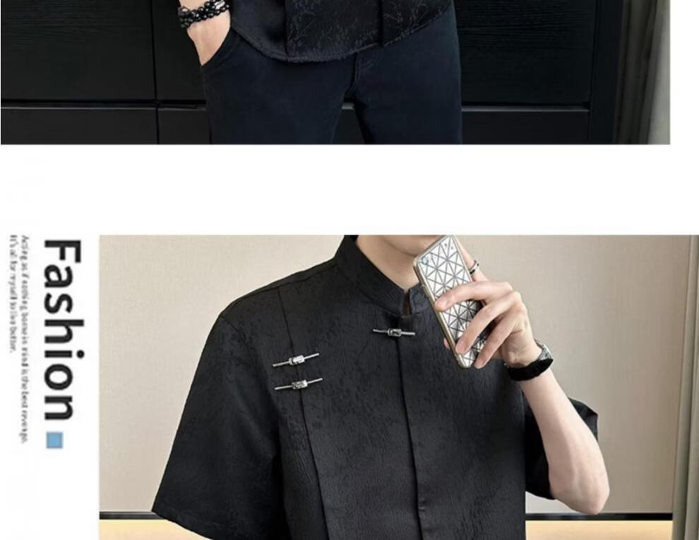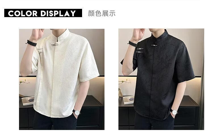 Playboy (PLAYBOY) New Chinese style short-sleeved shirt for men, summer ice silk cool half-sleeved men's national trend mountain collar satin shirt C278 black M (about 100-115Jin Jin is equal to 0.5kg can be worn
