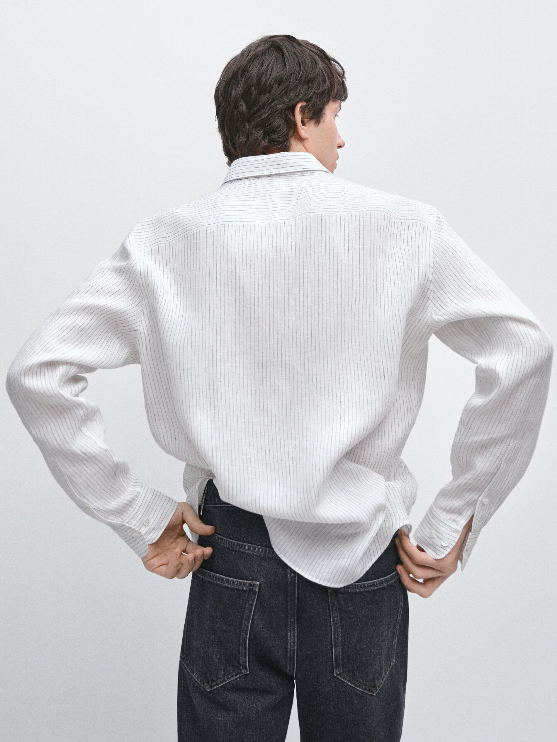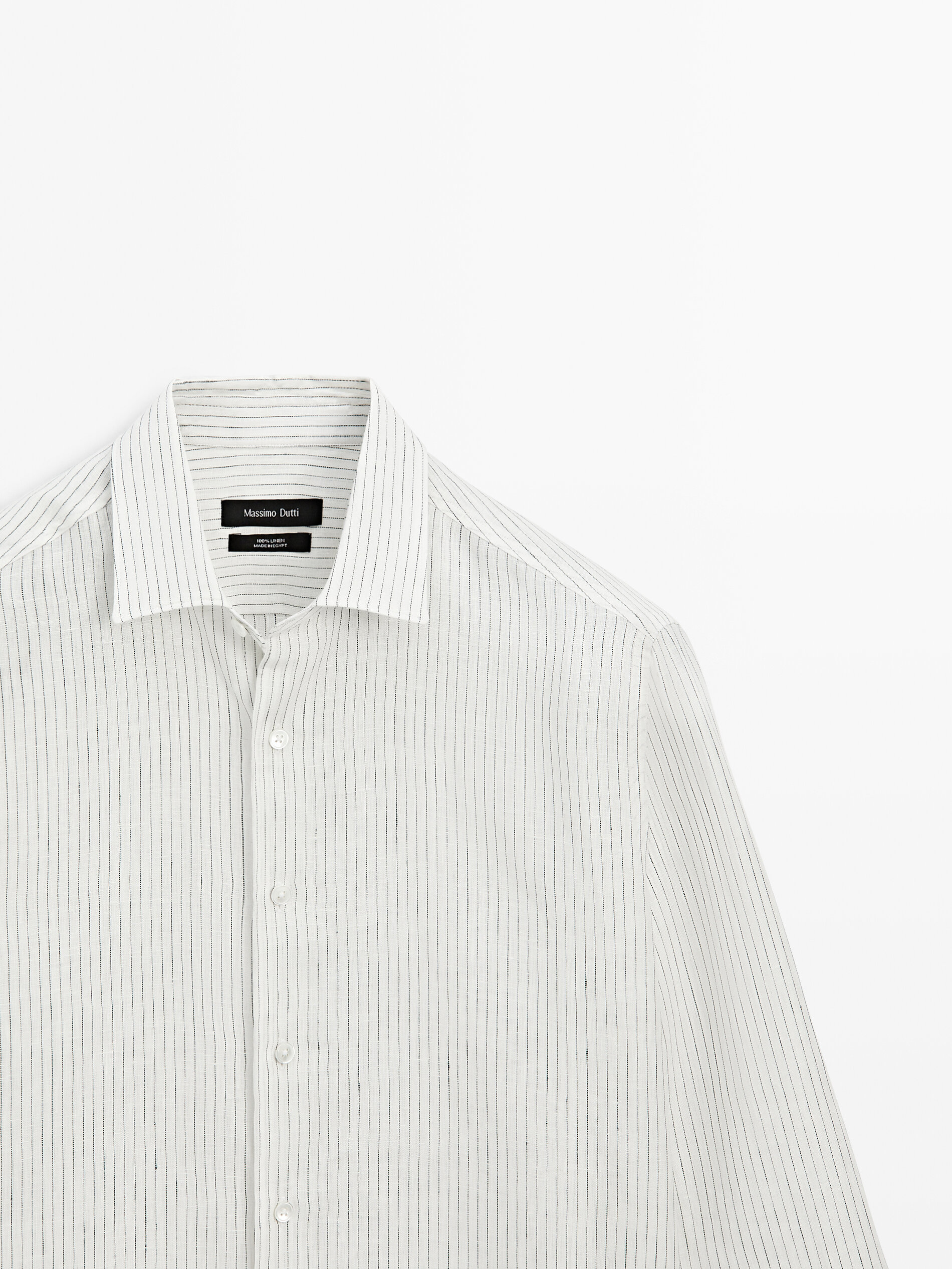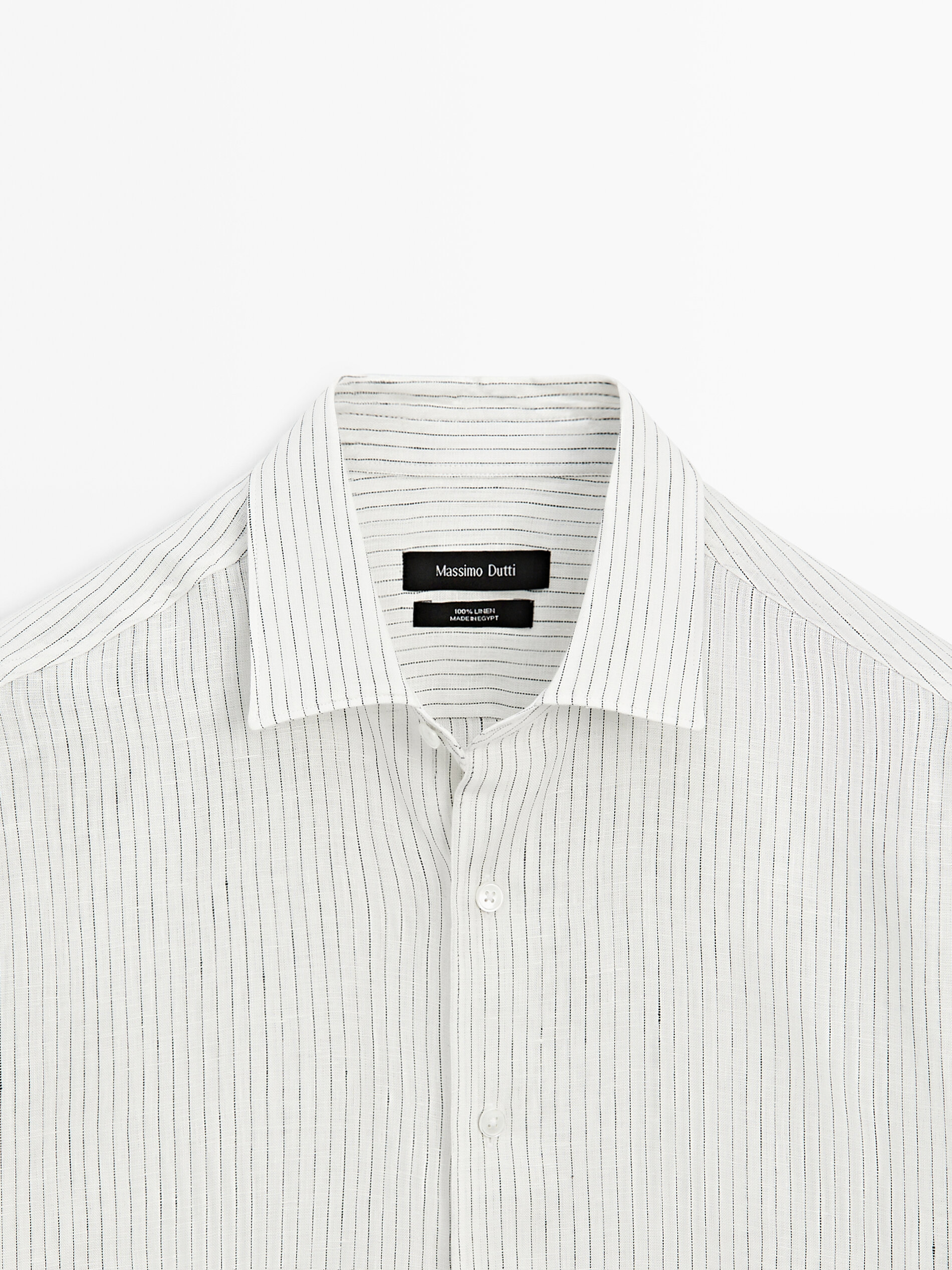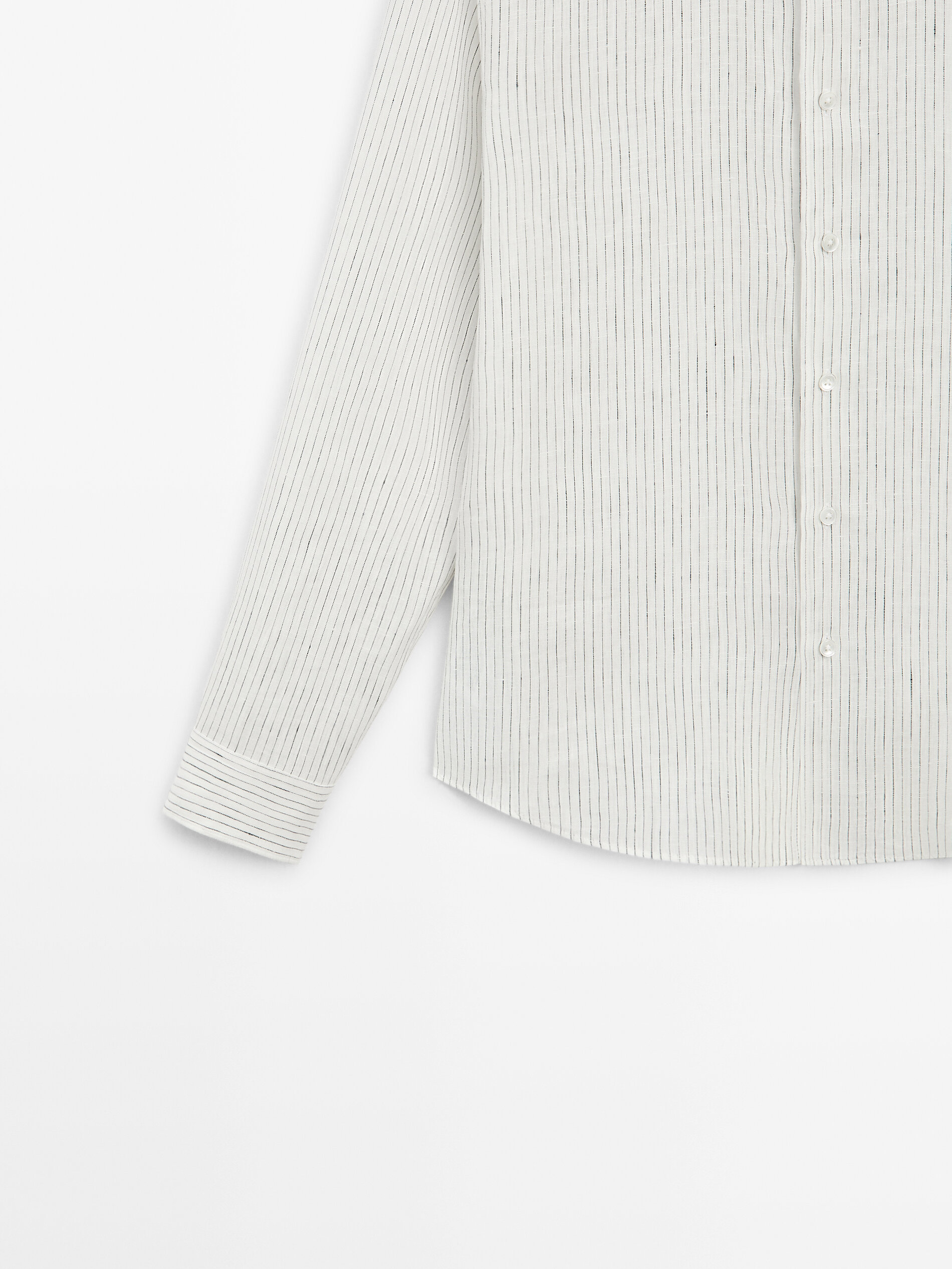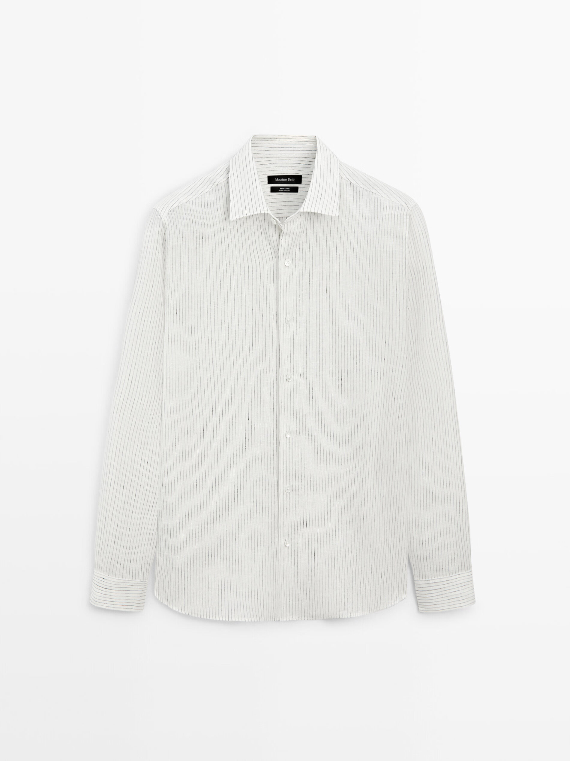 Massimo Dutti Spring and Summer New Product 2026 Men's Versatile 100% Linen Striped Shirt 01957272 White S (CN 175/92A)