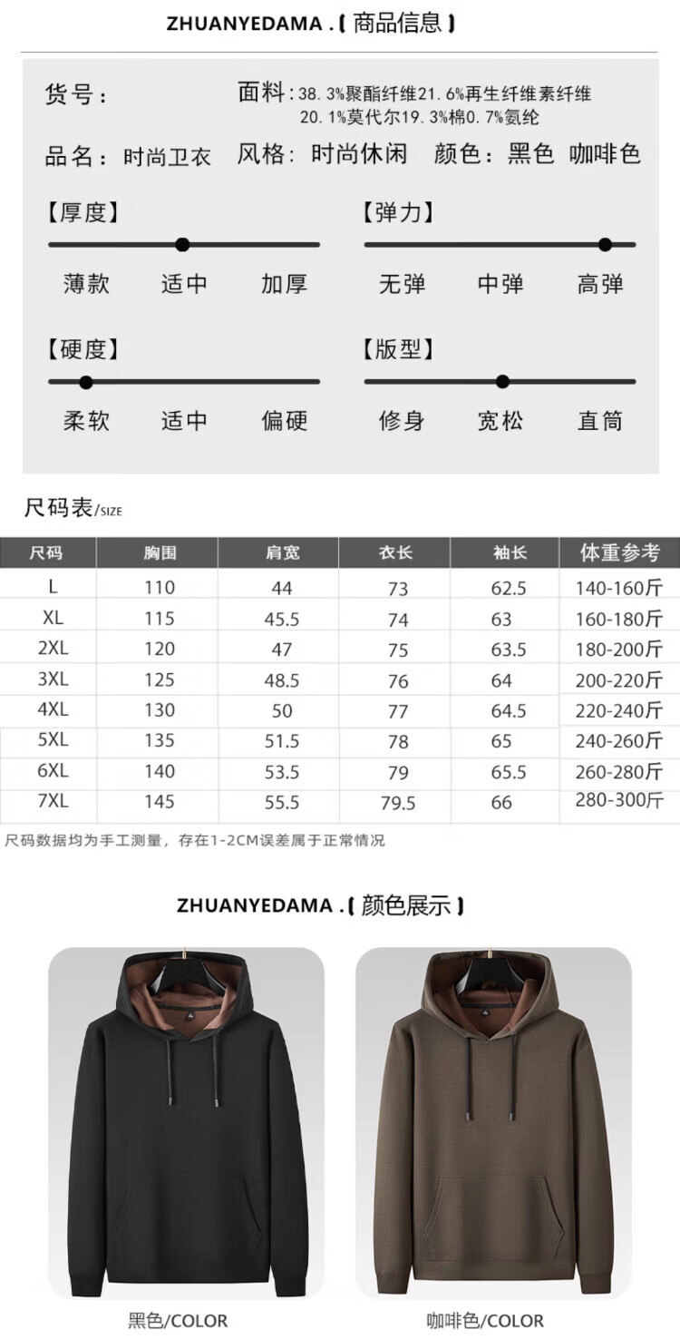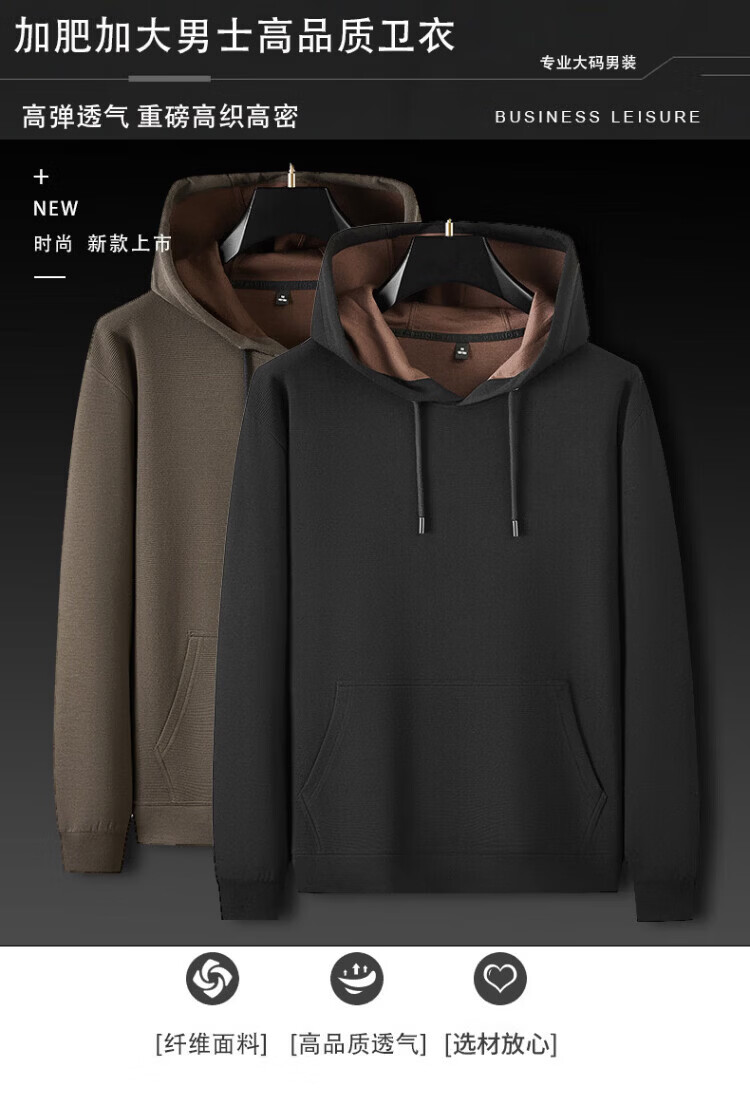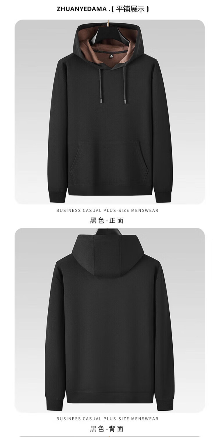 ROMON high-end modal cotton hooded pullover long-sleeved sweatshirt for men in spring and autumn, simple, casual, fashionable, handsome, plus size, black (black lining) 7XL suitable for 280-300Jin Jin equals 0.5 kg