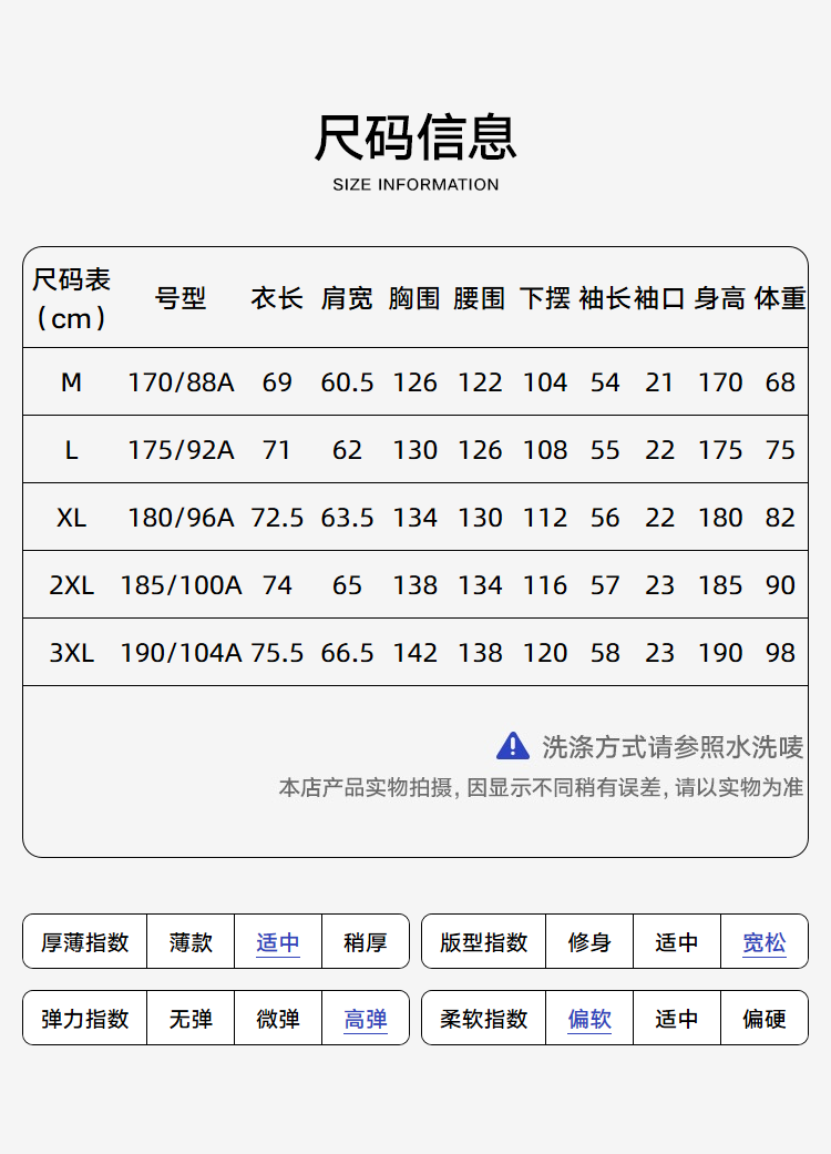 China (cm) 165 / 88-90 170 / 96-98 175 / 108-110 180 / 118-122 185 / 126-130
