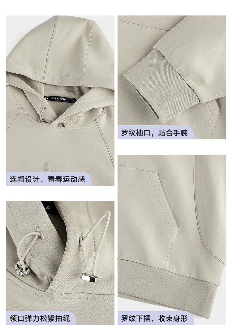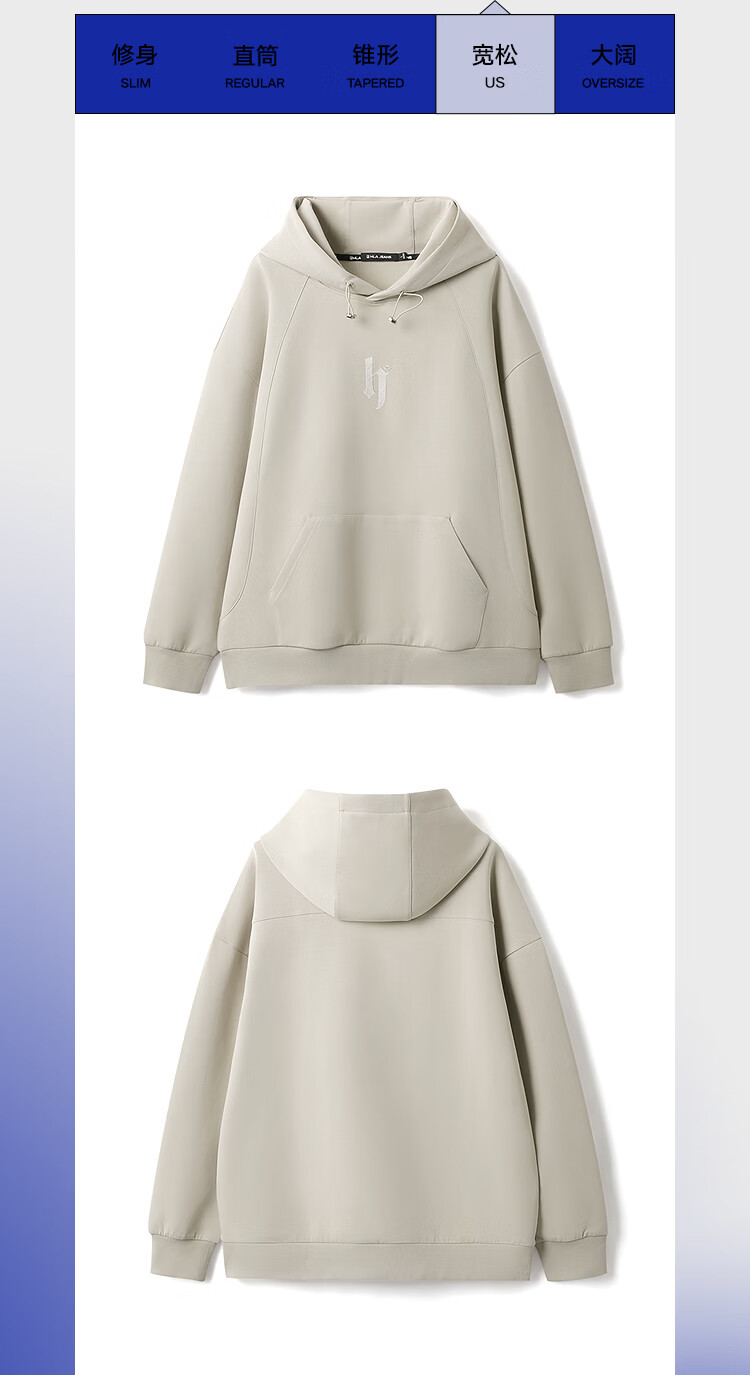 Black Whale (HLAJEANS) Heilan House's fashionable loose hooded sweatshirt for men 2026 spring new pullover top for men Khaki 08 XL