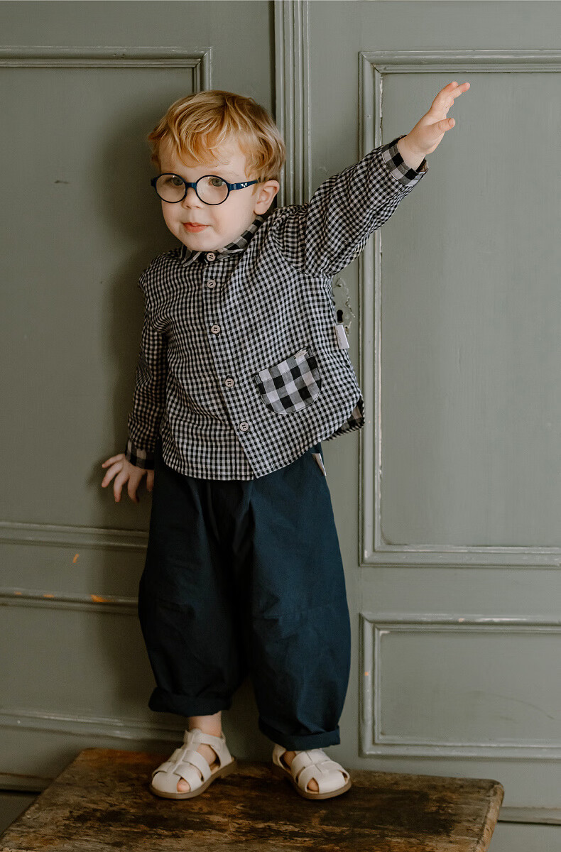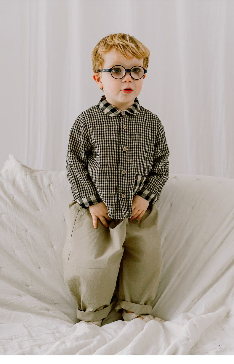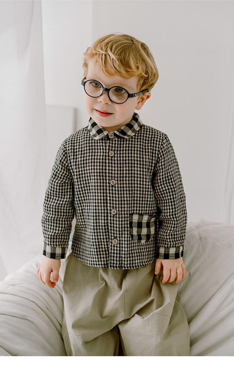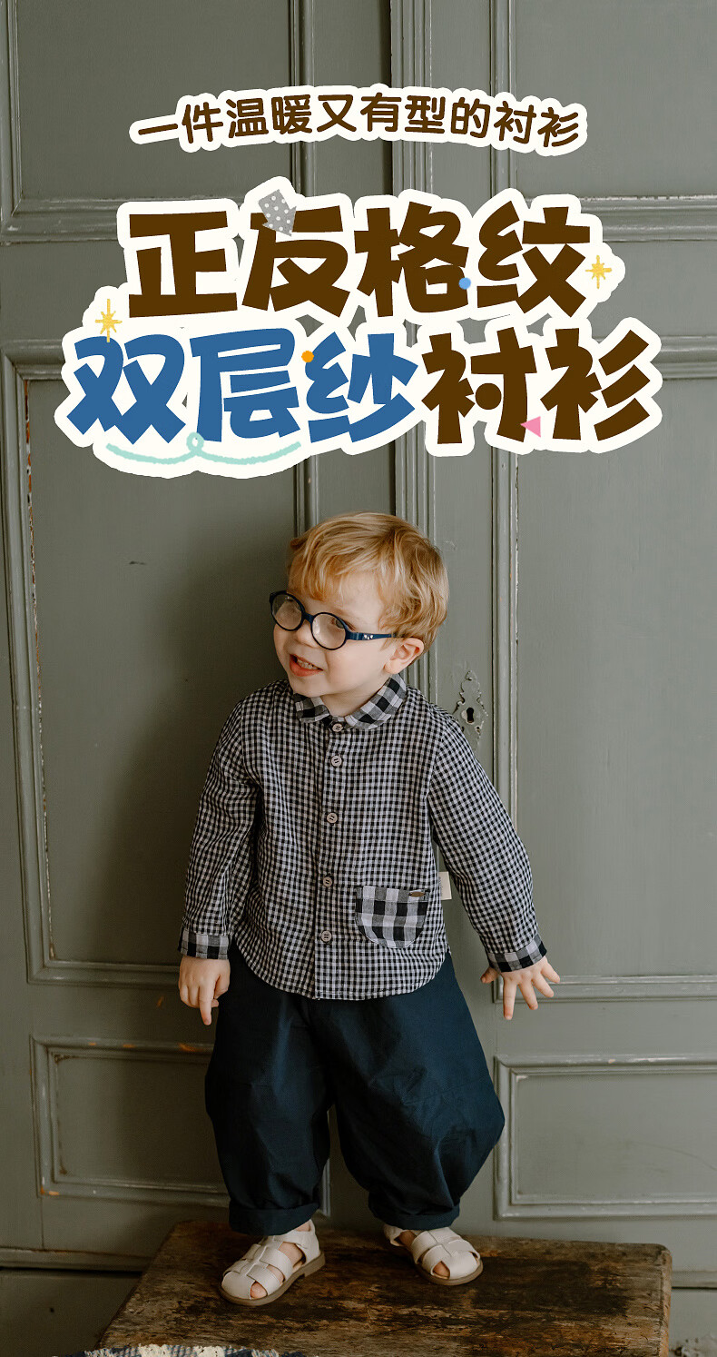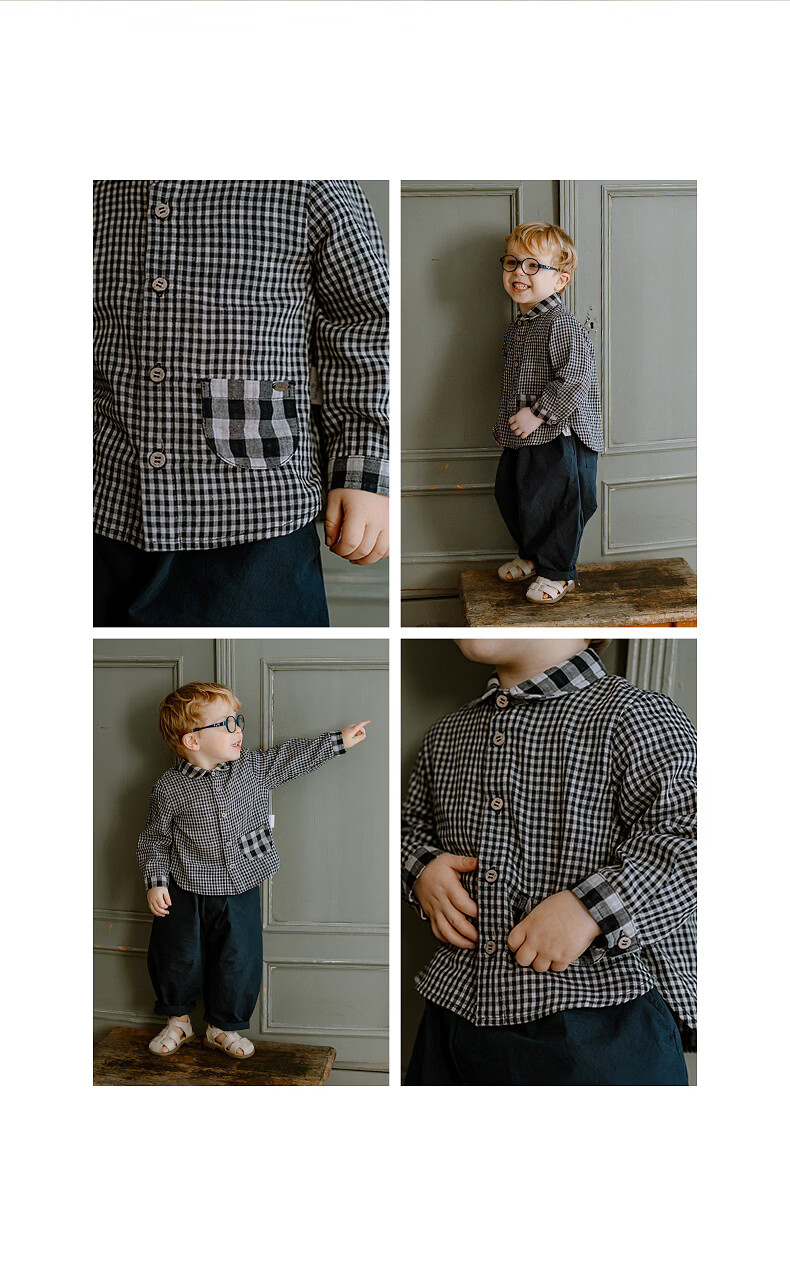 LELE JOVE children's tops spring new boys college style casual all-match lapel shirt navy plaid 110 cm