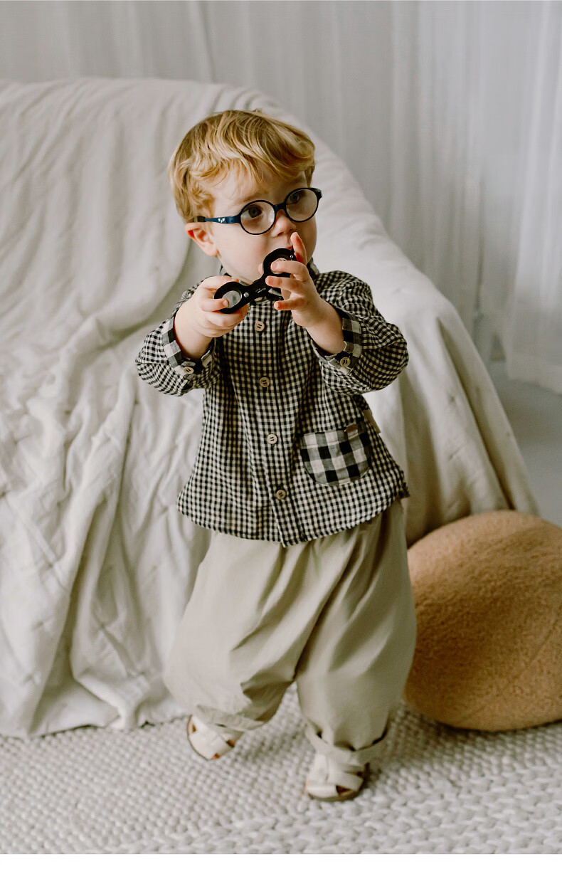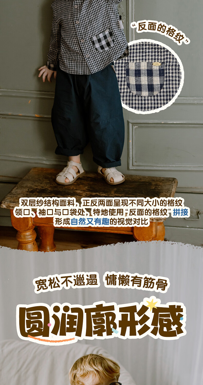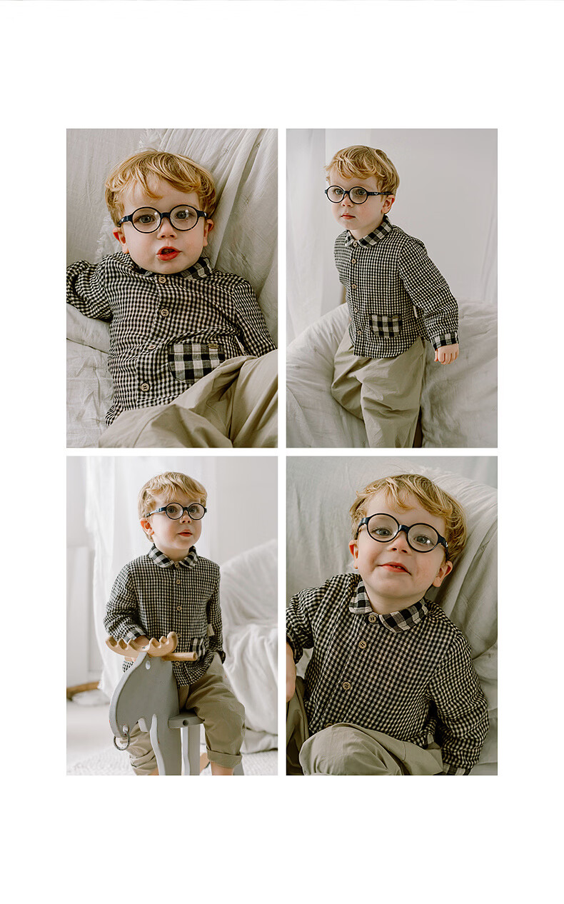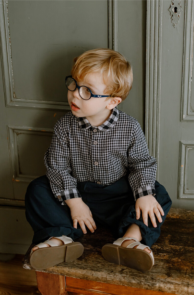 LELE JOVE children's tops spring new boys college style casual all-match lapel shirt navy plaid 110 cm