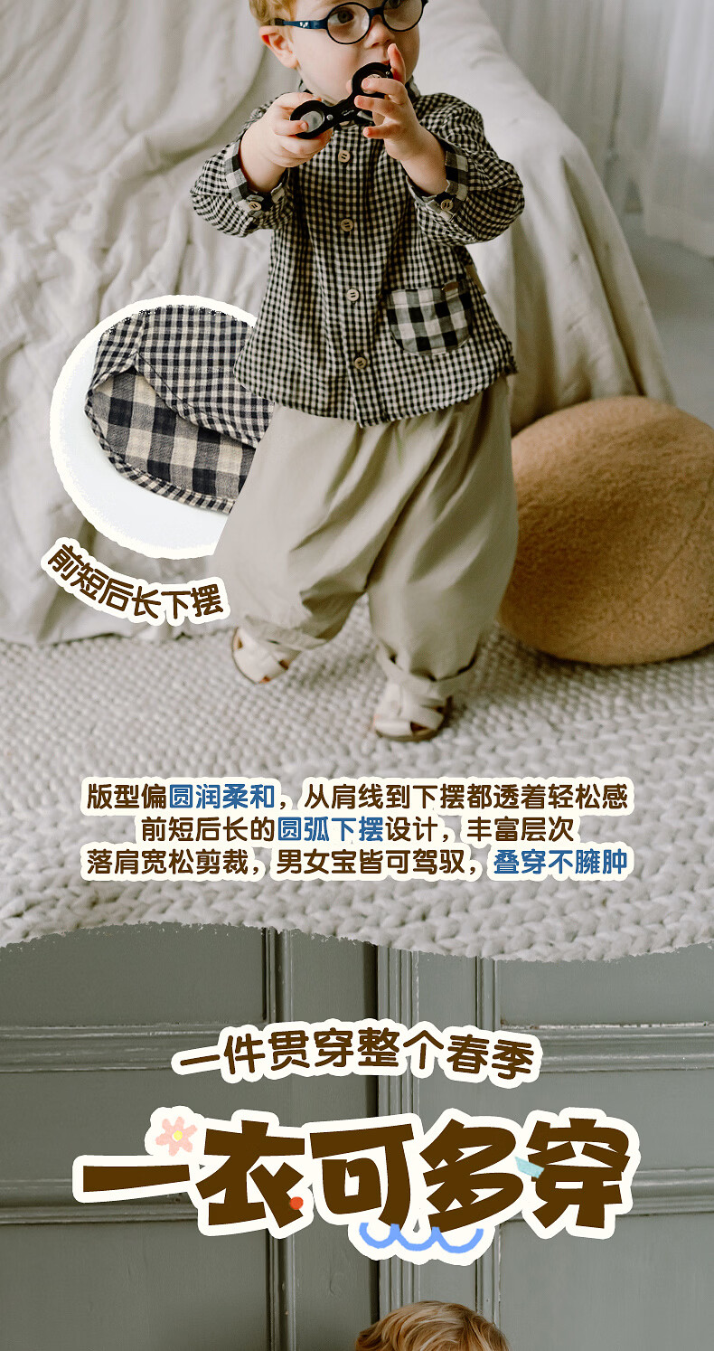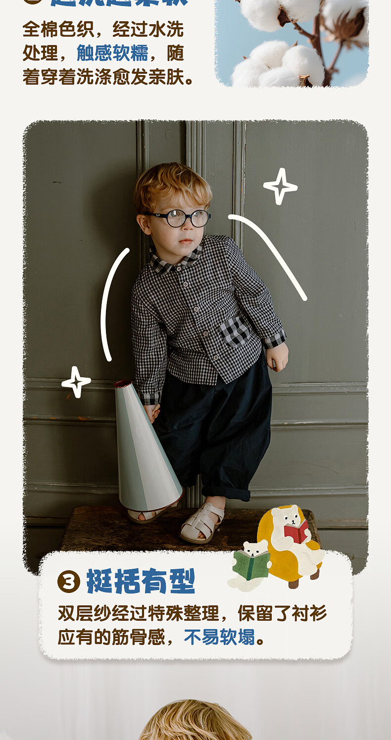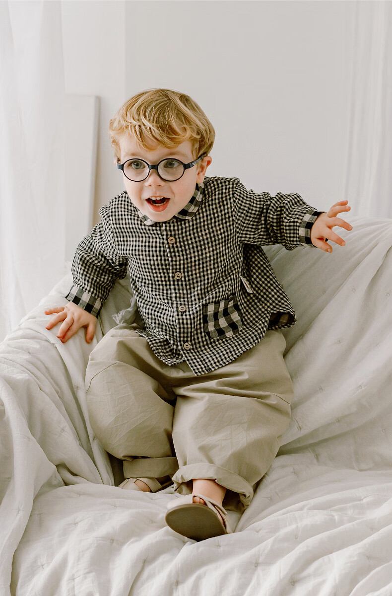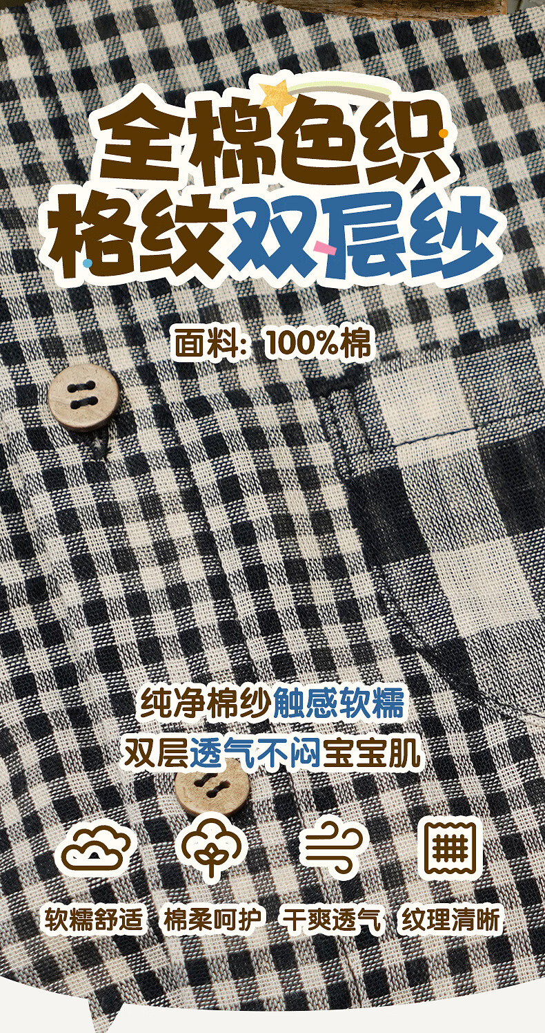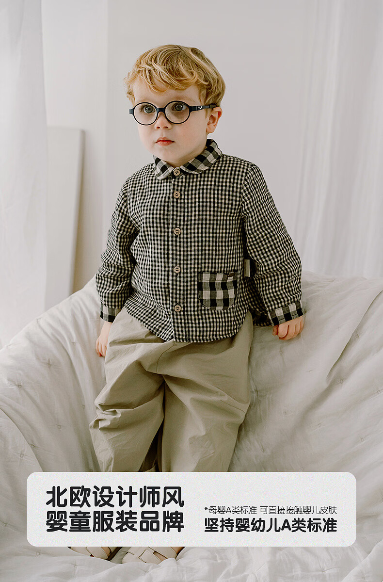 LELE JOVE children's tops spring new boys college style casual all-match lapel shirt navy plaid 110 cm