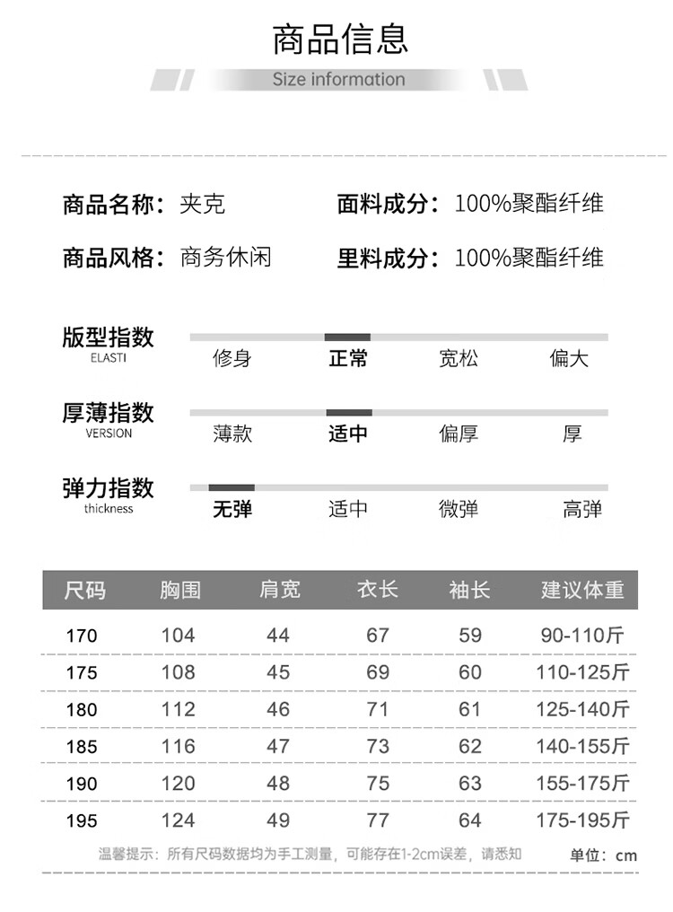 China (cm) 165 / 88-90 170 / 96-98 175 / 108-110 180 / 118-122 185 / 126-130