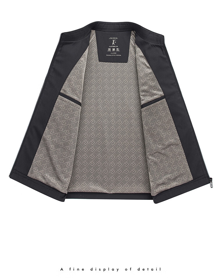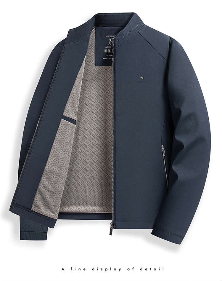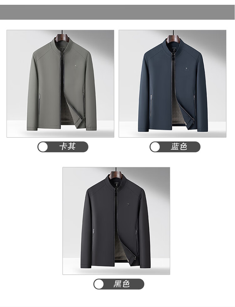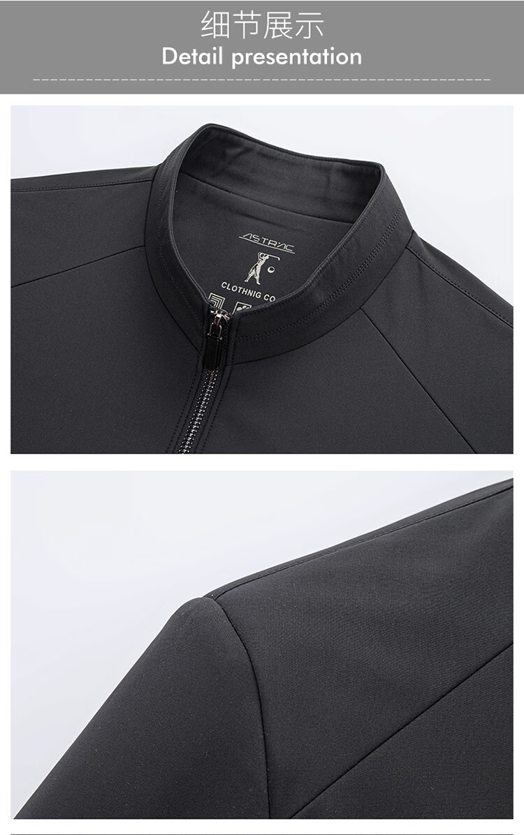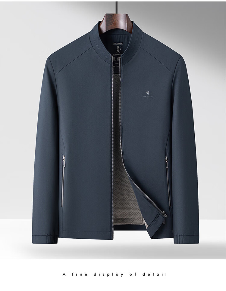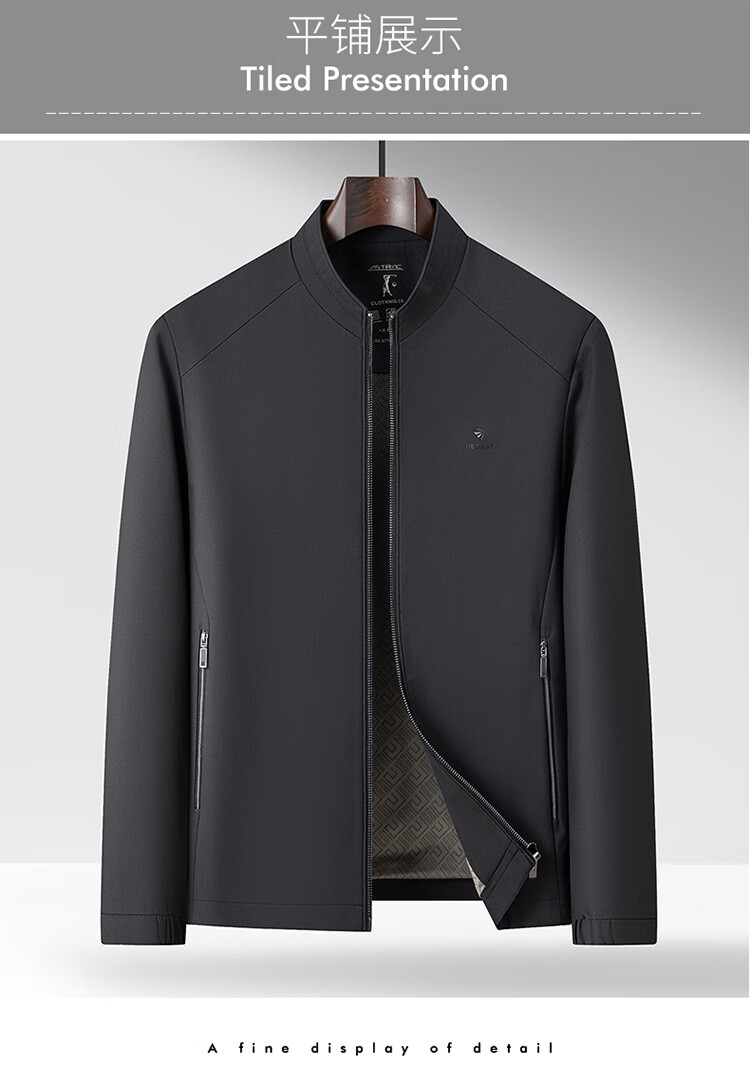Hengyuanxiang Spring Stand Collar Jacket Men's Light Casual Spring and Autumn Jacket Men's Middle-aged Dad's Clothing Versatile Dark Pattern Top Black M 170