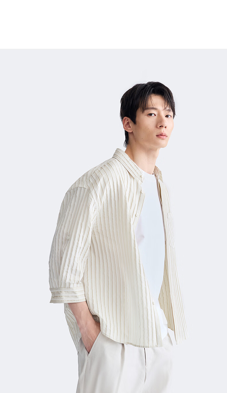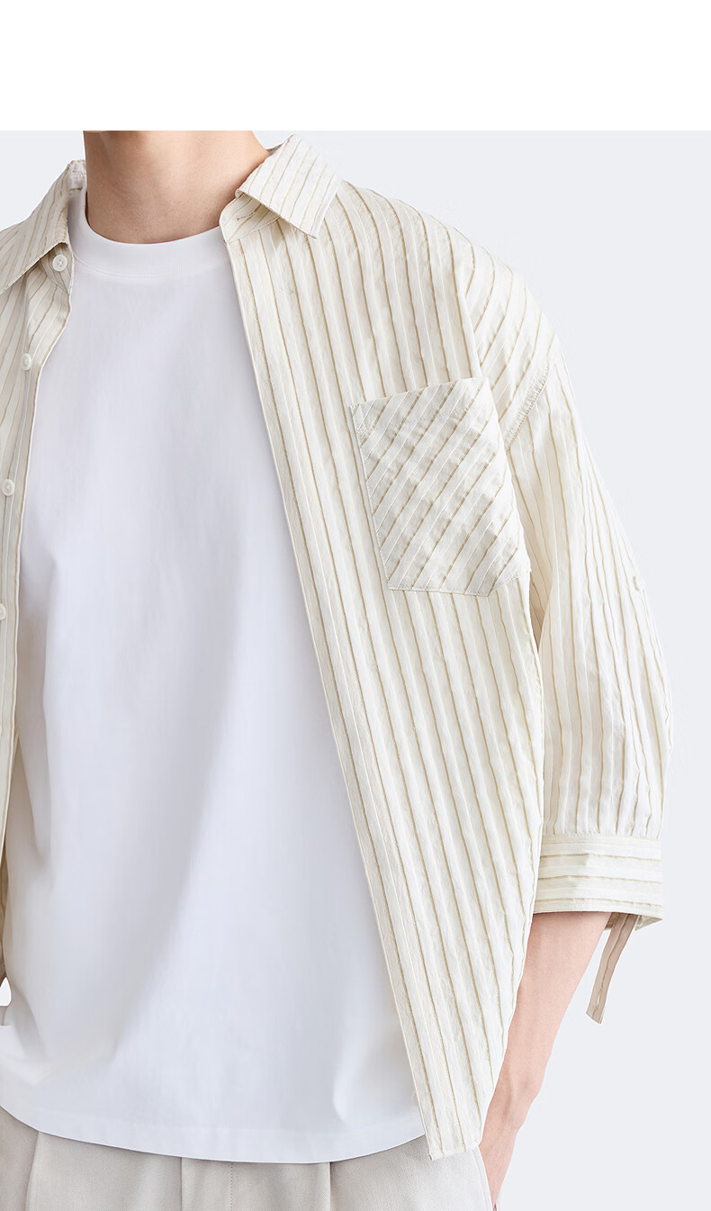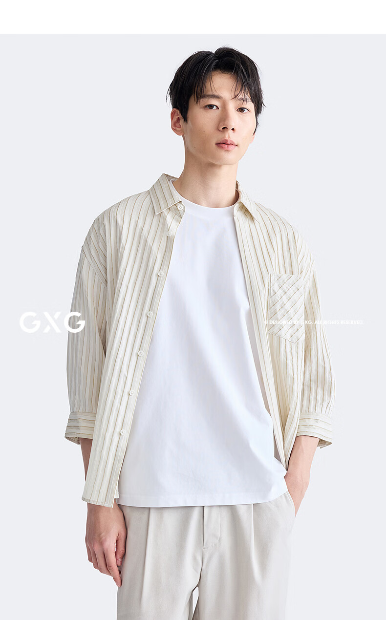 GXG Men's Wear Shopping Mall Same Style Three Quarter Sleeve Shirt 2026 Summer New Product G26X032033 Rice White Strips XL