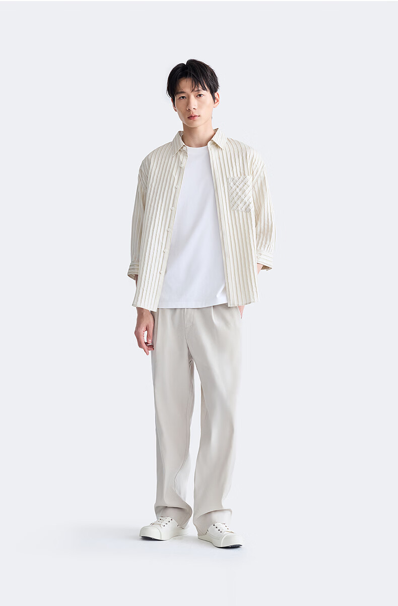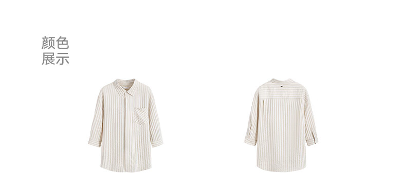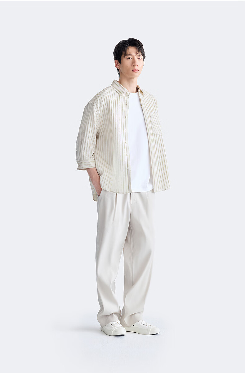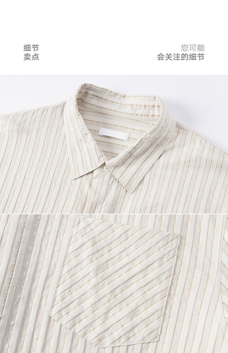 GXG Men's Wear Shopping Mall Same Style Three Quarter Sleeve Shirt 2026 Summer New Product G26X032033 Rice White Strips XL