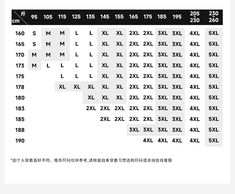 China (cm) 160-165/84-86 165-170 / 88-90 167-172 / 92-96 168-173 / 98-102 170-176 / 106-110