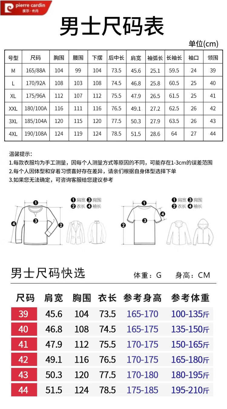 China (cm) 165 / 88-90 170 / 96-98 175 / 108-110 180 / 118-122 185 / 126-130