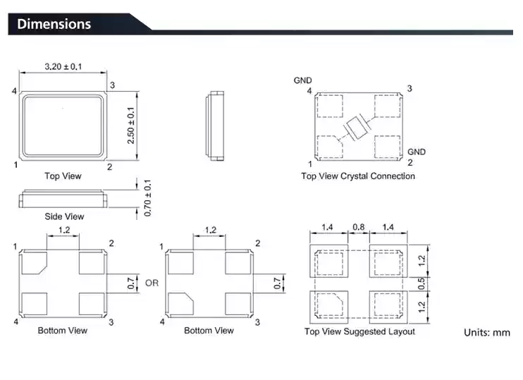 322512M1626m Passive Crystal Oscillator 8M25m24M27M32m3020MHZ SMD Crystal Oscillator 4P 322525MHZ