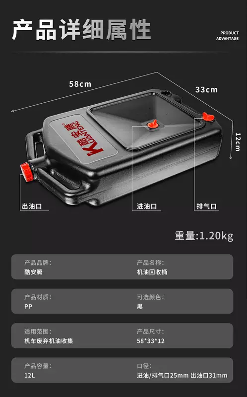 Yusen Yiku Itan oil collection barrel connecting oil barrel gear oil waste oil recovery barrel 12 liter oil barrel auto repair and maintenance tools 12L waste oil collector (export model)