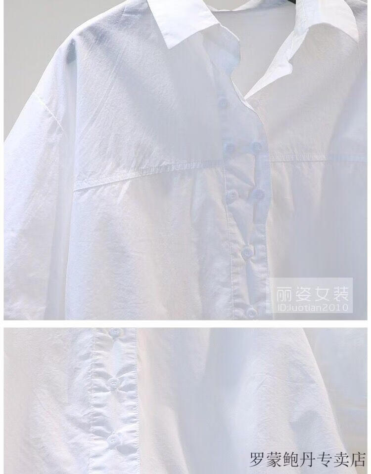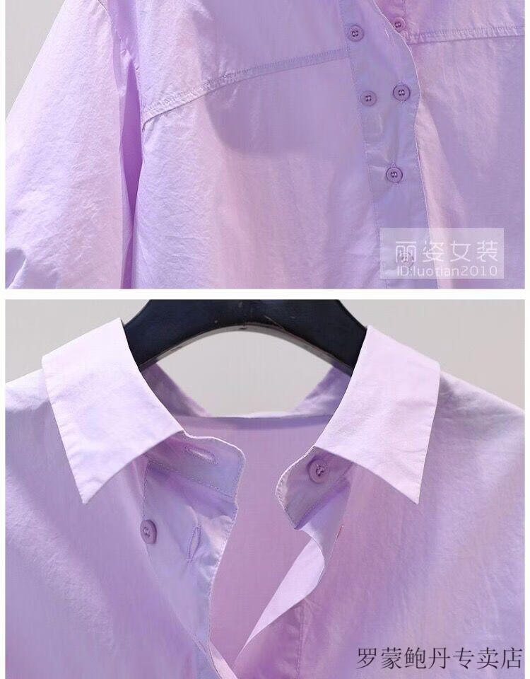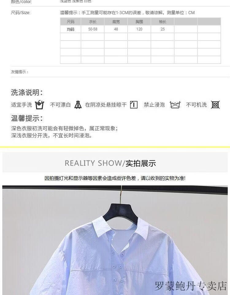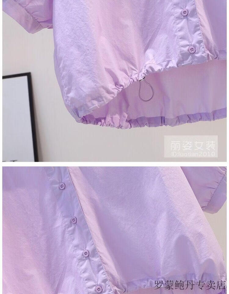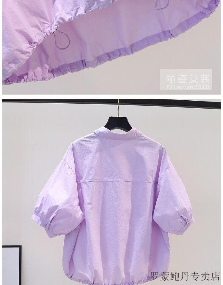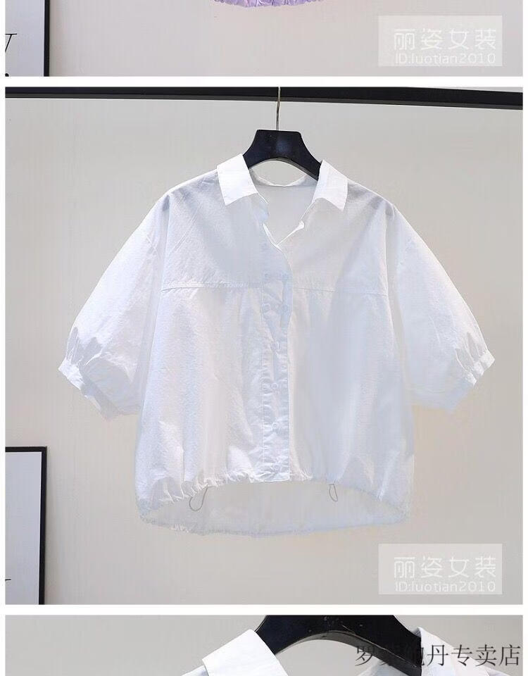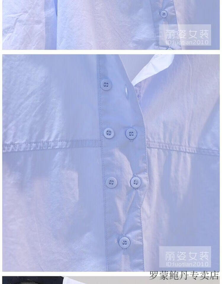 ROMON cotton shirt women's short petite 2026 summer thin hem drawstring design loose lantern sleeve shirt light blue S 80-100Jin Jin equals 0.5 kg