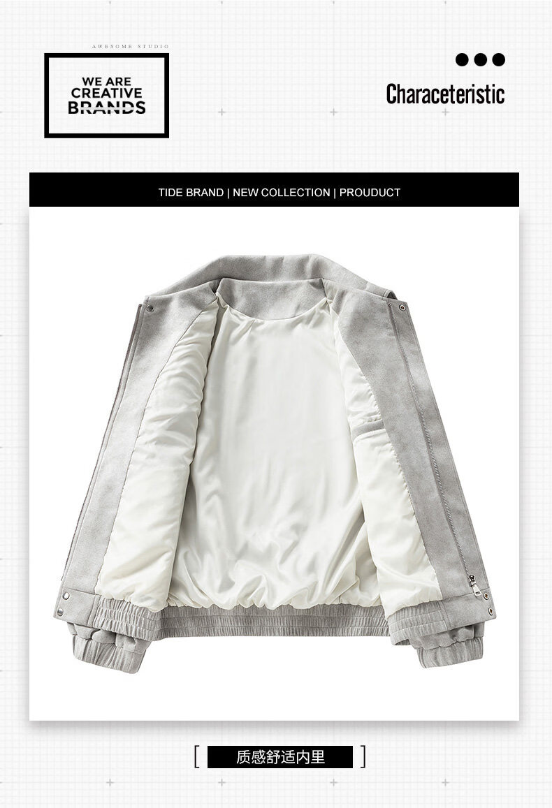 Playboy (PLAYBOY) American Retro Jacket Men's 2026 New Baseball Collar Spring Loose Casual Jacket Versatile Youth Beige XL Recommended 145-165 Jin Jin equals 0.5 kg
