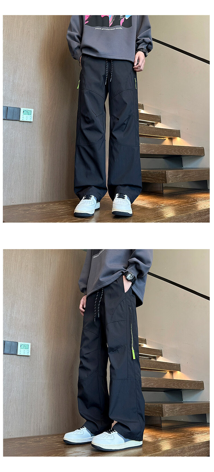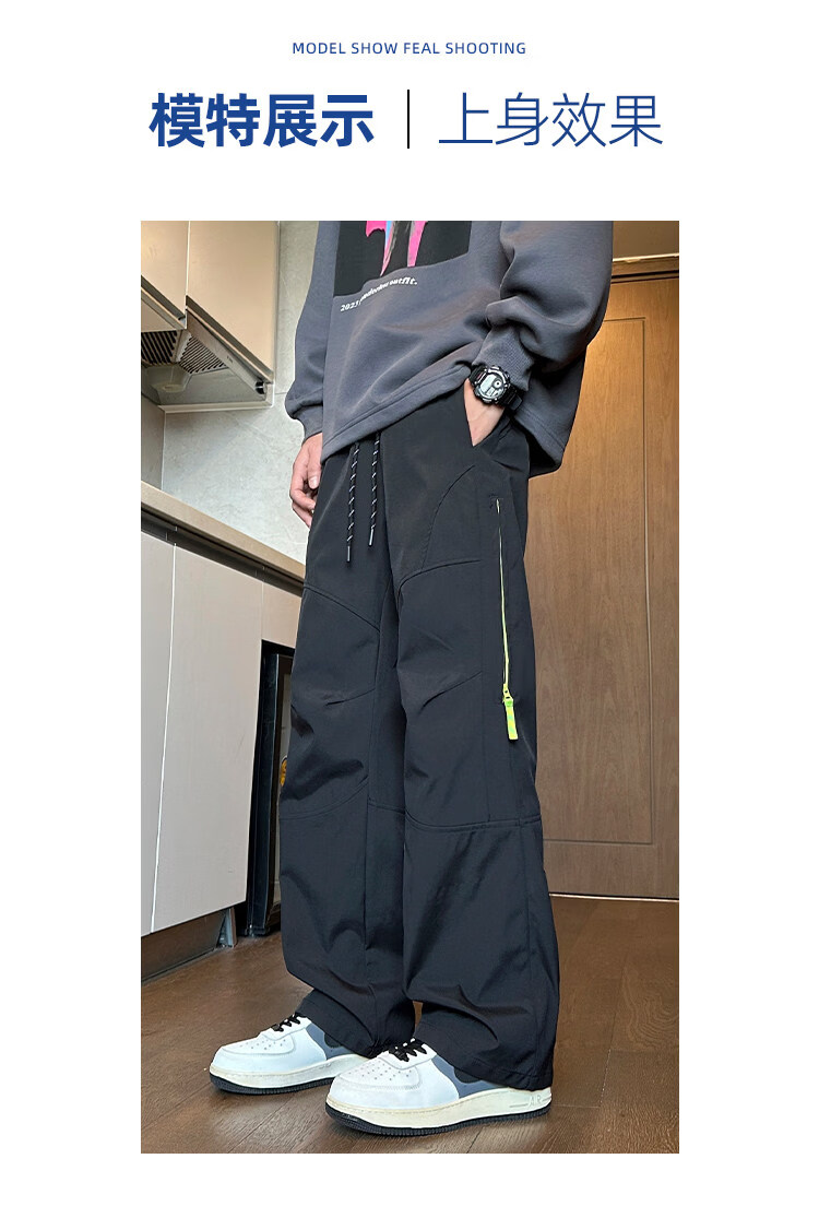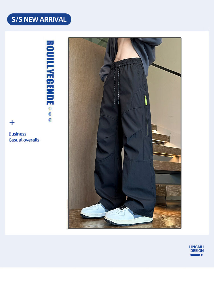 Woodpecker Spring and Autumn Loose Overalls Pants Men's Teenagers High School Junior High School Students Straight Leg Pants Big Children's Casual Sports Pants HK9663 Black XL Recommended 120-135Jin Jin equals 0.5kg