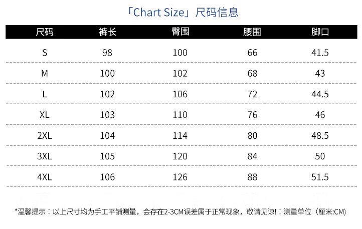 Outseam (cm) 99 cm 101.5 cm 104 cm 106.5 cm 109 cm