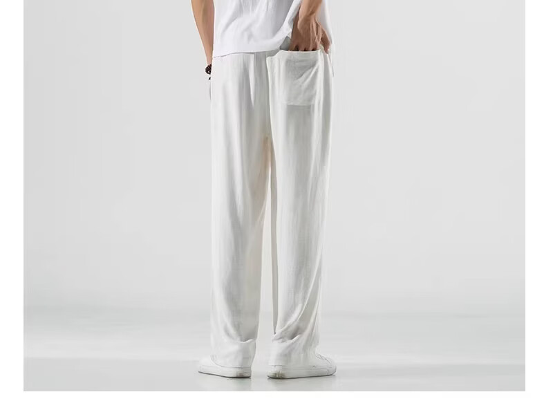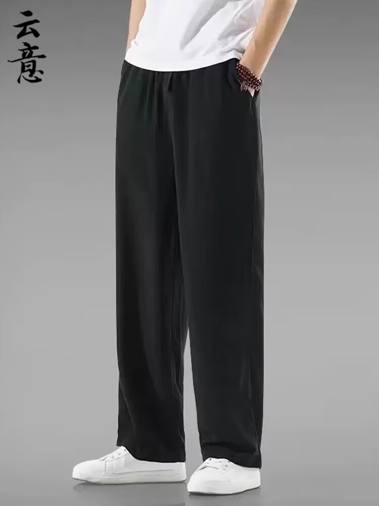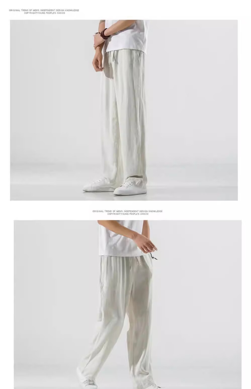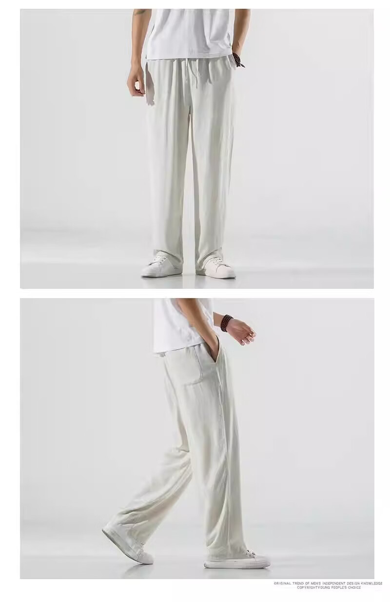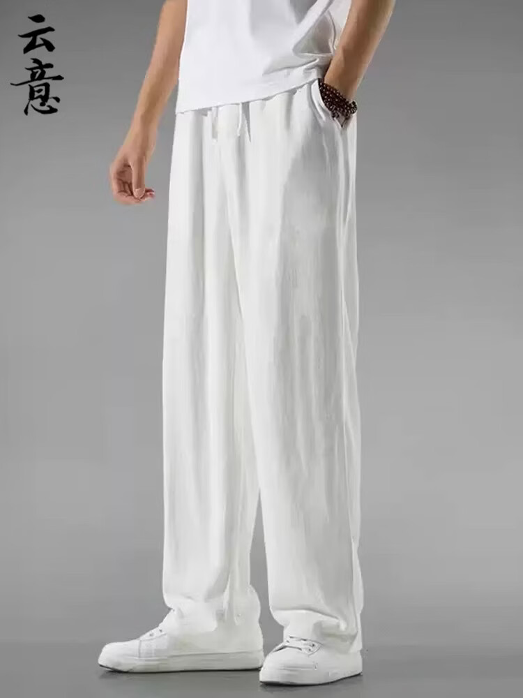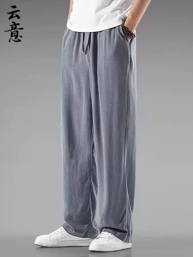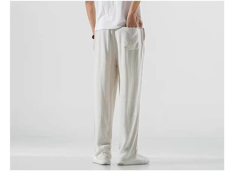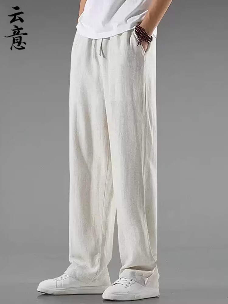 Woodpecker linen casual pants men's summer thin breathable cotton and linen straight wide-leg pants loose and versatile trousers apricot XL