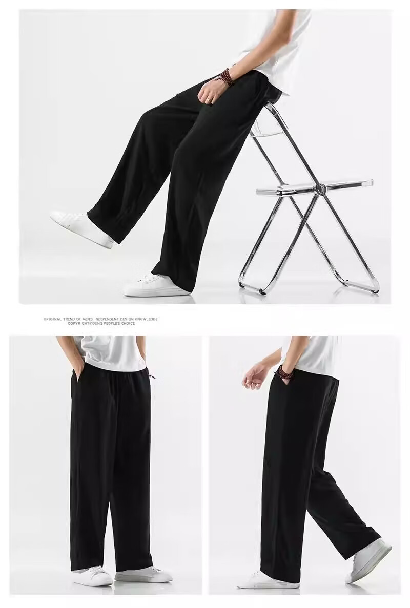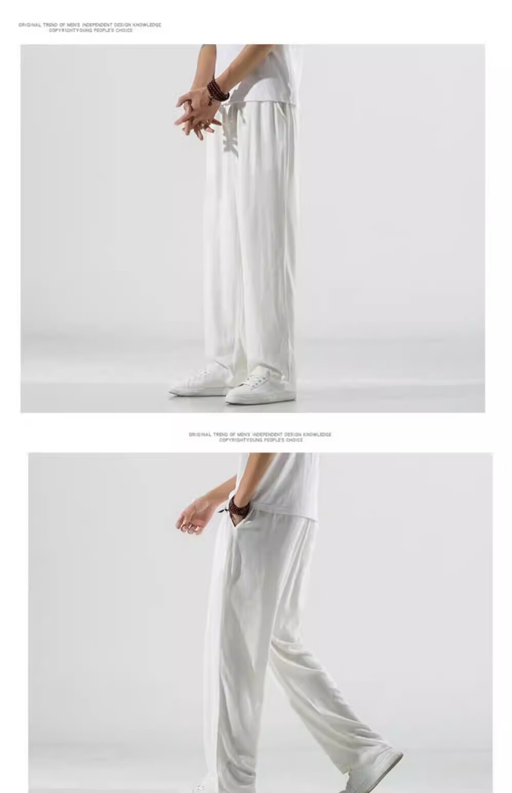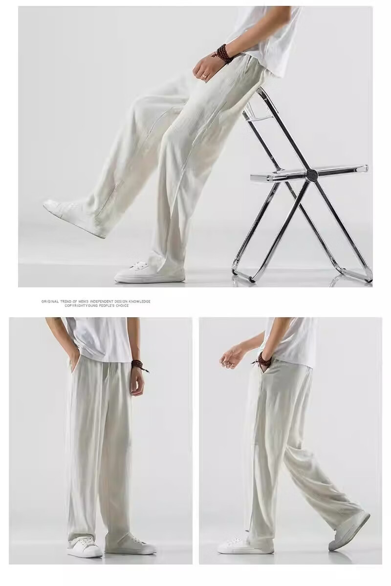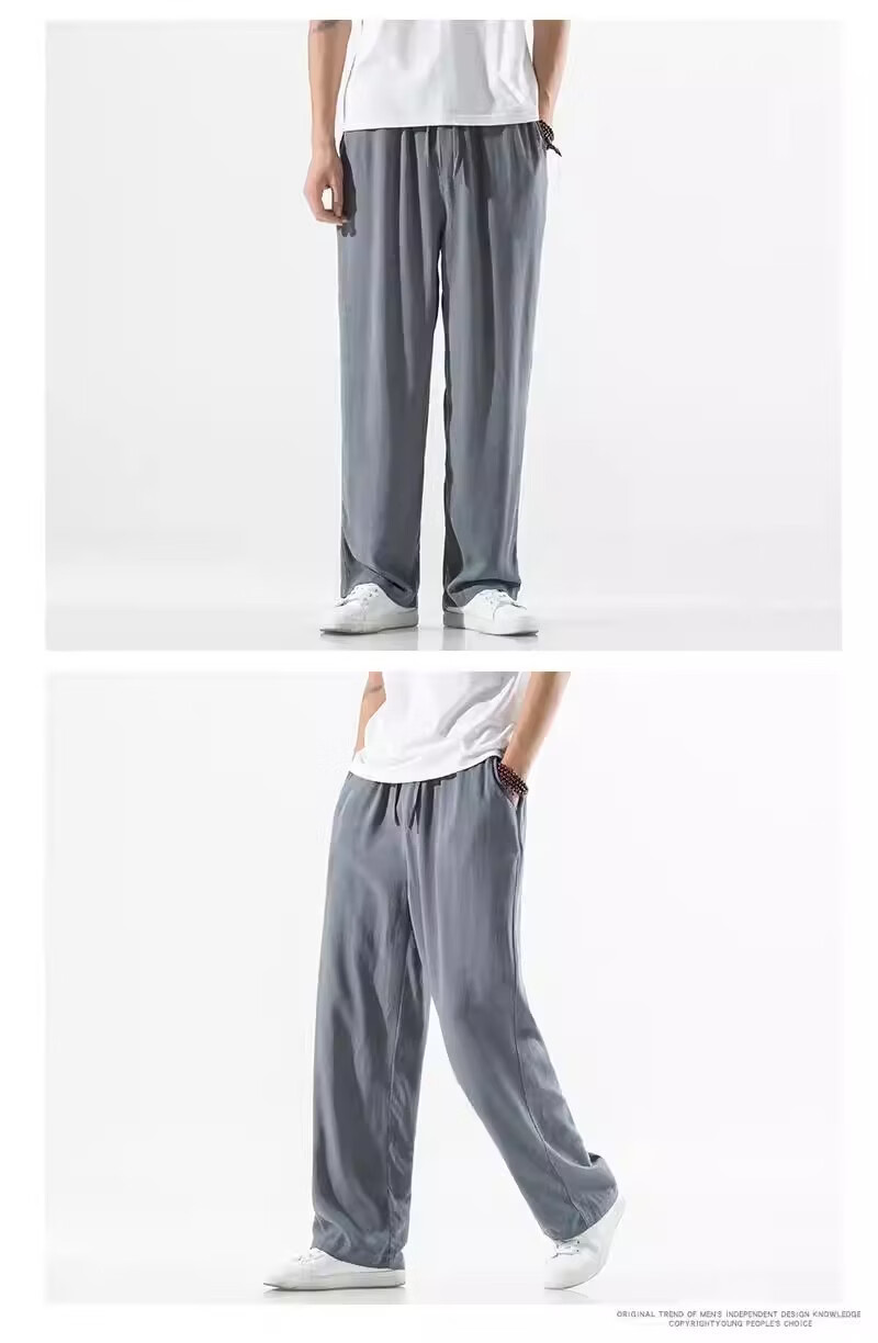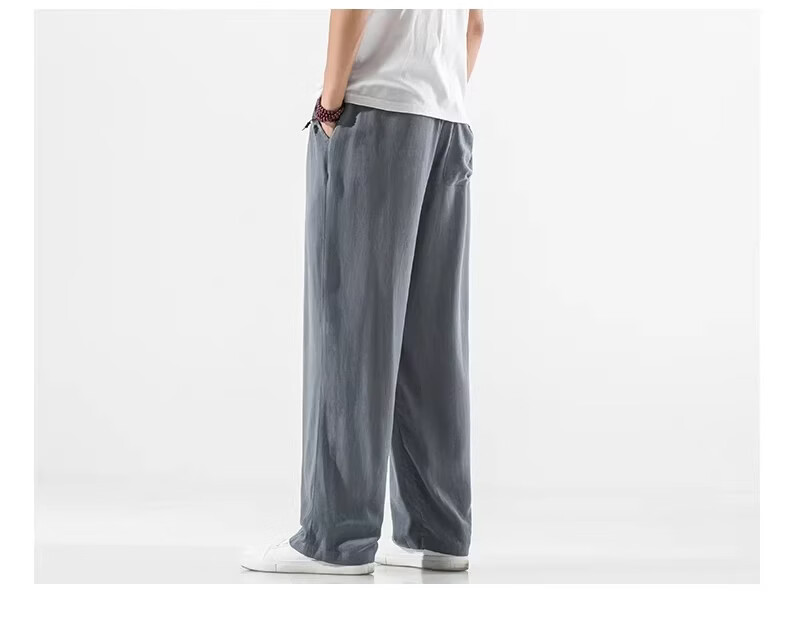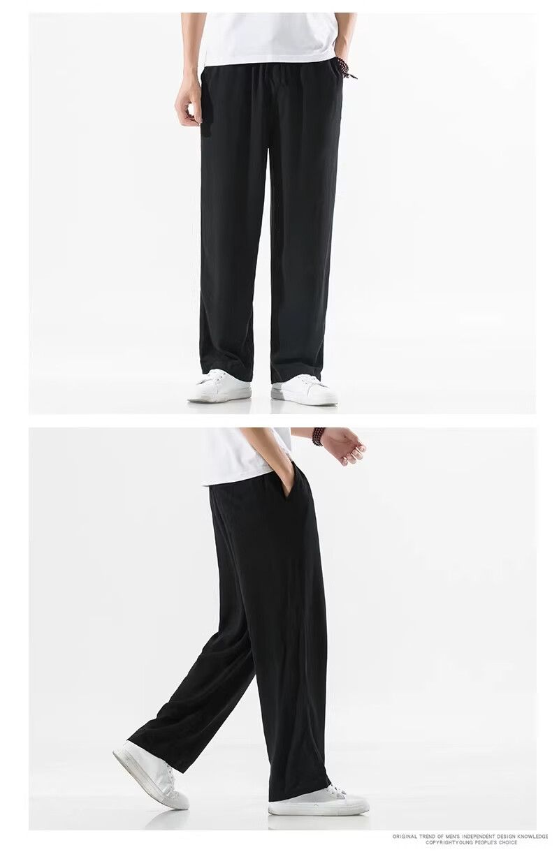 Woodpecker linen casual pants men's summer thin breathable cotton and linen straight wide-leg pants loose and versatile trousers apricot XL
