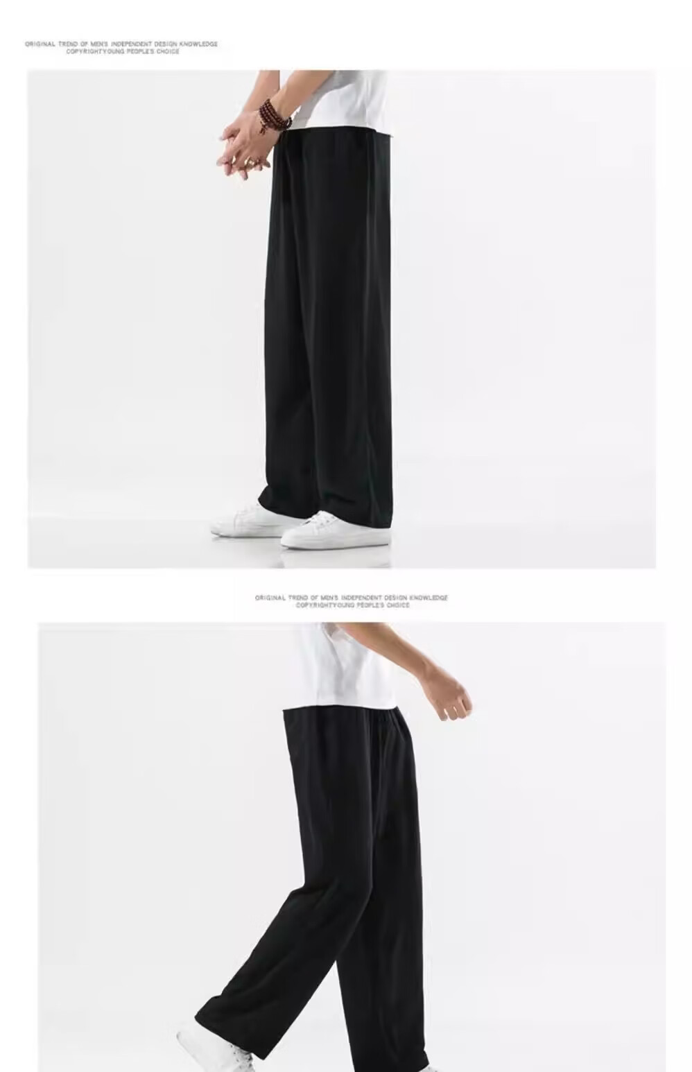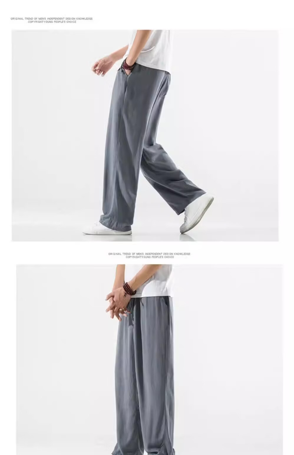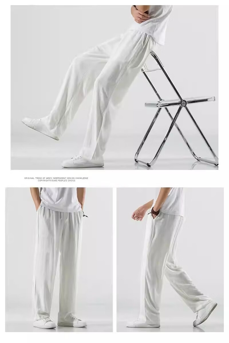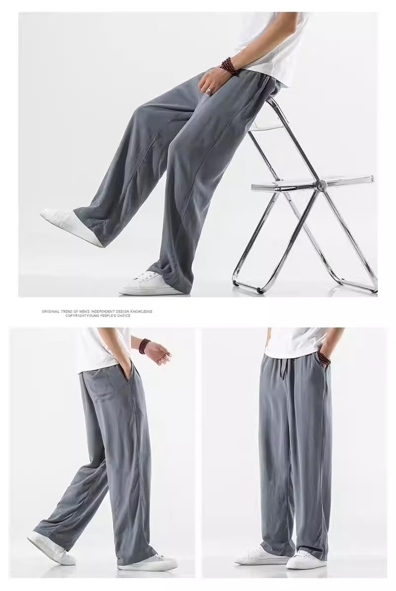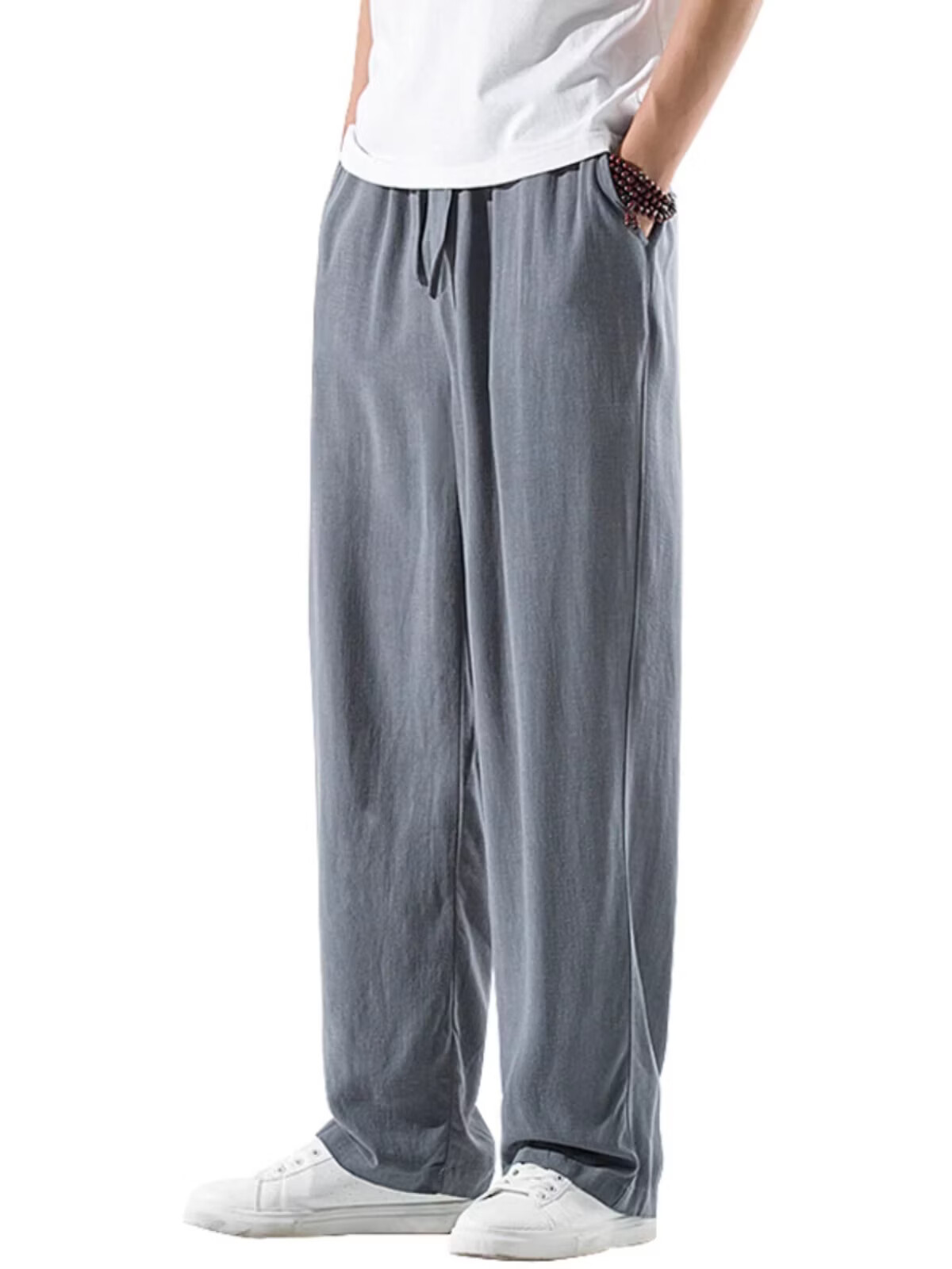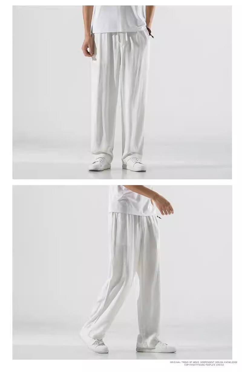 Woodpecker linen casual pants men's summer thin breathable cotton and linen straight wide-leg pants loose and versatile trousers apricot XL