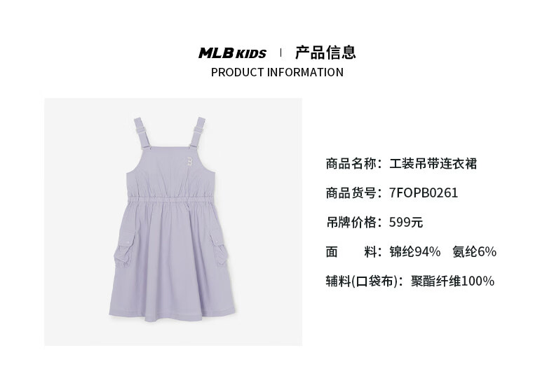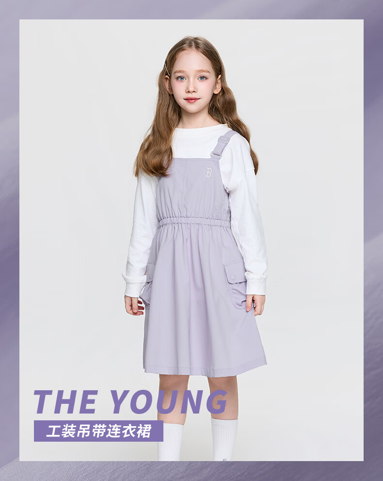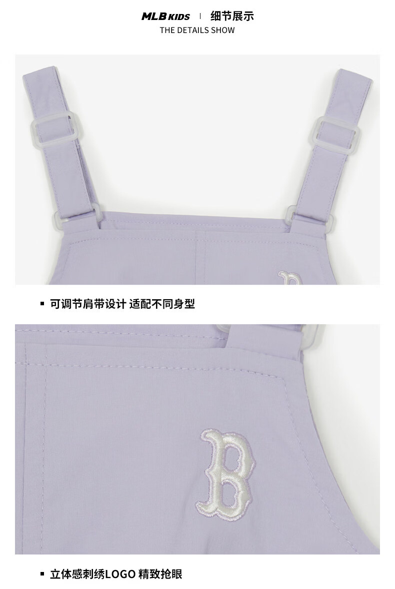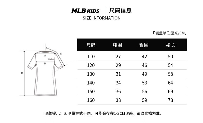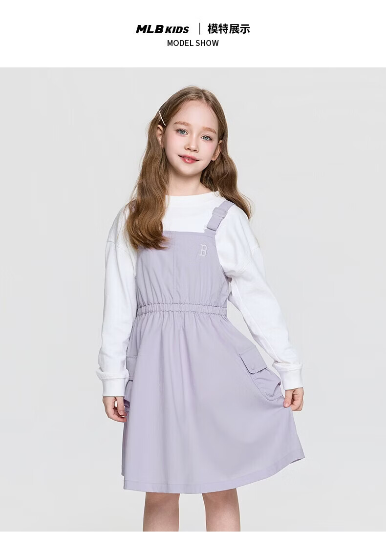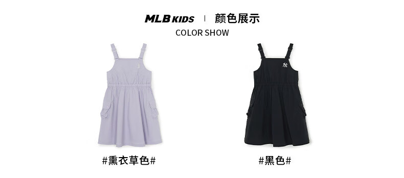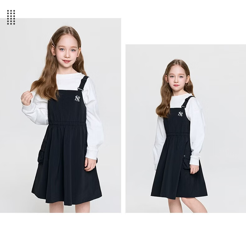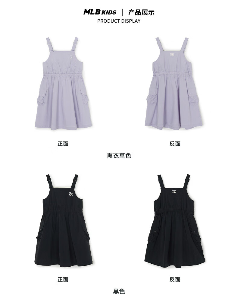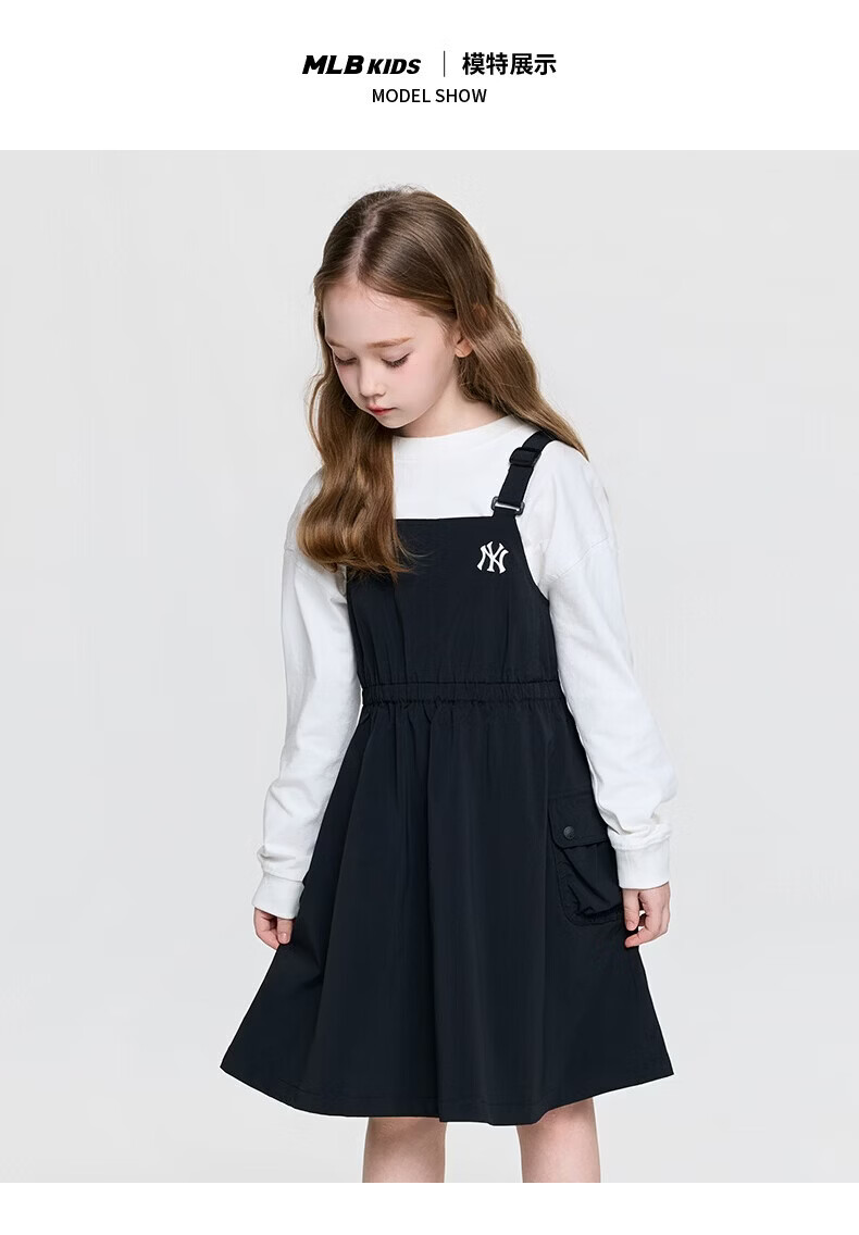 MLB Children's Official Girls Comfortable Embroidered LOGO Sweet and Cool Adjustable Work Suspender Dress Black 150 cm