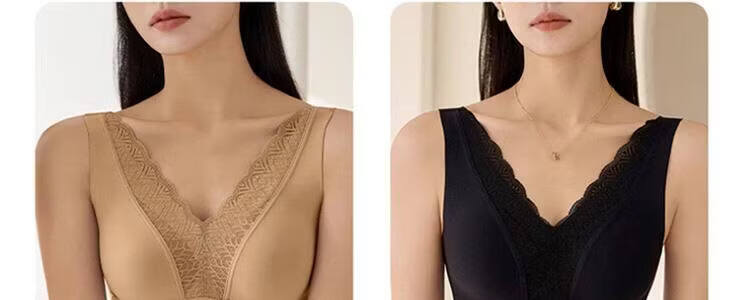 Eresg轻奢品牌内衣女无钢圈一体式文胸罩无痕美背心运动小胸聚拢文胸 卡其色+黑色 XL 【3680C~3885AB】