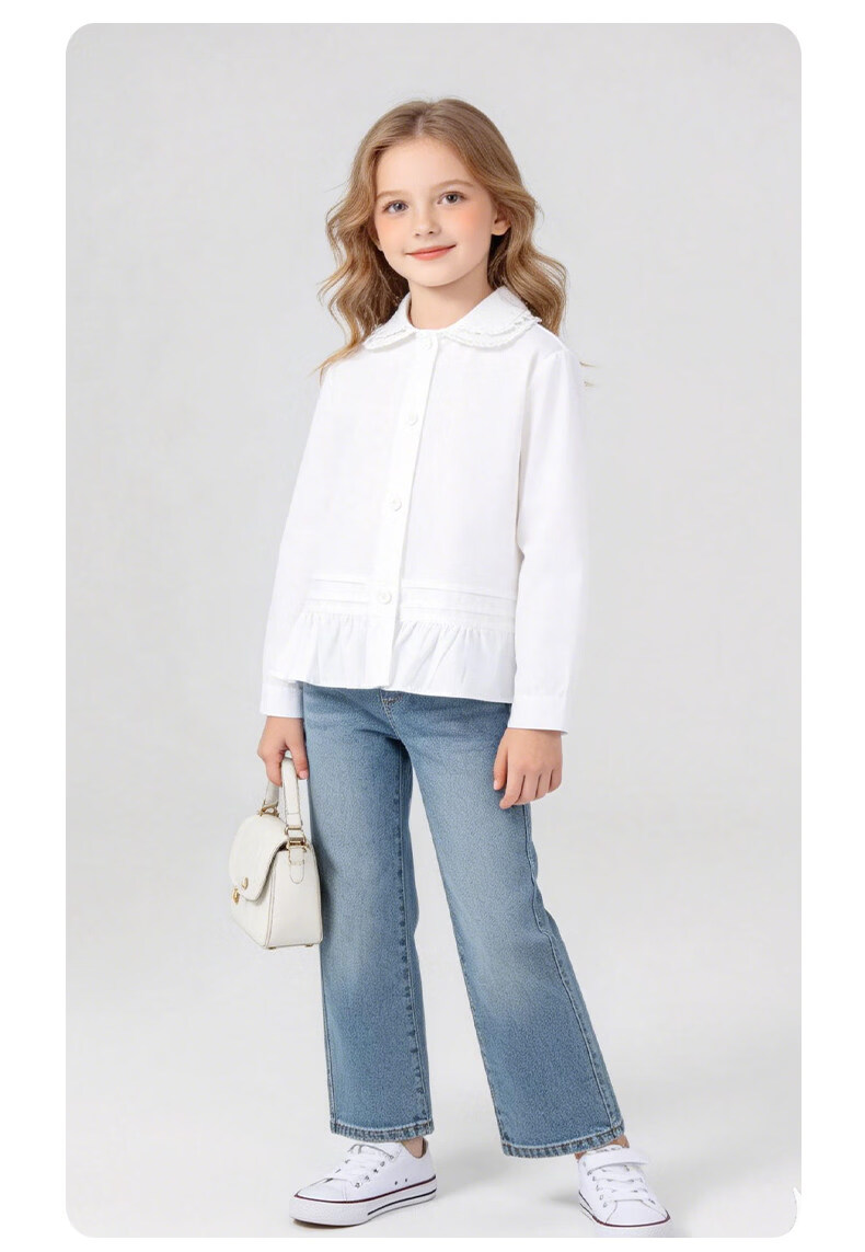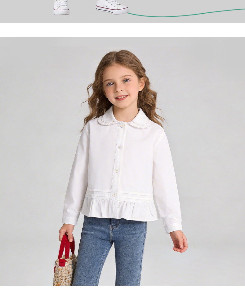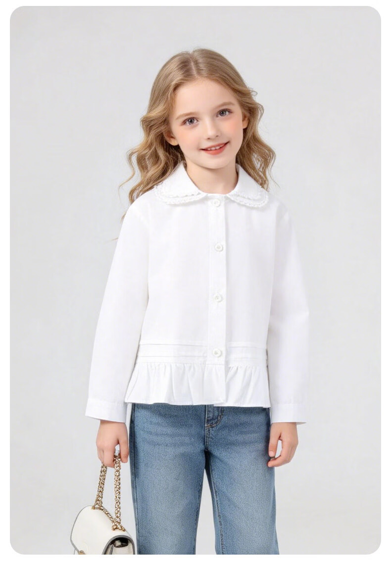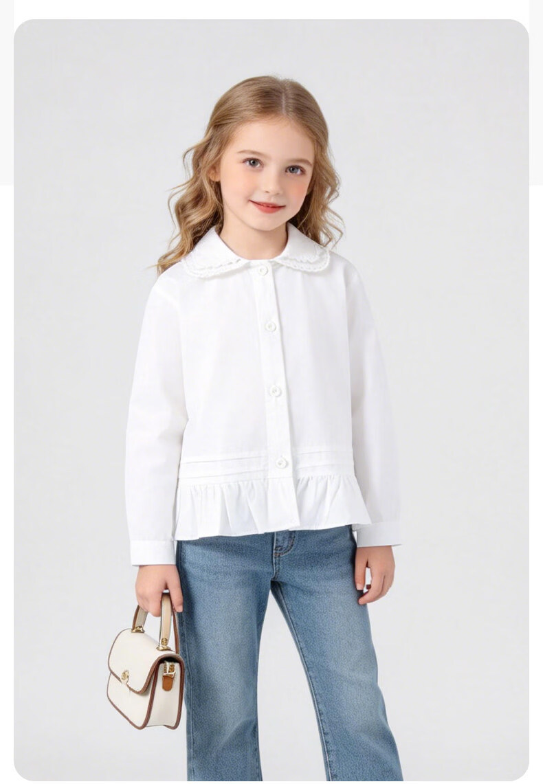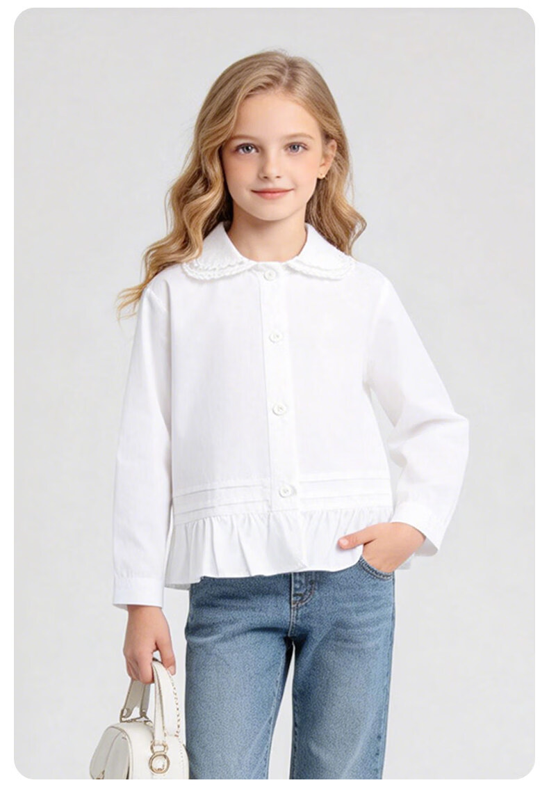 La Chapelle Kinderbekleidung Mädchenhemden 2026 Frühling und Herbst neue modische modische weiße Kinderhemden Mädchen Frühlings-Baumwolloberteile weiß 90 empfohlene Körpergröße 80-90 cm