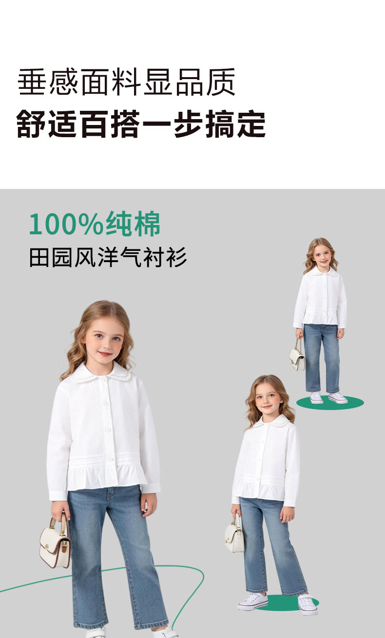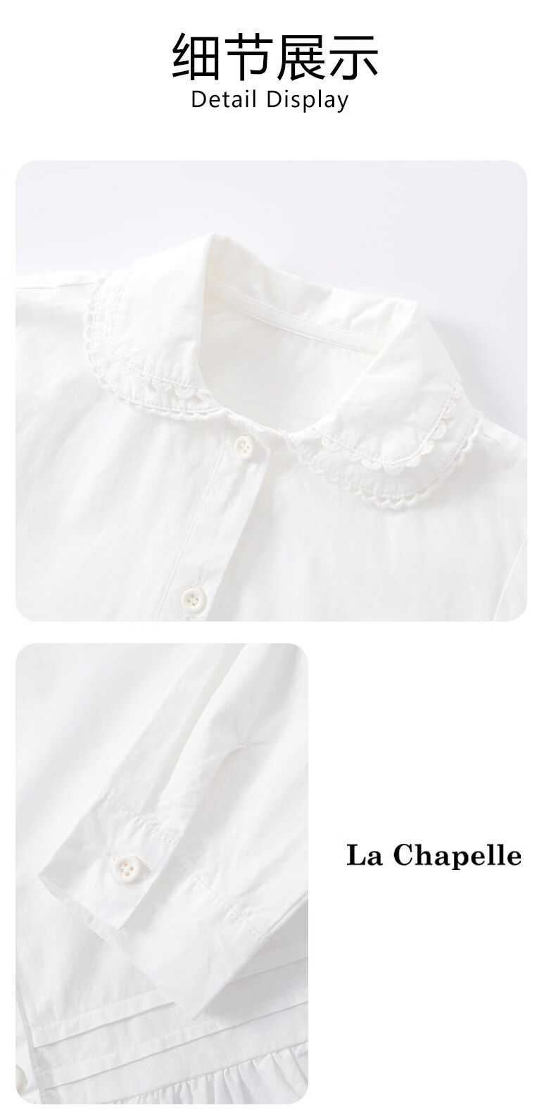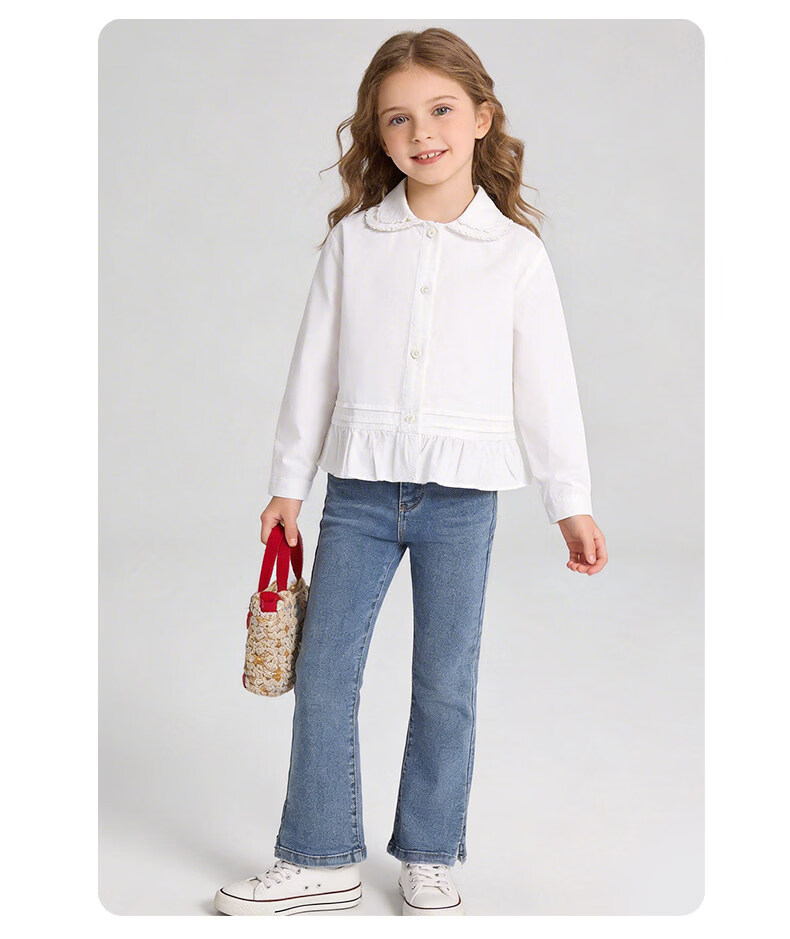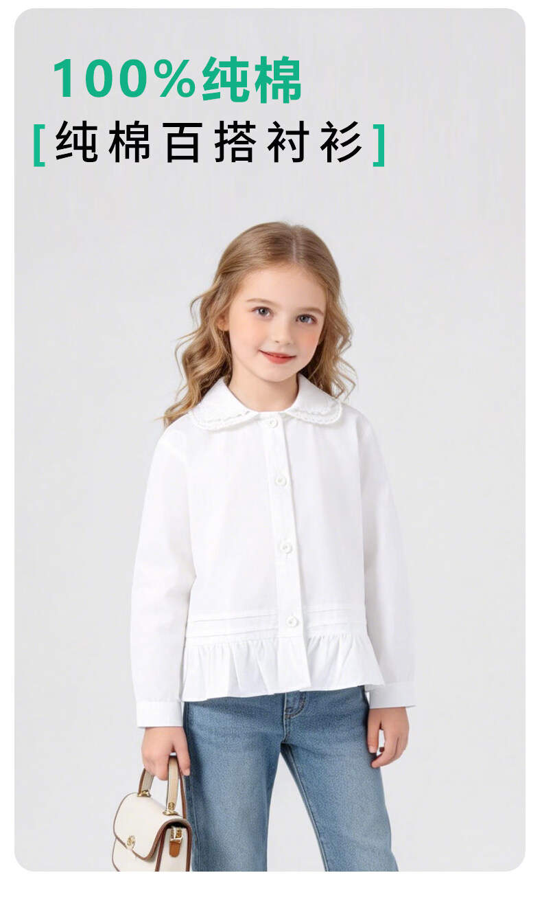 La Chapelle Kinderbekleidung Mädchenhemden 2026 Frühling und Herbst neue modische modische weiße Kinderhemden Mädchen Frühlings-Baumwolloberteile weiß 90 empfohlene Körpergröße 80-90 cm