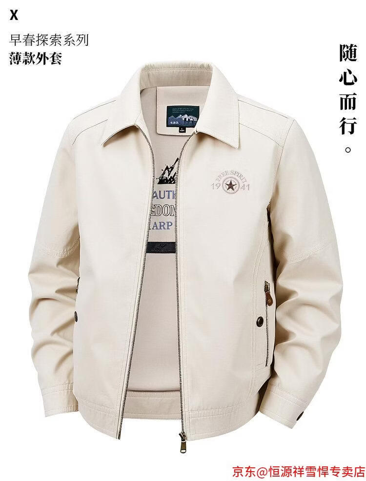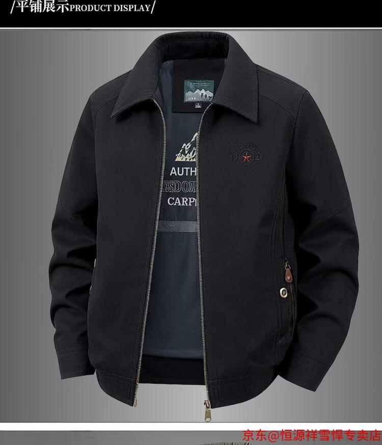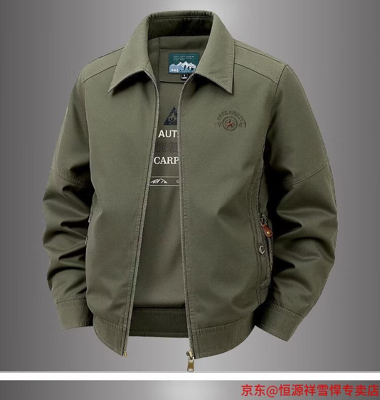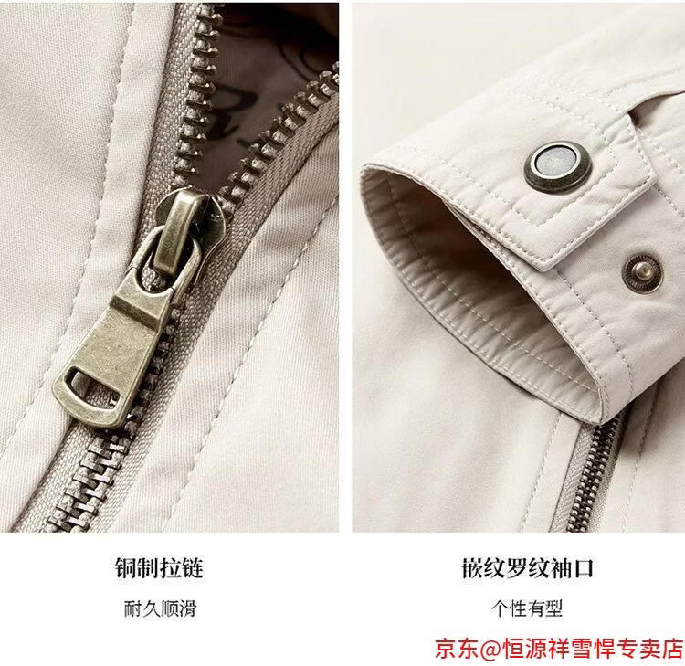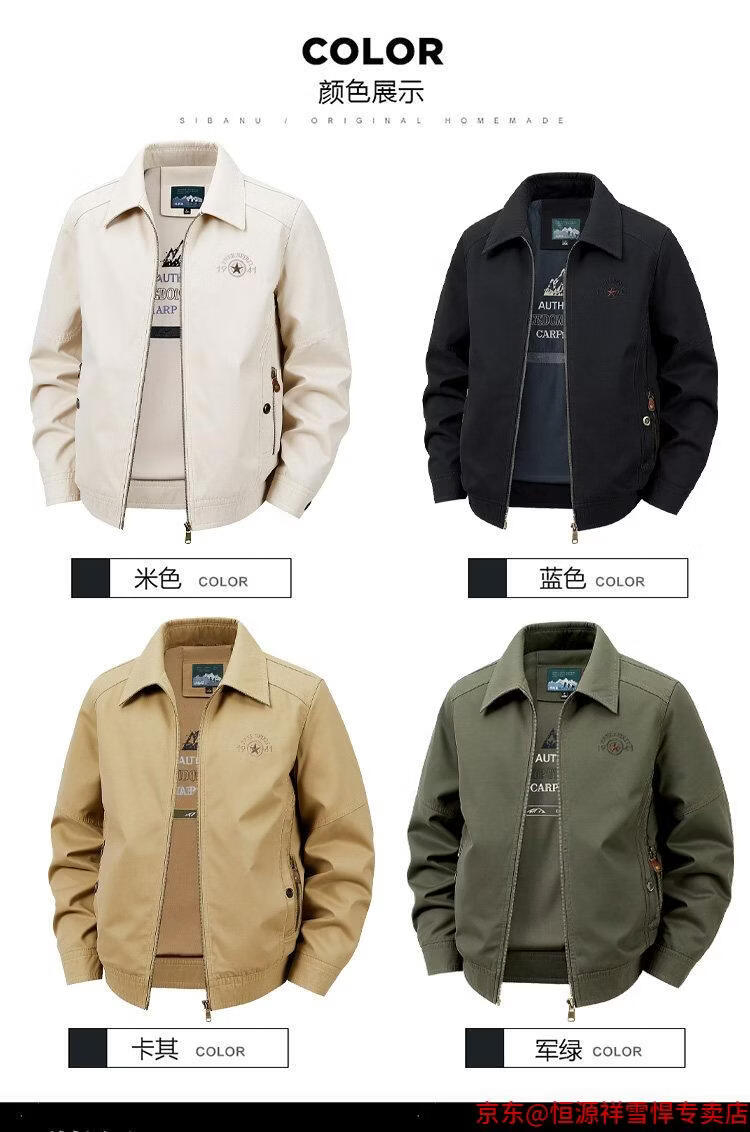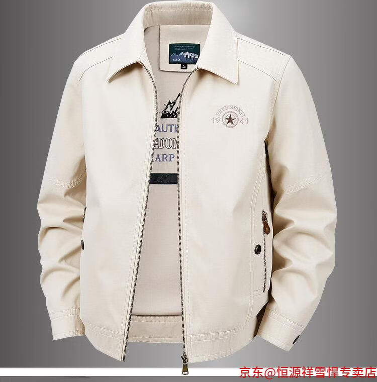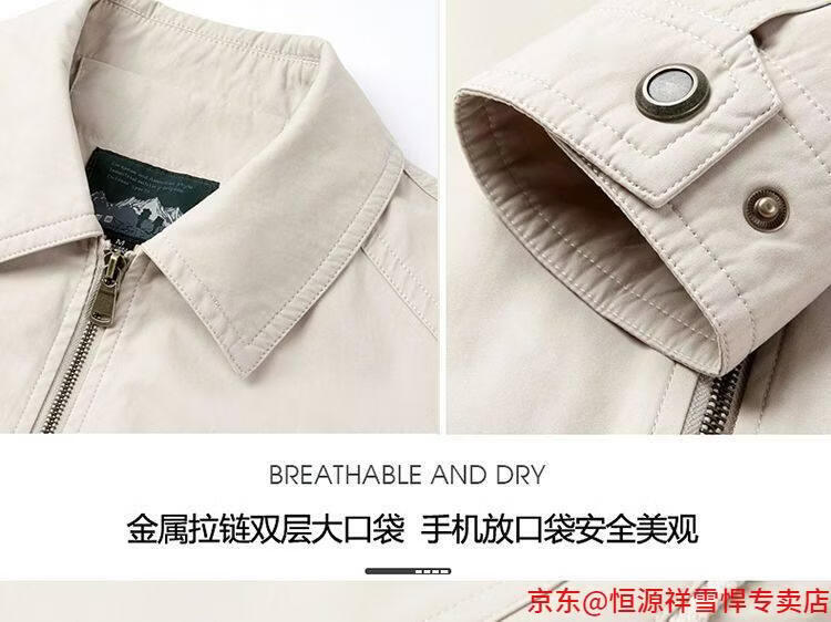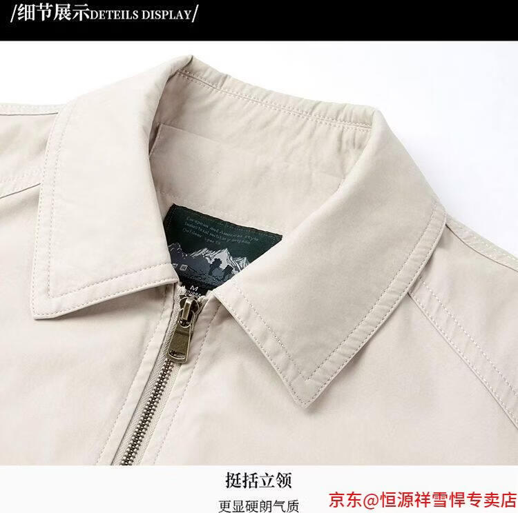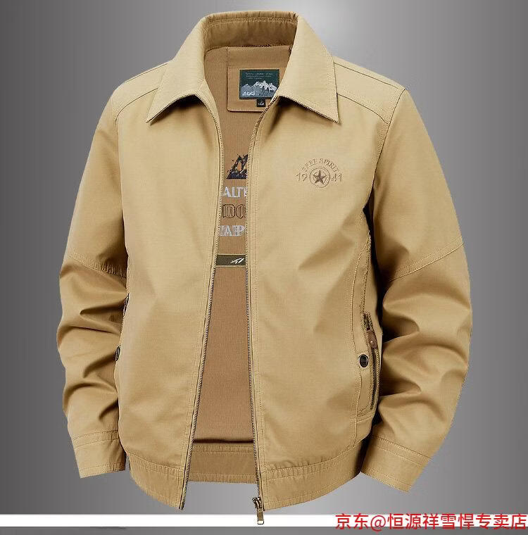 Hengyuanxiang 2026 Spring and Autumn New Casual Cotton Lapel Jacket Men's Jacket Middle-aged Loose Business Men's Dad's Clothing Khaki M Recommended 105-120 Jin Jin equals about 0.5 kg