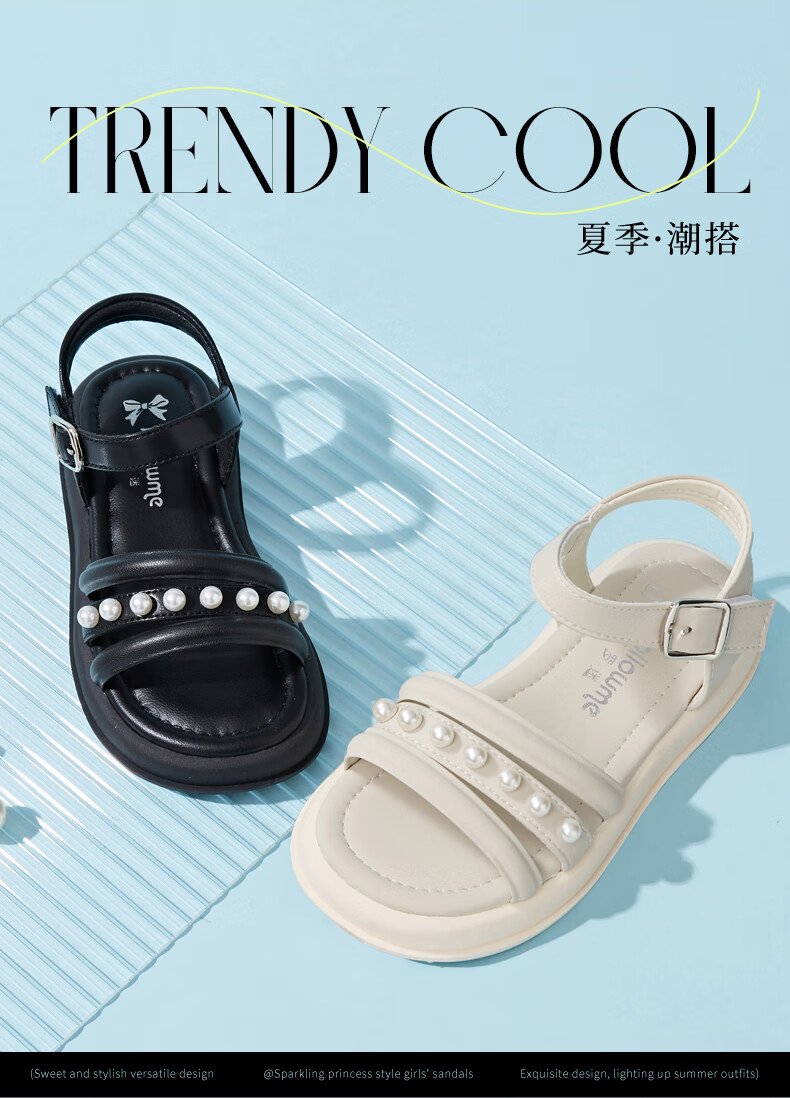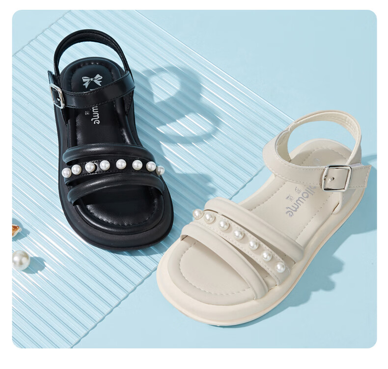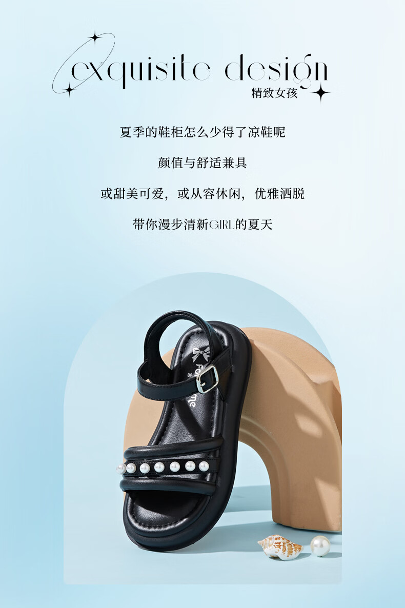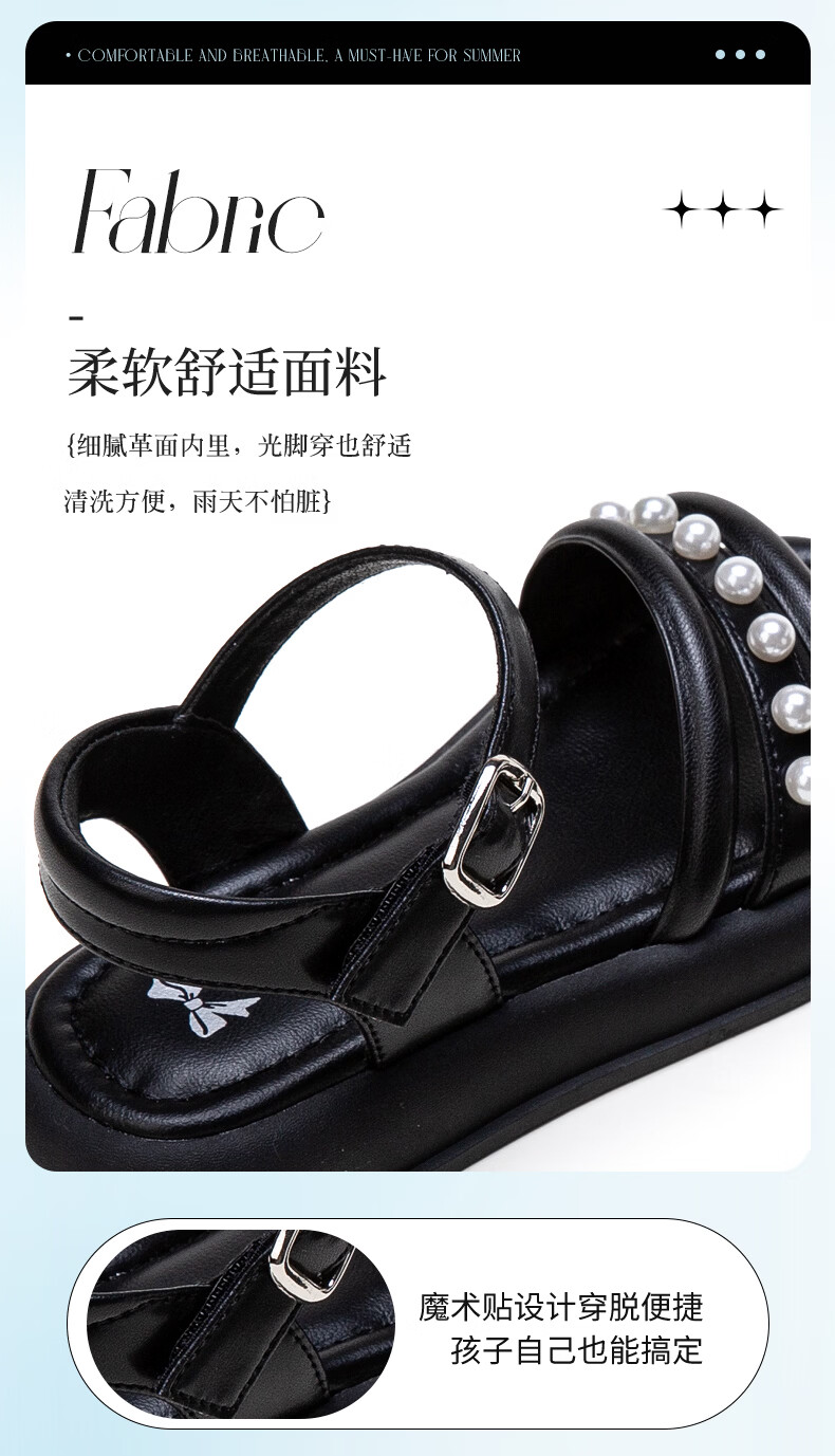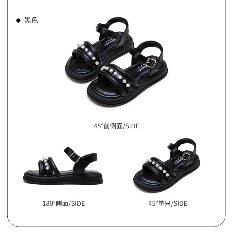 Fuluo Mi Sweet Pearl Princess Sandals Girls Summer New Style Comfortable Soft Soled Casual Campus Versatile Sandals Black 26