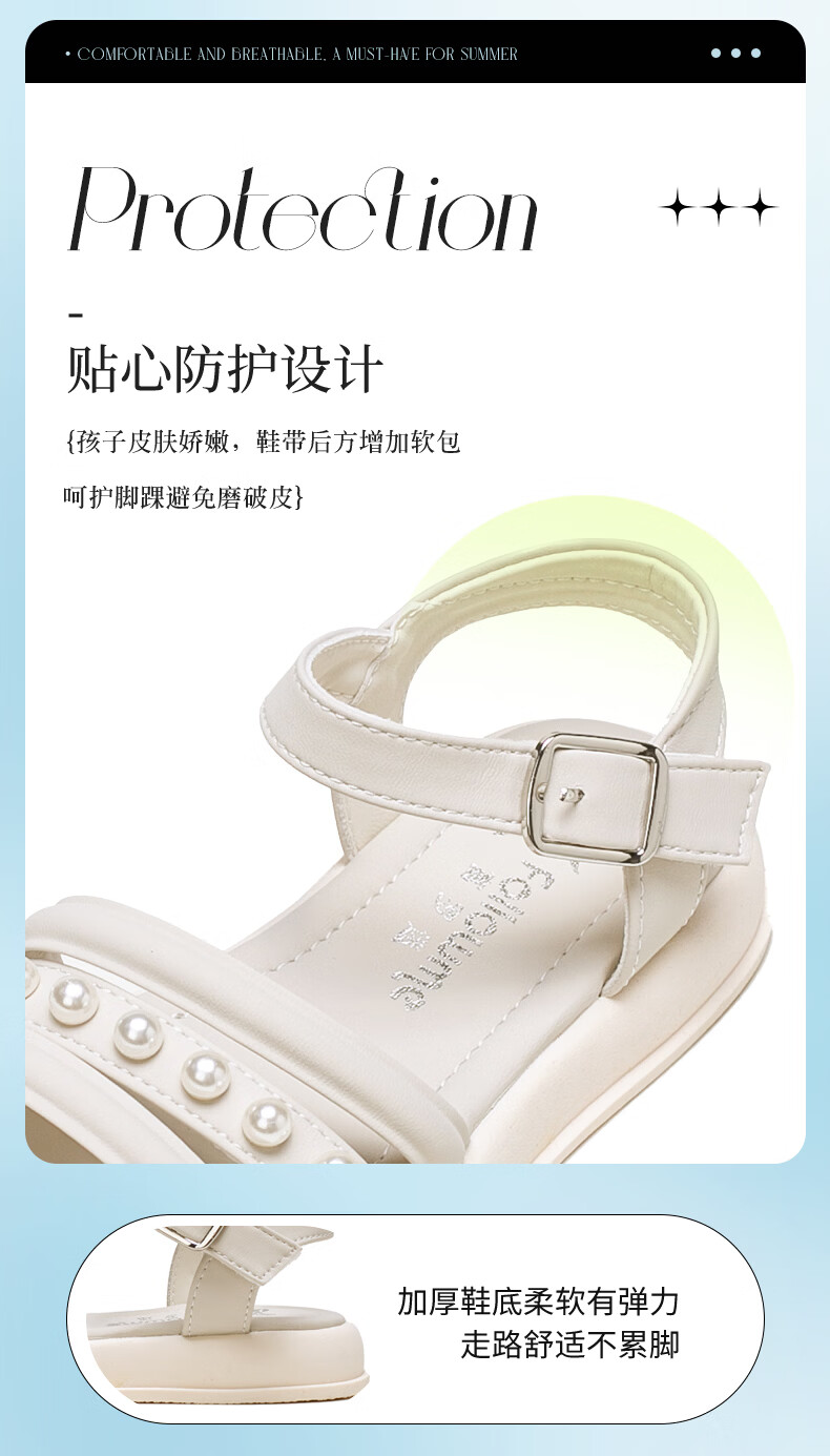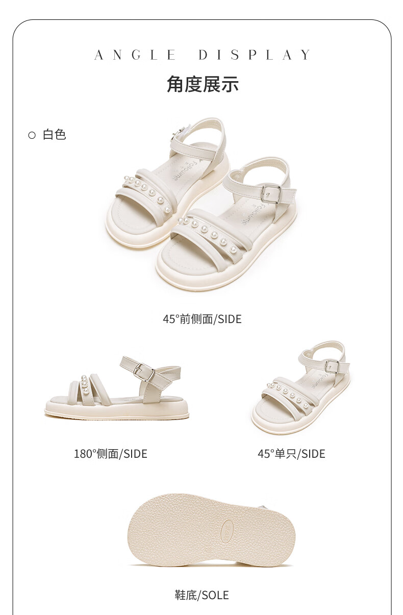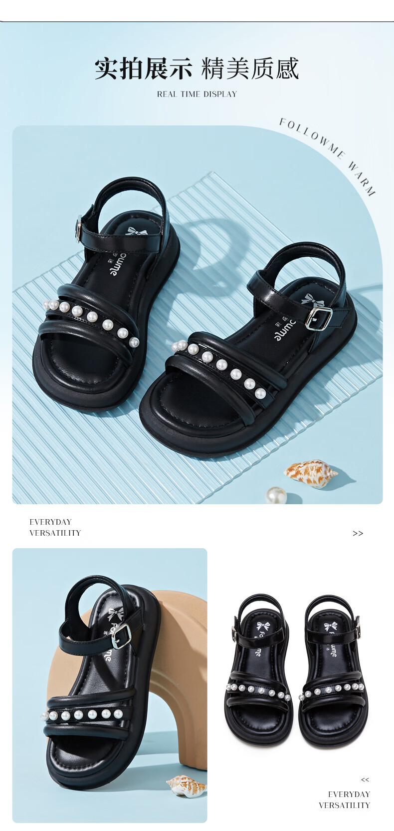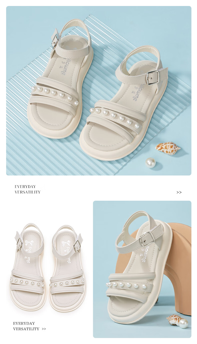 Fuluo Mi Sweet Pearl Princess Sandals Girls Summer New Style Comfortable Soft Soled Casual Campus Versatile Sandals Black 26